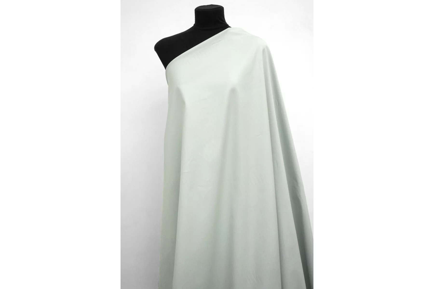Отличный плащевый водоотталкивающий хлопок диагонального плетения серо-мятного оттенка. Приятный, мягкий, гладкий. Отталкивает воду, но впитывает в поверхность материала. Обладает легким лоском. Хорошо держит форму. Сминается, но частично восстанавливается. Плотненький. Не просвечивает. Упруго и неплохо тянется за счет эластана. Шьем плащи, тренчи, жакеты и другие варианты.
