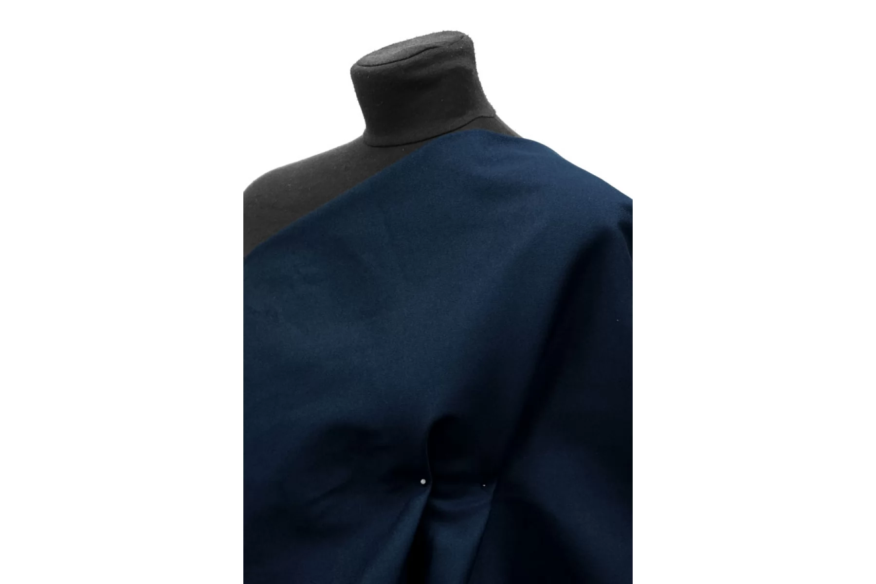 Отличного качества костюмный хлопок приглушённом синем цвете с легким бирюзовым подтоном. По пластике напоминает джинсу. Тактильно материал слегка суховатый. Не просвечивает, немного растягивается. Мнется средне, хорошо держит форму. Шьем формодержащие костюмы, куртки и юбки в джинсовом стиле, можно использовать для пошива парки (учитывайте, что материал воду не отталкивает).