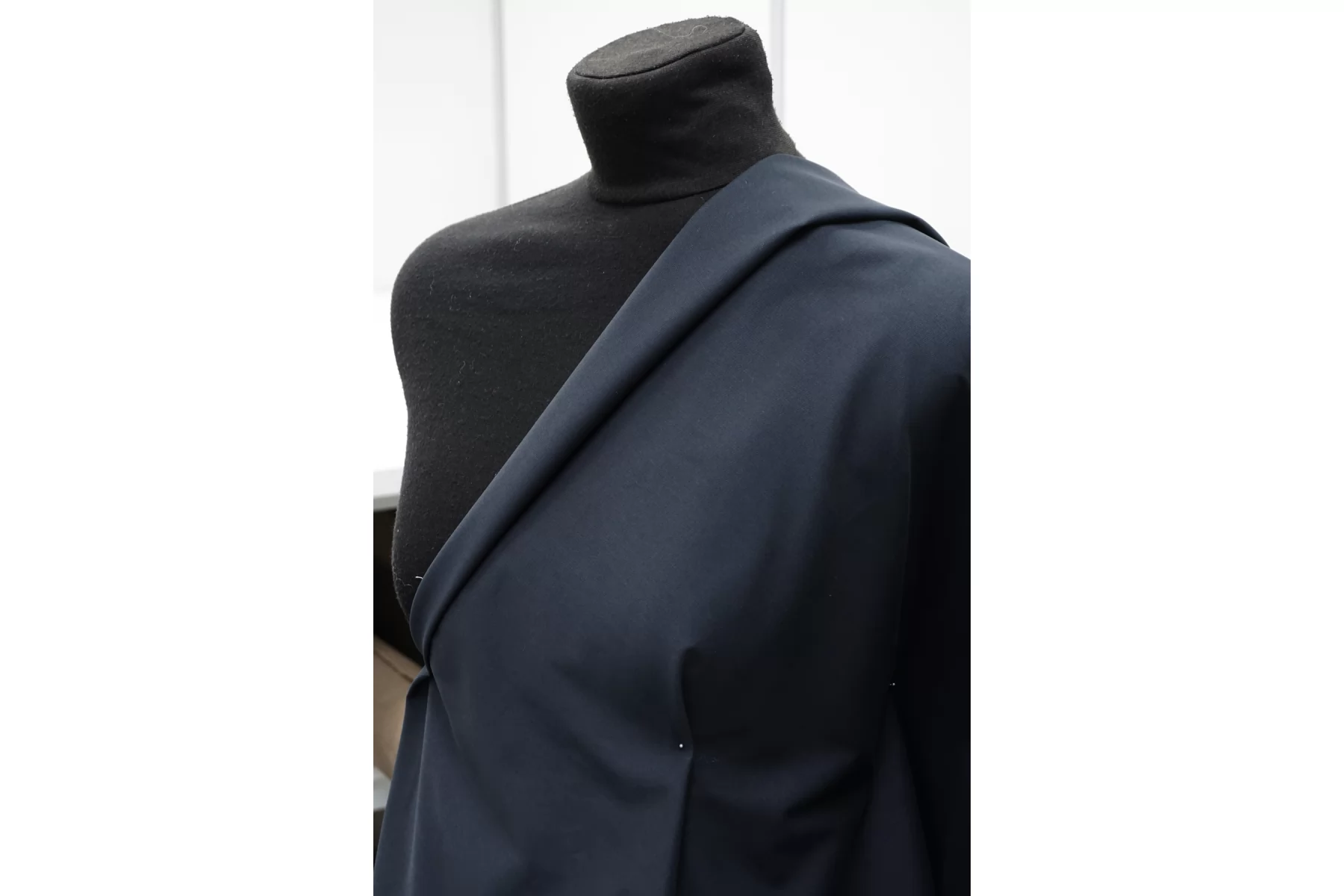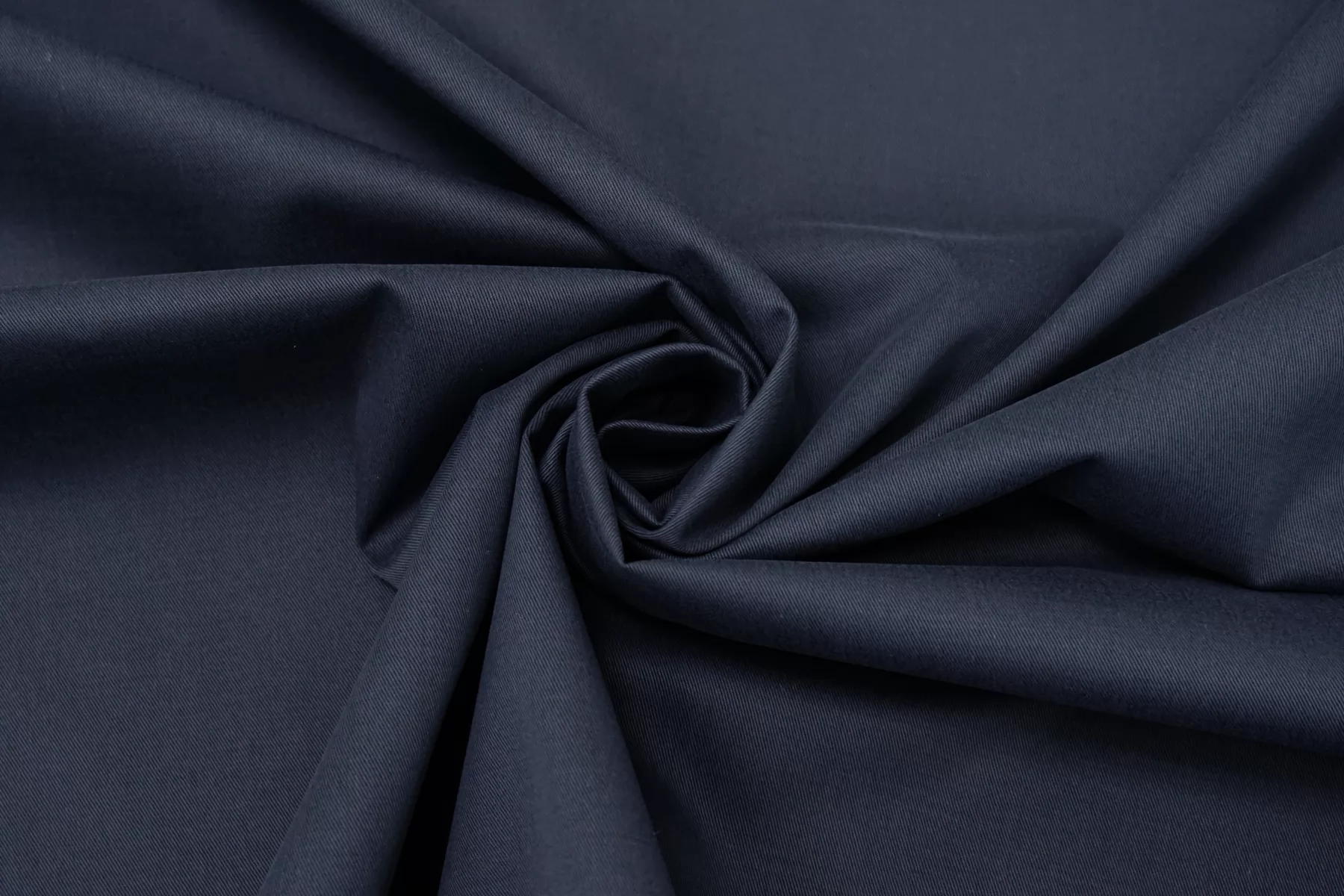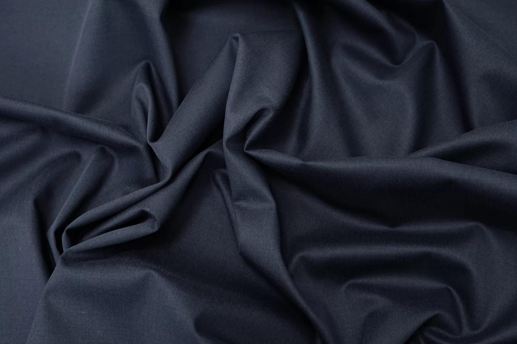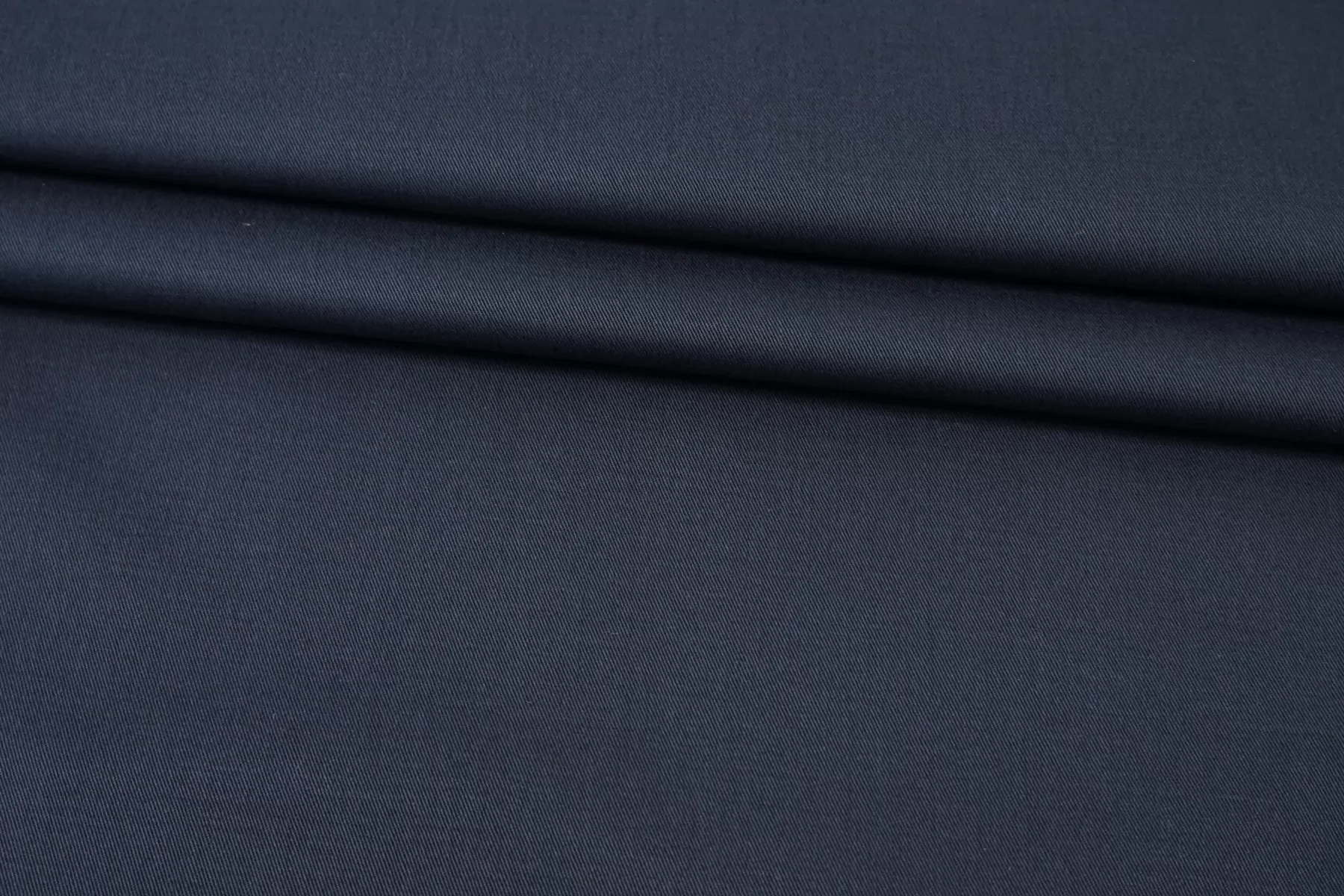 Хлопок костюмной плотности, диагонального плетения, в тёмно-синем цвете. Тактильно приятный, велюристый, не грубый. Пластичный но форму держит. Мнется умеренно, тянется, не просвечивает. Отлично подойдет для пошива летних костюмов, брюк, юбок, платьев-сафари, можно на пыльник или тренч, но учитывайте что ткань воду не отталкивает.