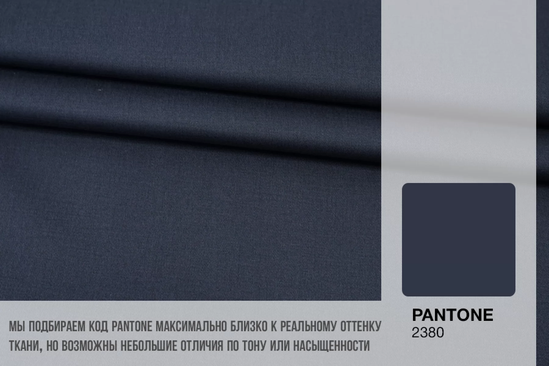 Мы делаем все возможное, чтобы точно описать цвет каждой ткани из нашего каталога. Мы осматриваем и фотографируем каждую ткань в естественном свете, стараемся находить только правильные цветовые условия и описания. Но несмотря на наши старания, мы не можем гарантировать точное соответствие цветов из-за одного простого факта: различия в цветовых настройках мониторов или мобильных дисплеев слишком велики для однозначного определения какого-либо цветового оттенка. Именно поэтому мы предлагаем вам заказать образец перед покупкой любой ткани. Также если Вы занимаетесь индивидуальным пошивом (ателье), то данная услуга поможет Вам улучшить работу с клиентами.
