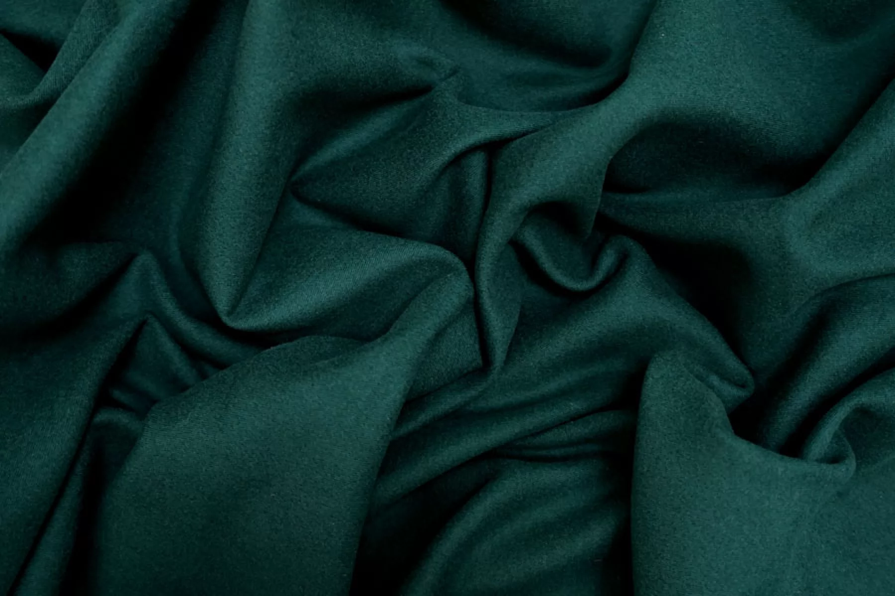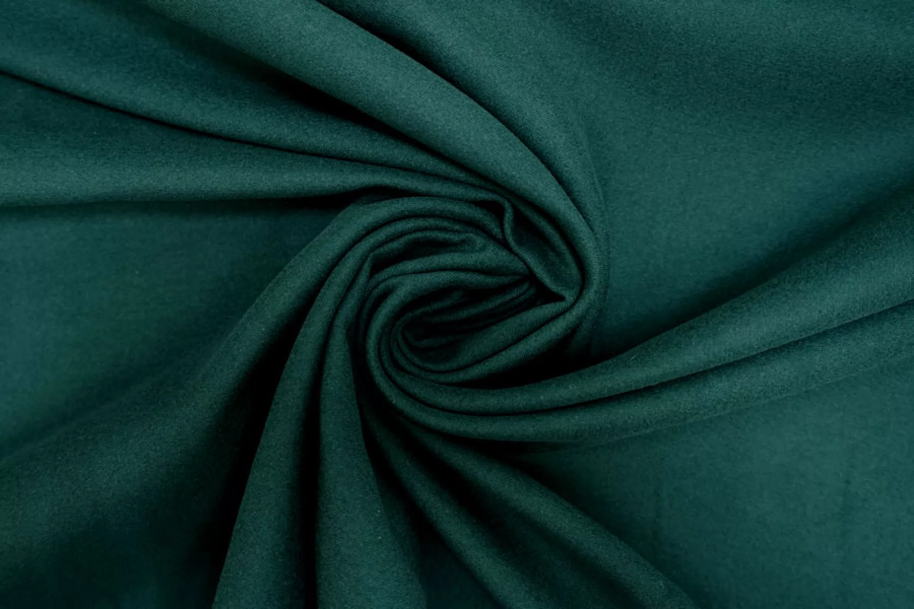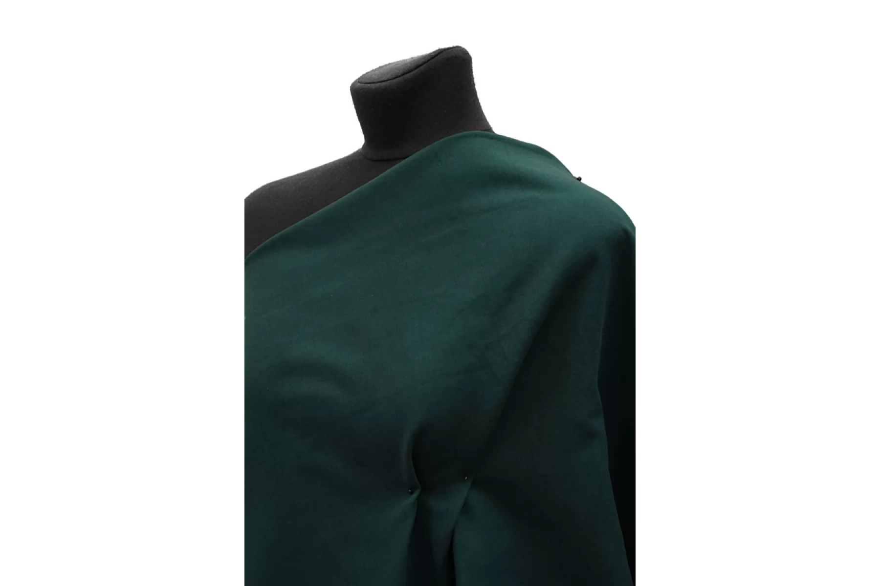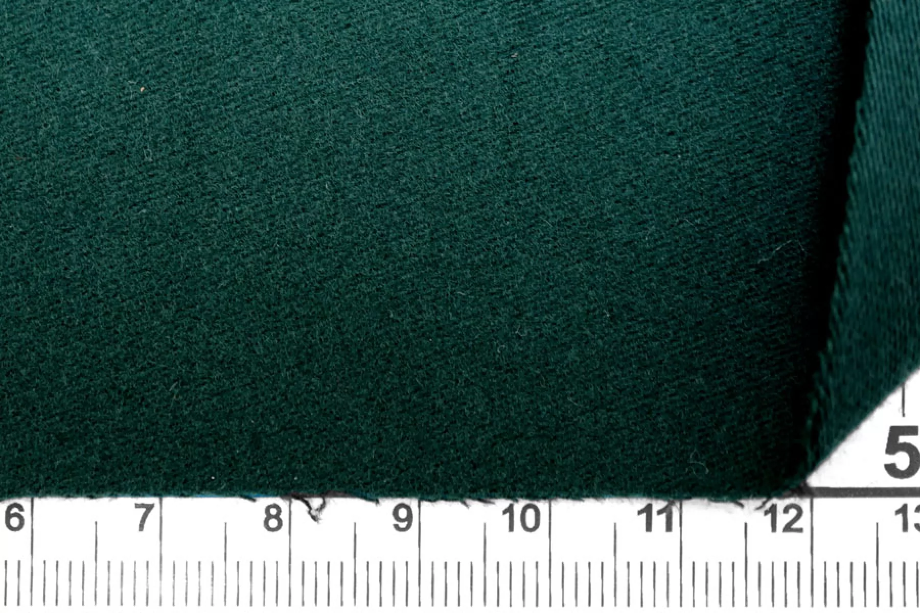 ВНИМАНИЕ!! Горизонтальные белёсые полосы каждые 0,5 м, см. фото. Очень мягкий хлопок диагонального плетения, костюмный по плотности, припылённо-изумрудного оттенка. Лицевая сторона бархатистая, велюристая (как у фланели), что делает материал очень приятным на ощупь. Плотненький, красив в пластике и складке. Сминается и немного восстанавливается. Не тянется и не просвечивает. Отлично подойдет для пошива костюма, платья, жакета, юбки, а также шорт и брюк.