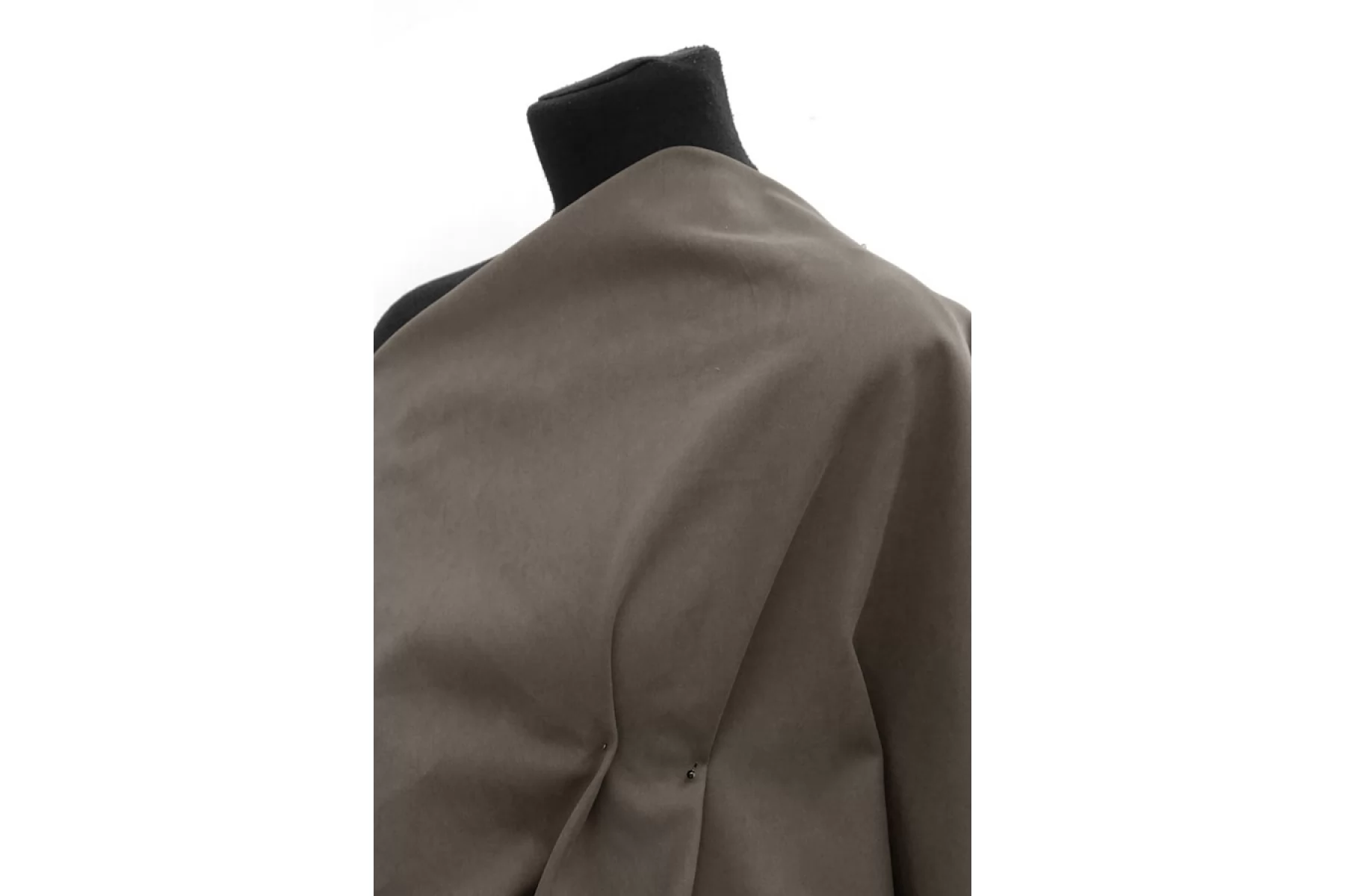 Отличного качества костюмный хлопок диагонального плетения, с бархатистой поверхностью «под велюр», в сером цвете. Тактильно материал приятный, велюровый наощупь. Не просвечивает, немного тянется плетение. Мнется средне, хорошо держит форму. Шьем формодержащие костюмы, куртки и юбки в джинсовом стиле, можно использовать для пошива парки (учитывайте, что материал сразу промокает).