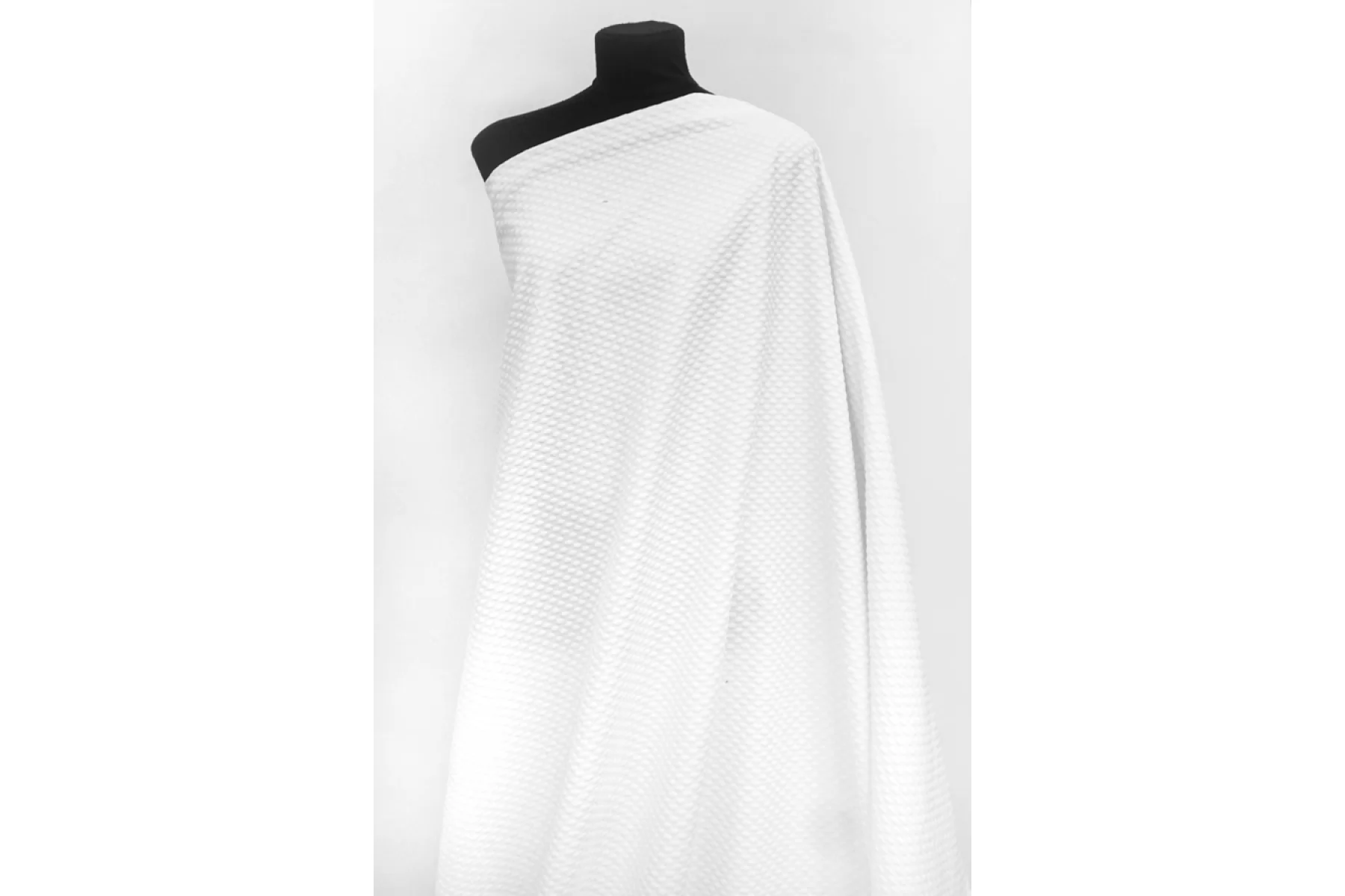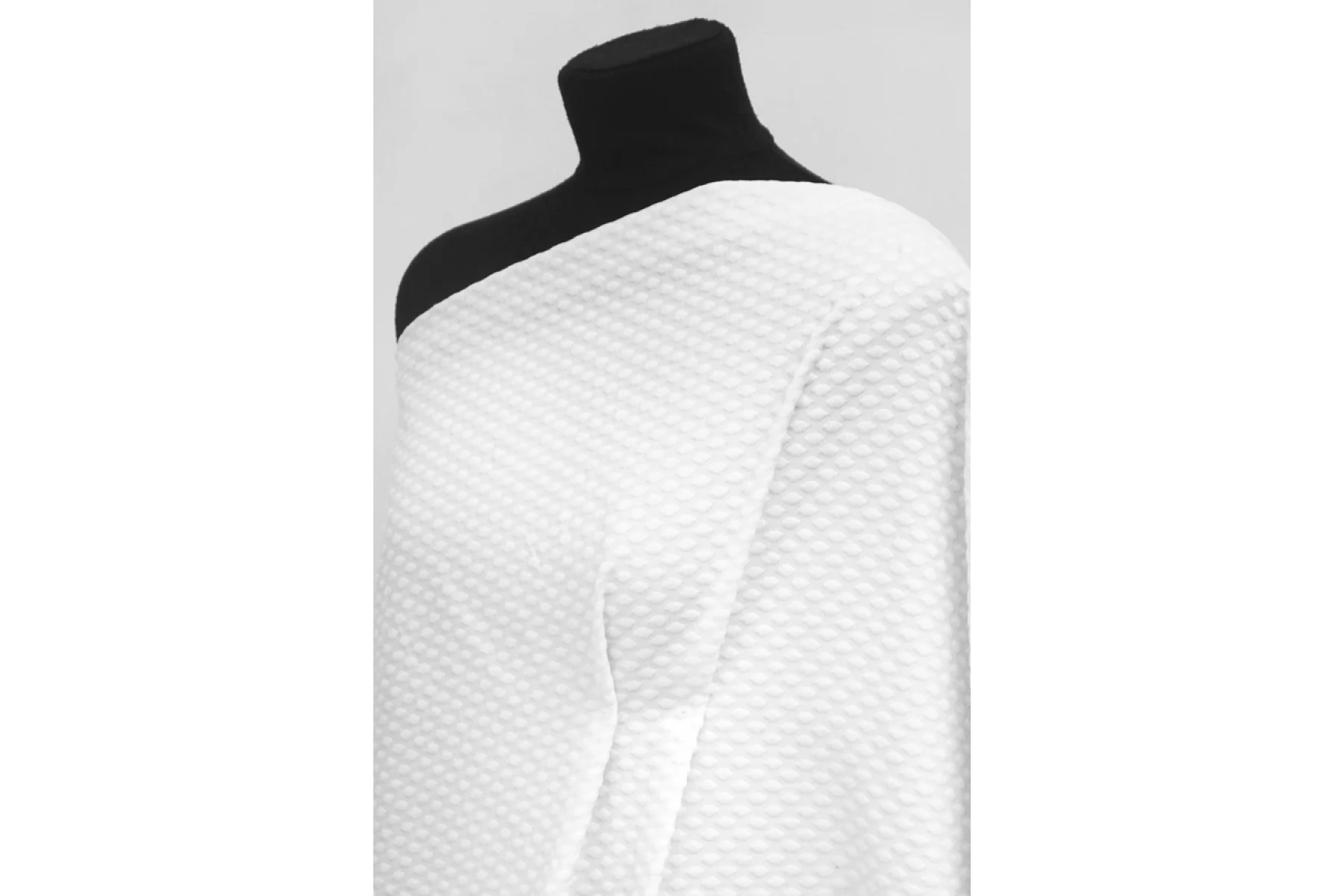 Костюмный белый хлопок с мушками. Материал довольно плотный, не тянется, очень мягкий и приятный наощупь. Мушки мягкие и объемные. Не просвечивает, держит форму. Не мнется. Прекрасный вариант на костюмы, жакеты, юбки и другое.