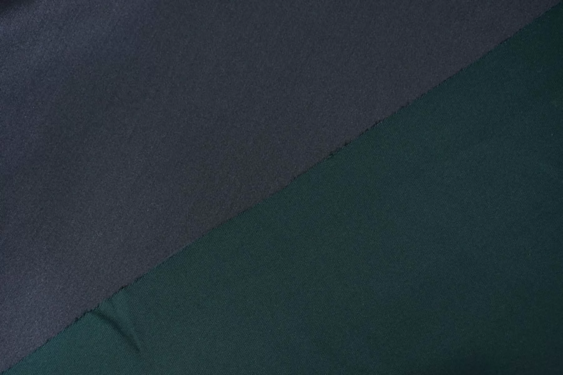 Костюмный сатиновый плотный хлопок изнаночная сторона темно-изумрудная, лицевая сторона синяя. Обладает легким матовым лоском. Изнаночная сторона мягкая. Лицевая гладкая, с красивым лоском. Материал тактильно очень приятный. Не тянется. Не просвечивает. Плотный. Хорошо драпируется, форму немного держит. Не мнется. Шьем костюмы, платья, юбки, жакеты и другие варианты.