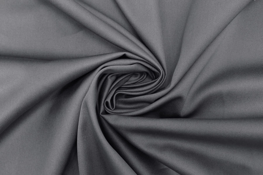 Итальянский хлопок костюмной плотности, серого цвета, плетение диагональное. Лицевая сторона с легким лоском. Тактильно гладкий, шуршащий. Не тянется, пластичный но форму держит хорошо, мнется. Не просвечивает. Отличный вариант на платья, юбки, костюмы, рубашки, брюки (учитывайте, что не тянется). Учитывайте возможную усадку. Можно сшить тренч или пыльник, но учитывайте что воду не отталкивает.