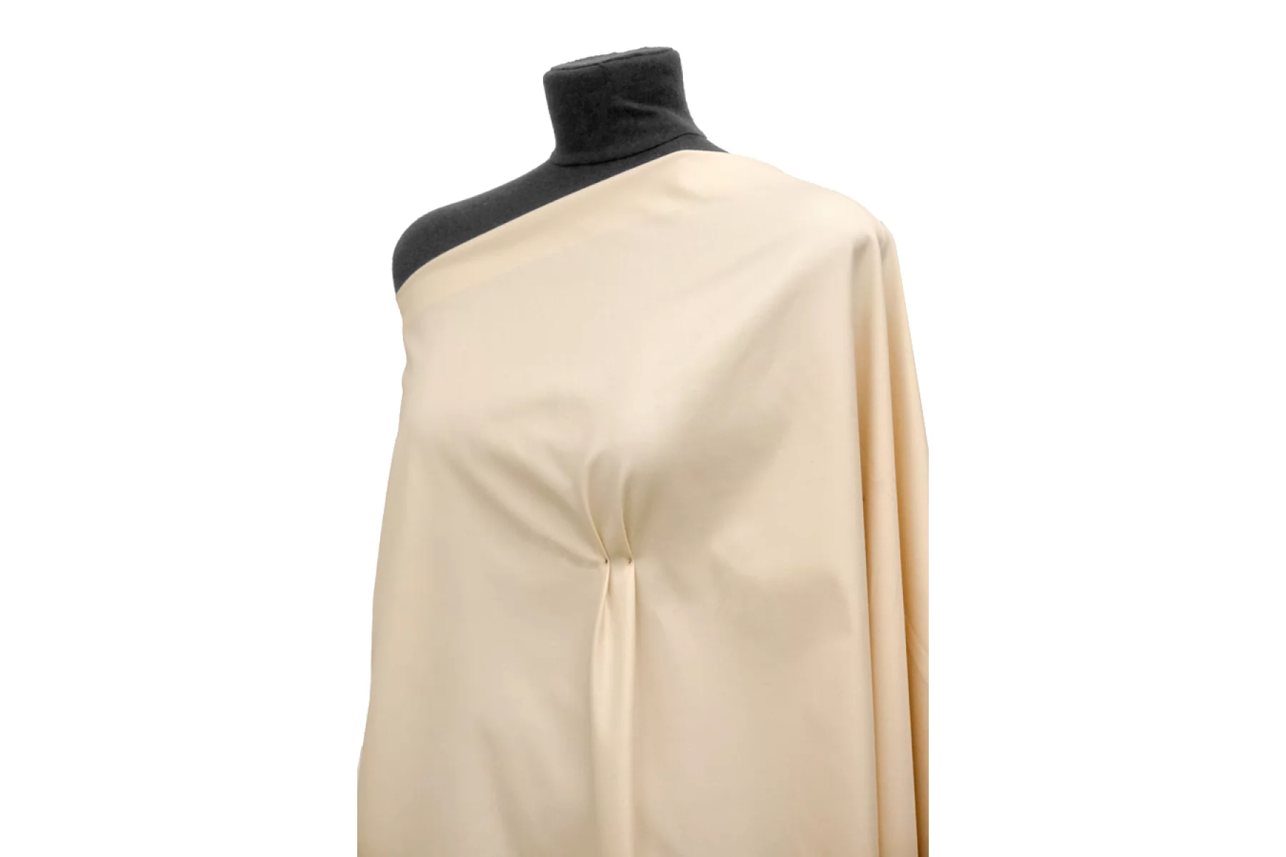 Костюмно-плательный хлопок с вискозой диагонального плетения приятного оттенка кремового айвори. Приятный, нетолстый, достаточно плотненький. Обладает приятным лоском. Хорошо и упруго тянется. Пластичный. Не просвечивает ( но совсем слегка может быть заметен силуэт темного) . Хорошо драпируется и держит форму. Сминается. Отличный вариант для пошива костюма, платья, жакета, юбки или брюк.