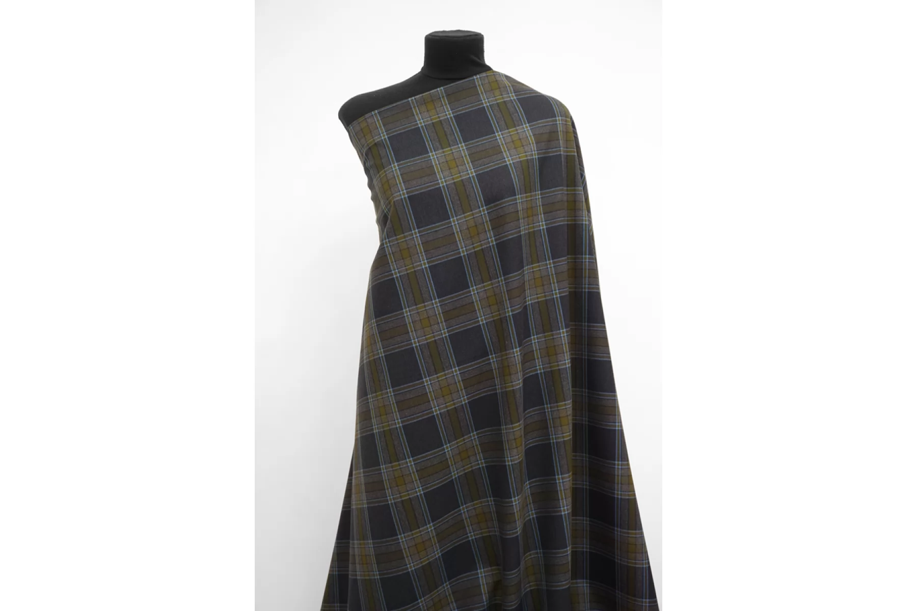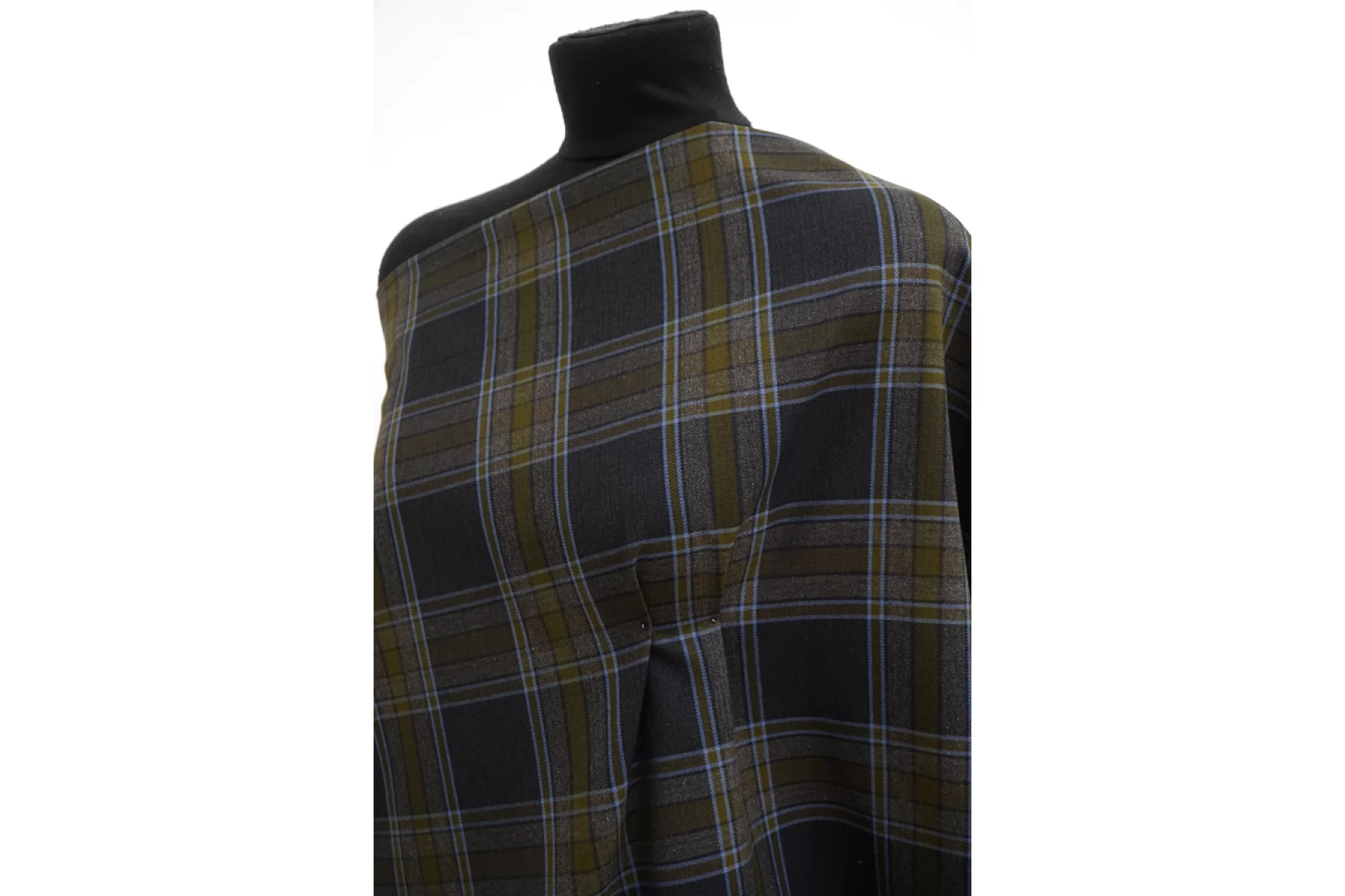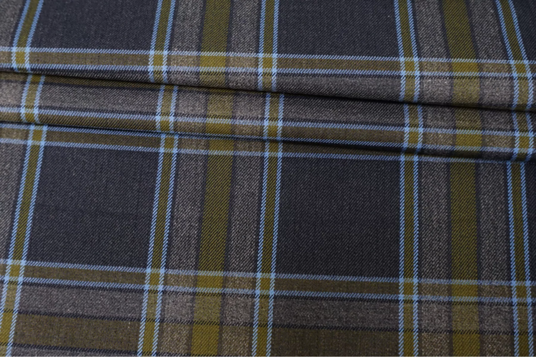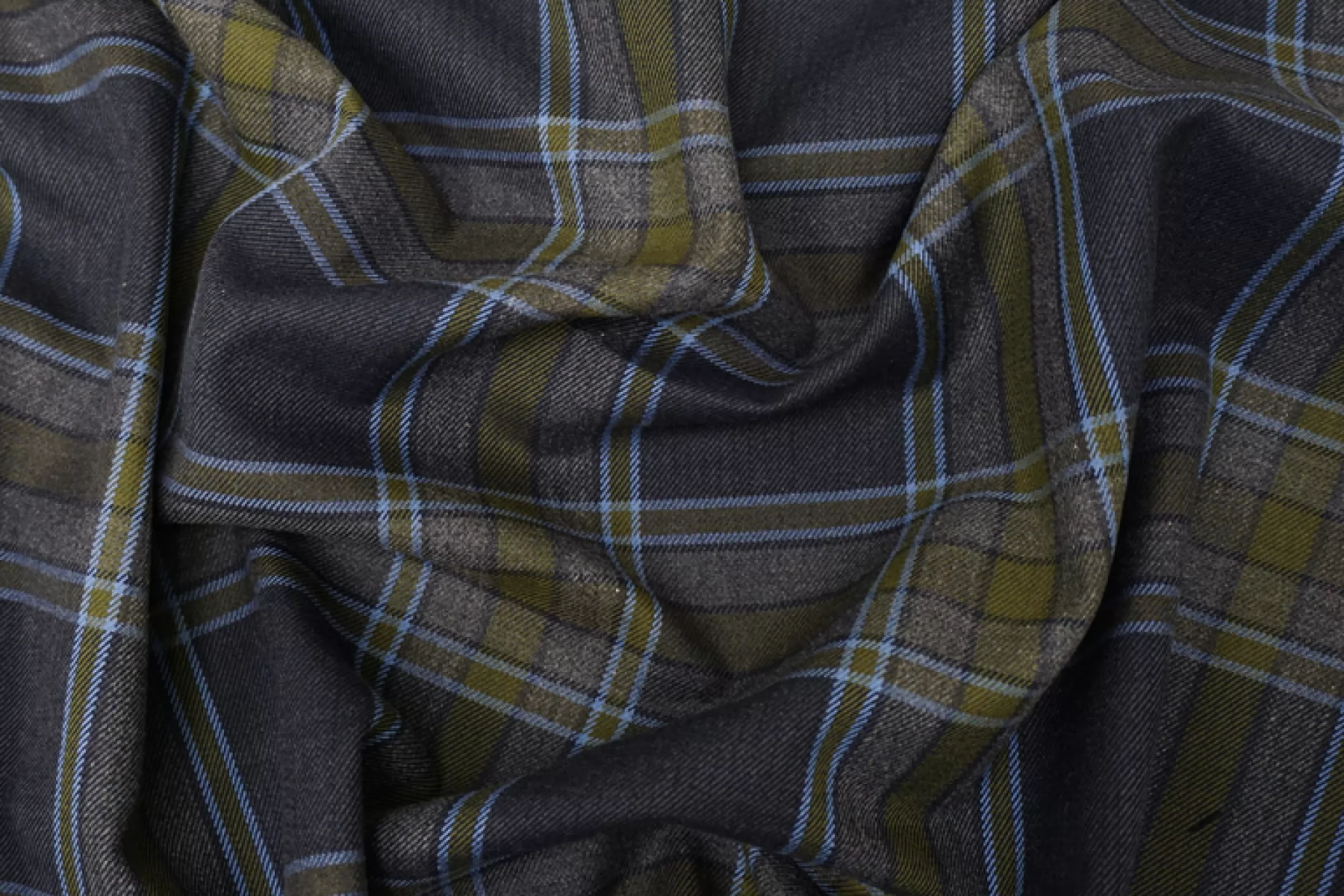Хлопок костюмный в клетку GUCCI Серо-синий Хаки H12/ B70 15032441