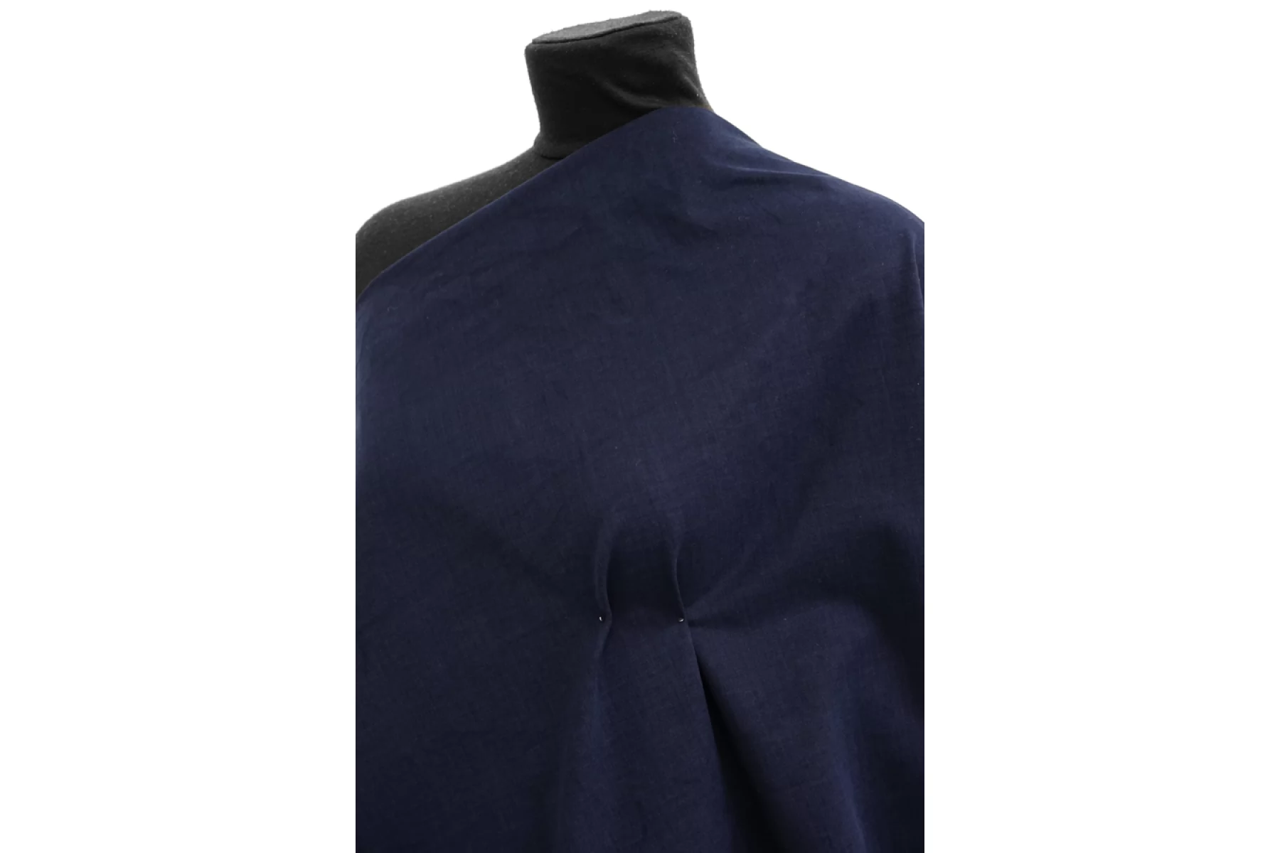 Шикарный итальянский костюмный хлопок с велюровым эффектом синего цвета диагонального плетения. Тактильно очень мягкий и приятный наощупь. С матовым лоском. Держит форму но при этом пластичный, не тянется, не просвечивает. Подойдет для пошива костюма, брюк, платья, юбки. Учитывайте возможную усадку.