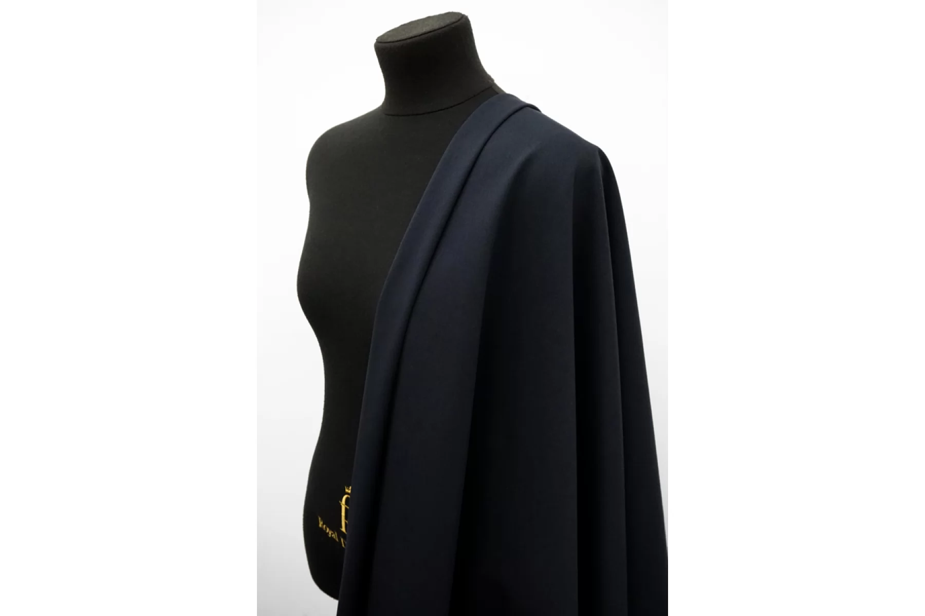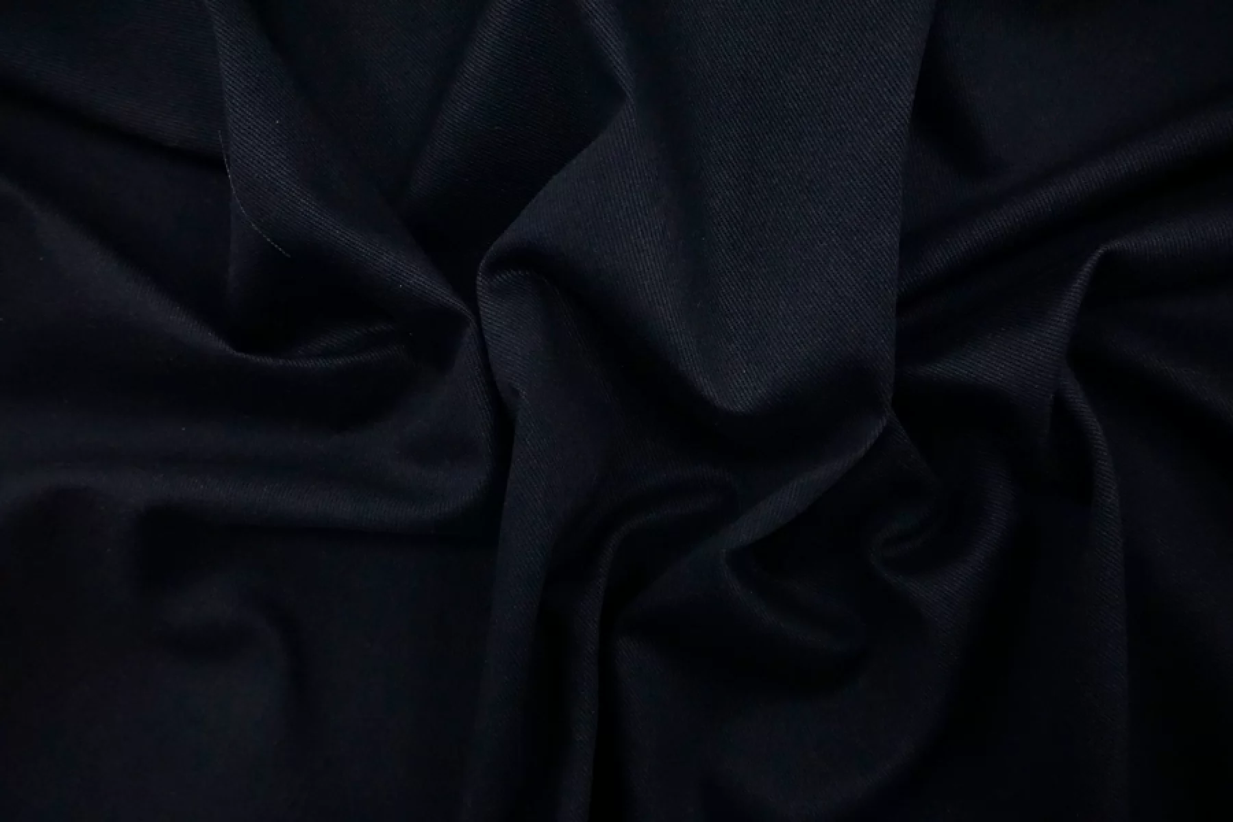 Итальянский костюмный хлопок от Burberry с водоотталкивающим эффектом, в темно-синем цвете диагонального плетения. Держит форму но при этом пластичный, не тянется, не просвечивает, плотный. Подойдет для пошива костюма, держащего форму тренча, пиджака, кардигана.