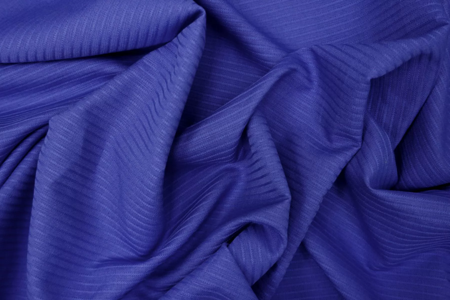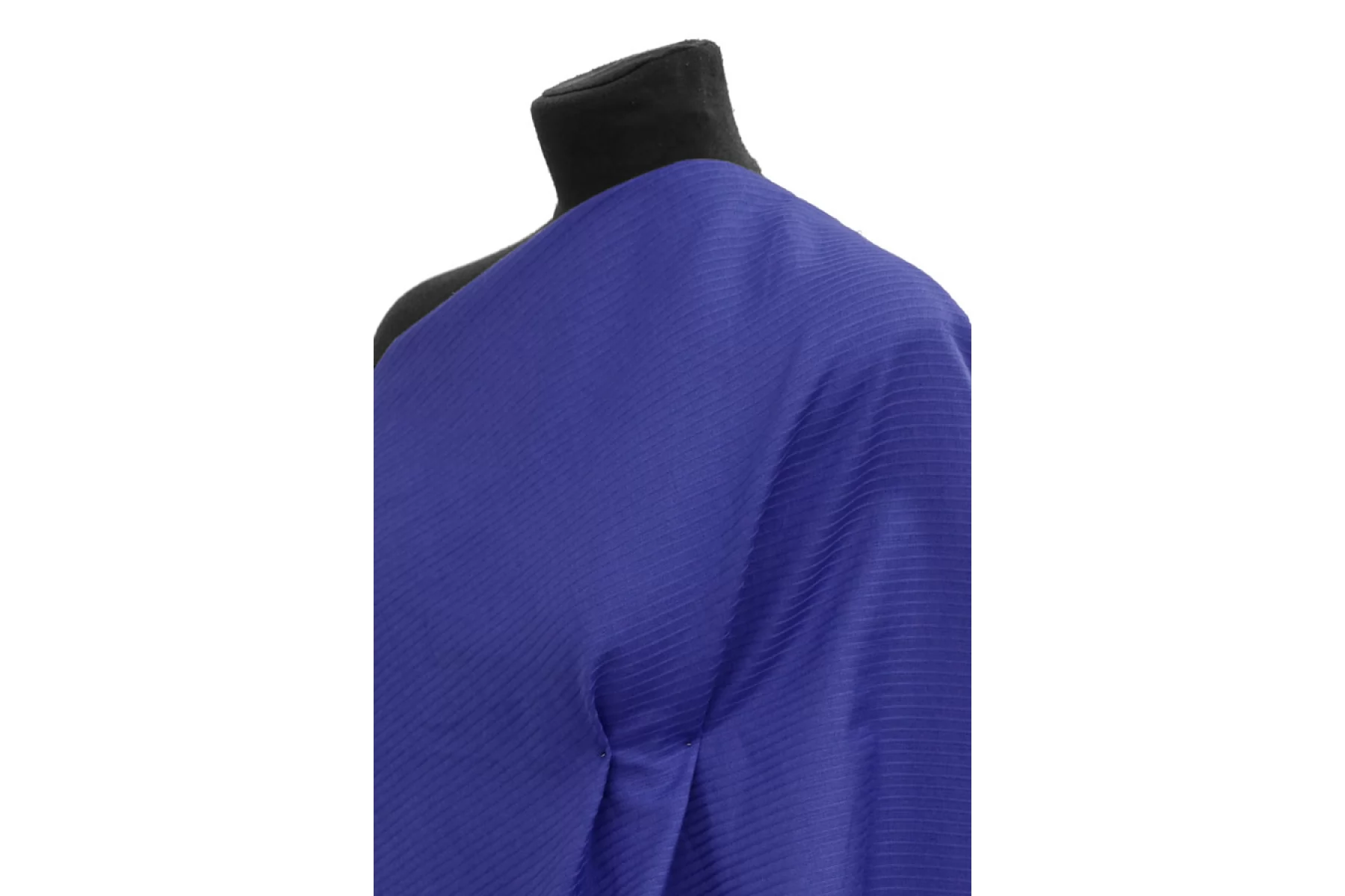 Костюмный тонкий хлопковый жаккард Dolce & Gabbana в синем цвете с фиолетовым подтоном. Пластичный но форму держит, тактильно мягкий. Немного просвечивает силуэт в один слой. Сминается, но восстанавливается. Подойдет на платья, жакеты мягкой формы, юбки, брюки (учитывайте, что не тянется).