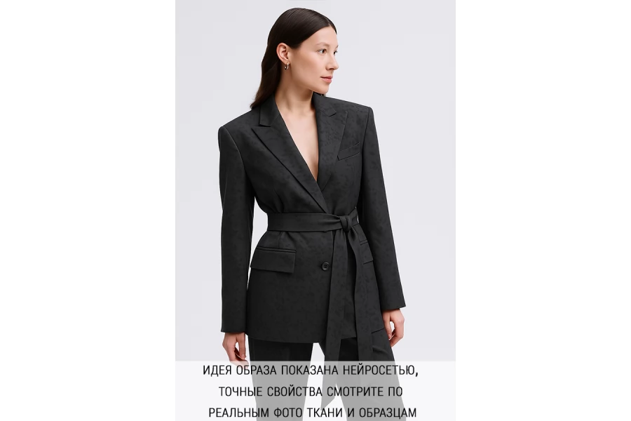 Костюмный хлопковый жаккард со стилизованным пятнистым узором в сером цвете. Лицевая сторона близка к сатиновой. Хорошо драпируется и держит форму, тянется. Не просвечивает, сминается, но восстанавливается. Подойдет на платья, жакеты, брюки, юбки и костюмы.