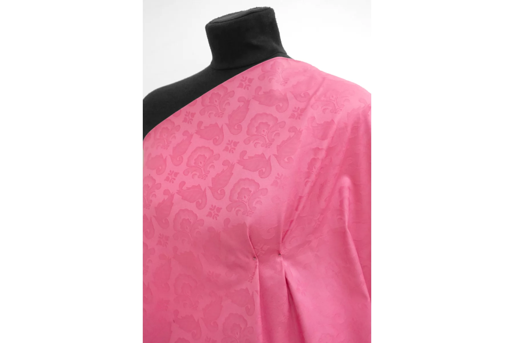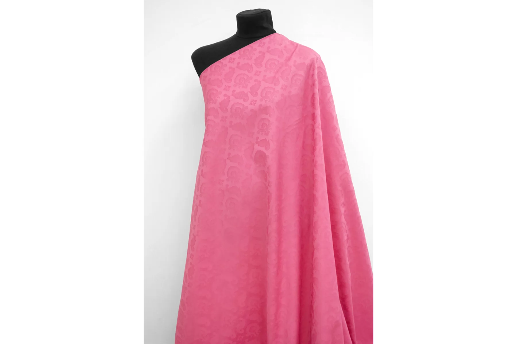 Костюмный тонкий хлопковый жаккард с абстрактным узором в розовом цвете. Хорошо драпируется и немного держит форму, не тянется. Не просвечивает, сминается, но восстанавливается. Подойдет на платья, жакеты мягкой формы, юбки, брюки (учитывайте, что не тянется).