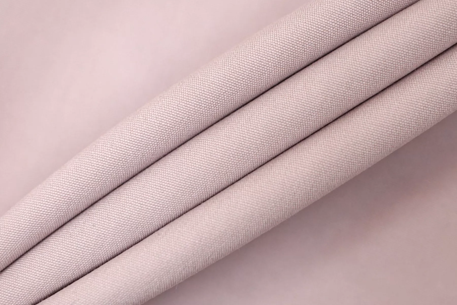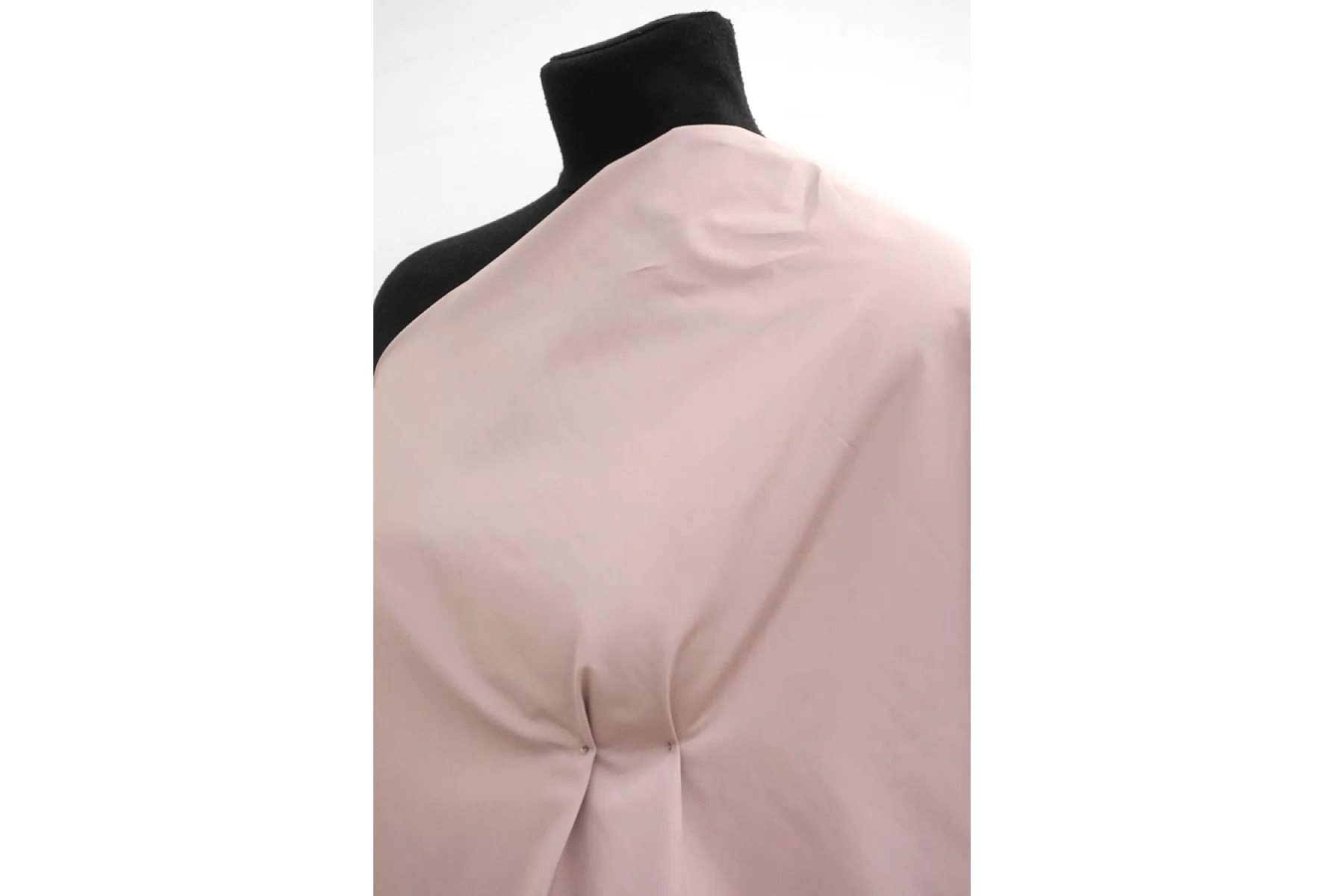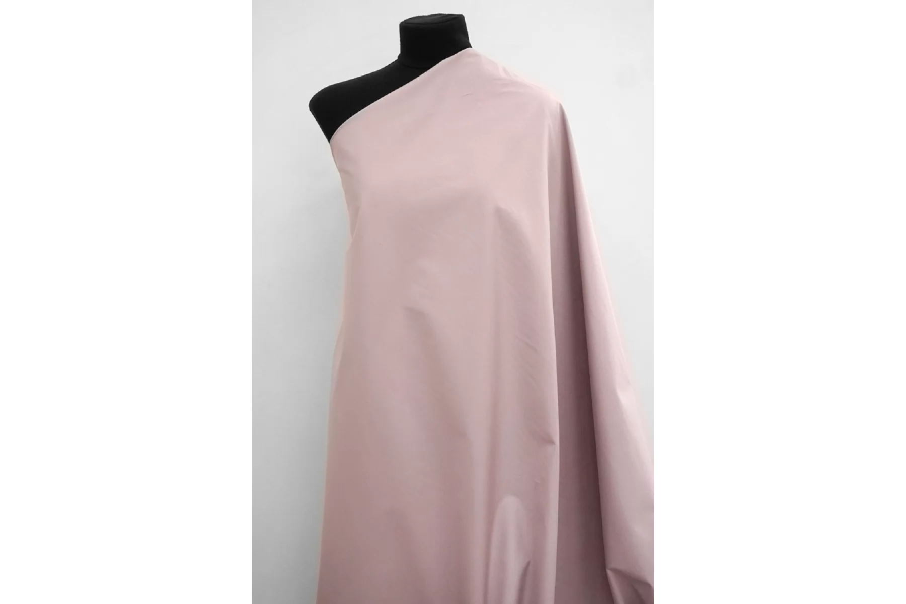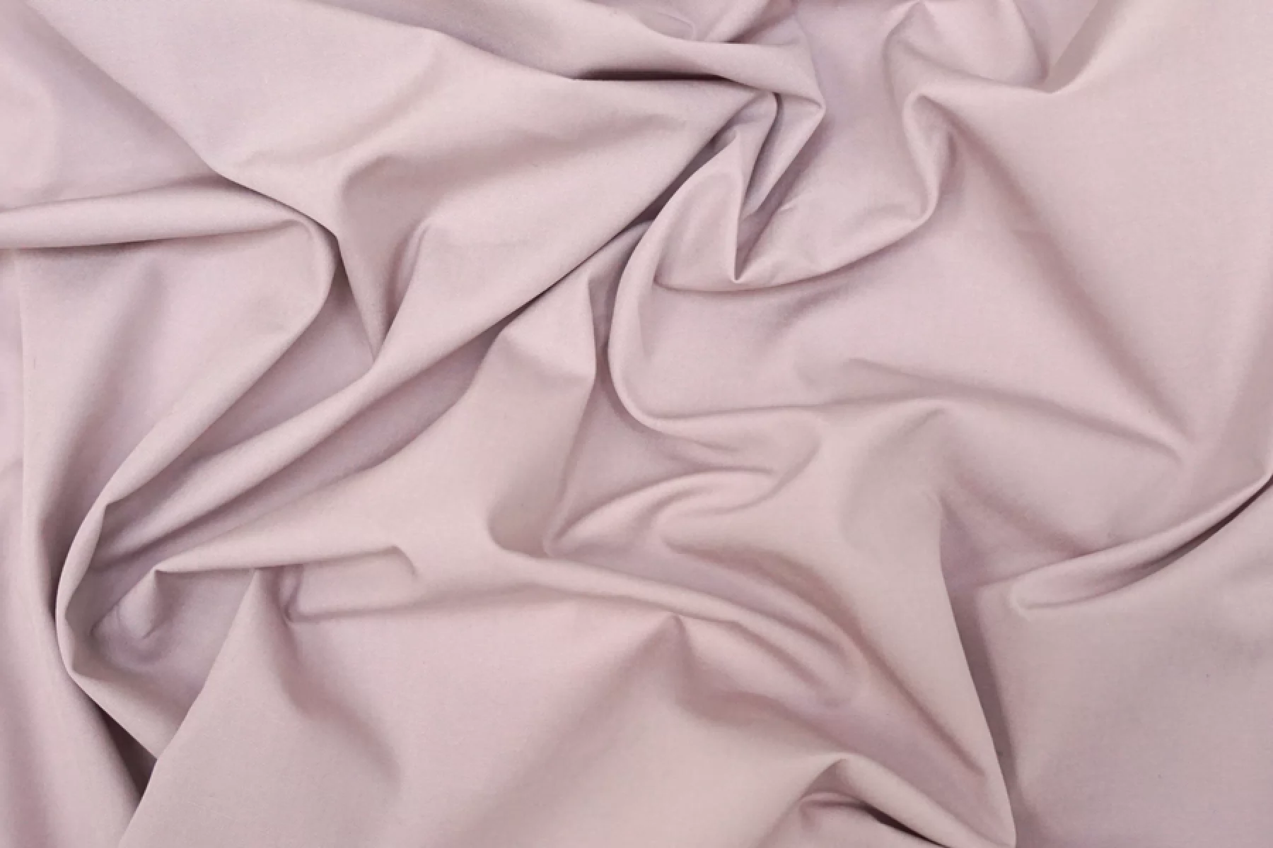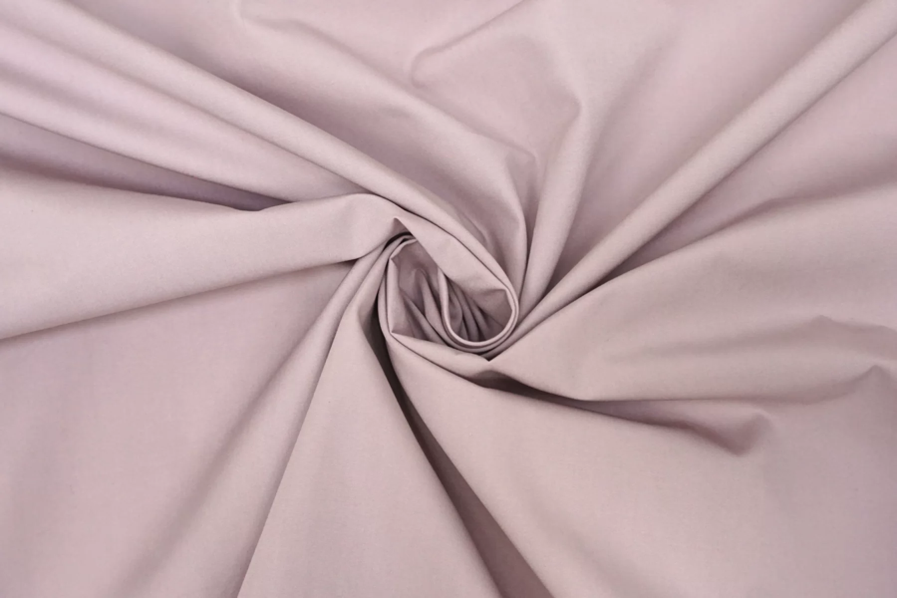 Мерсеризованный хлопок от Gucci в неярком, припыленном сиренево-сером оттенке. Вода легко стекает с поверхности, но со временем впитывается. Материал плотный, гладкий. Шуршащий, упругий. Форму держит хорошо. Мнется. Отлично подойдет для пошива курток, плащей, костюмов.
