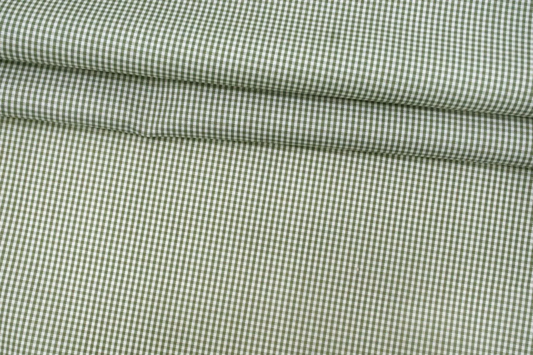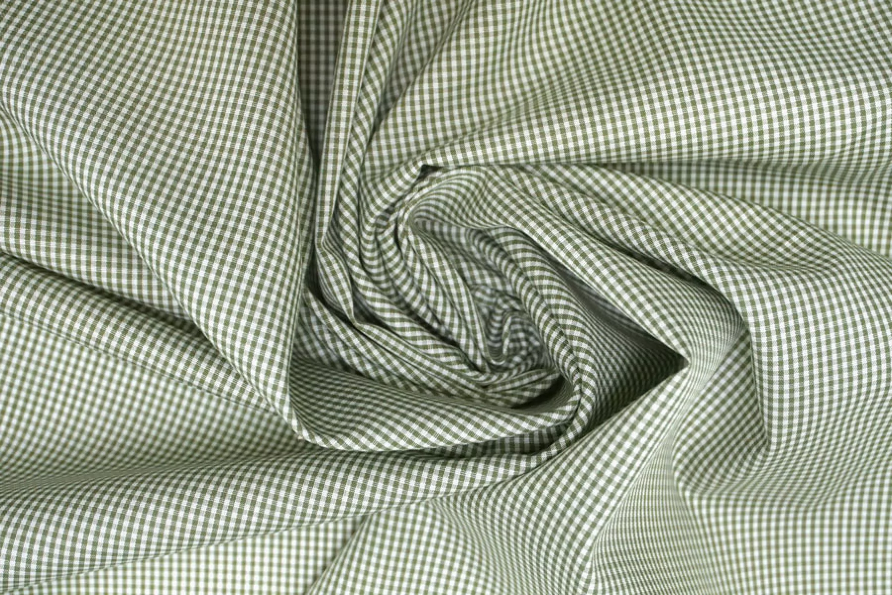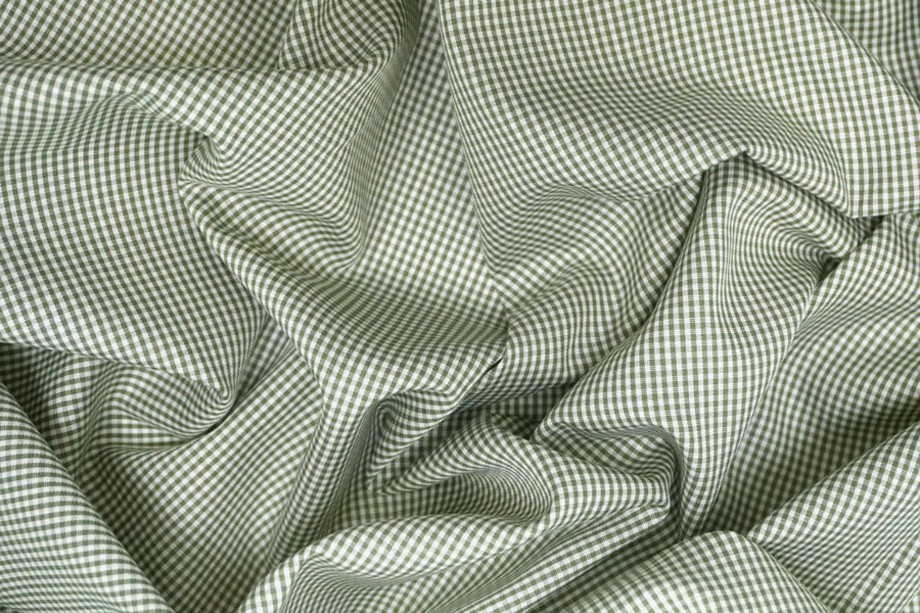 Прекрасный рубашечный мерсеризованный хлопок в мелкую бело-зеленую клетку. Тактильно материал тонкий, но плотный, приятный, гладкий. Не тянется.. Отлично драпируется и неплохо держит форму. Просвечивает силуэт. Немного сминается. Классный вариант на платья, юбки и рубашки.