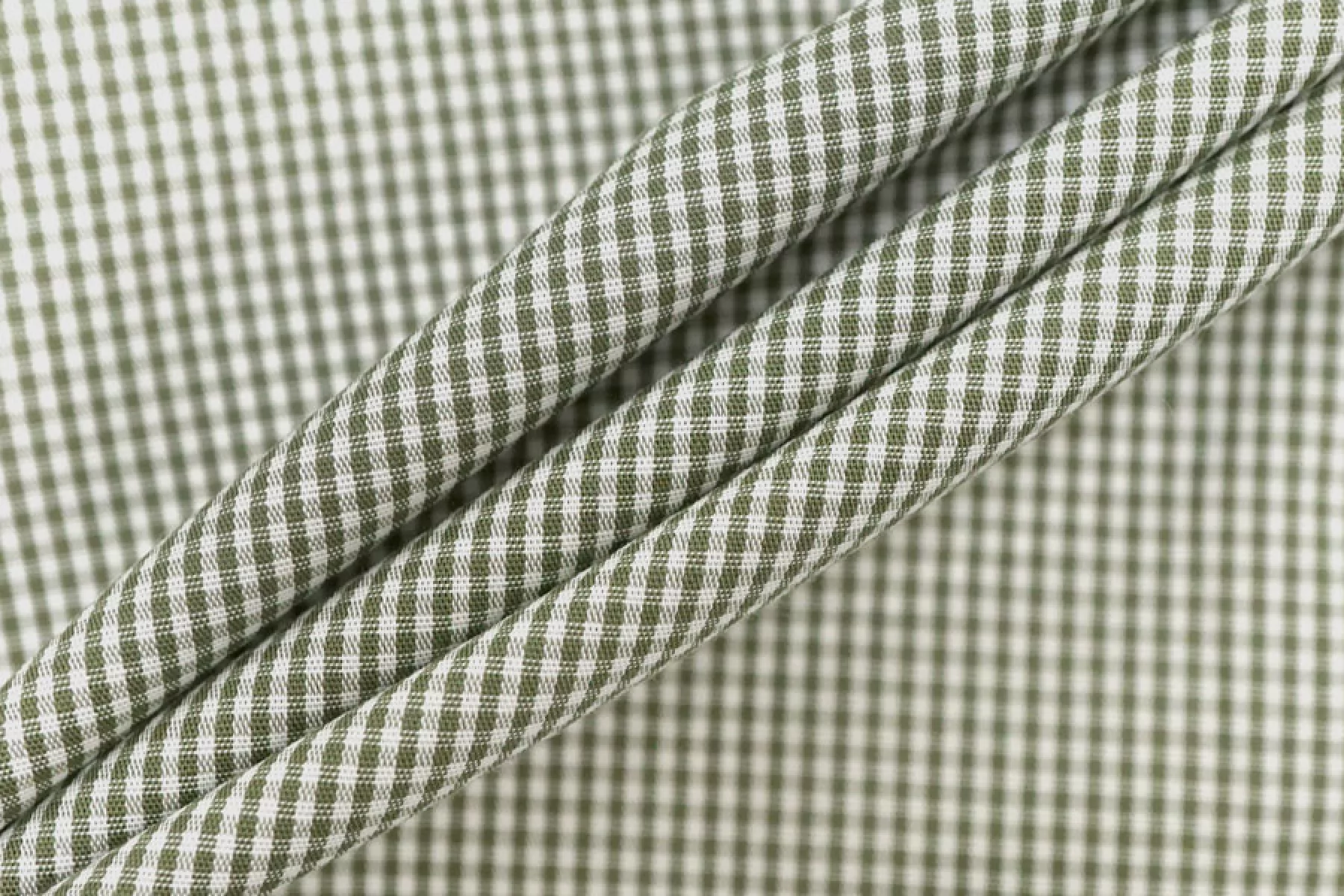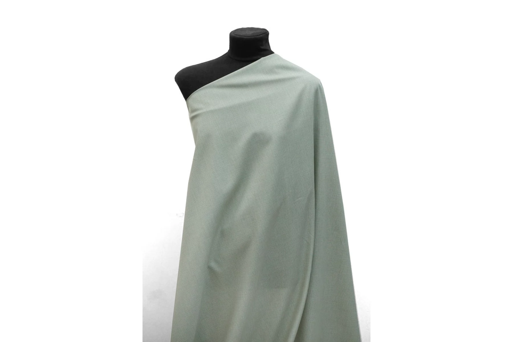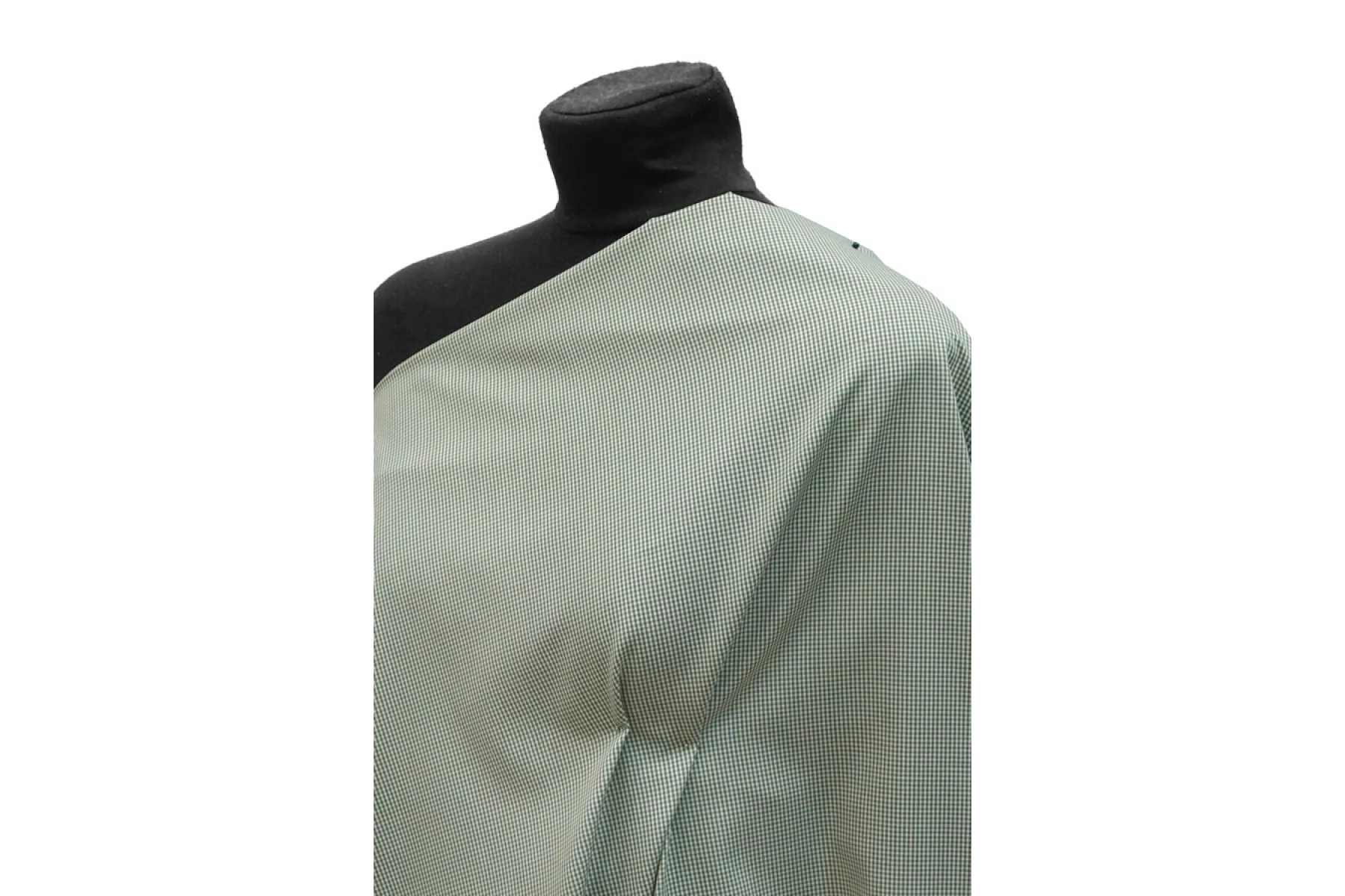 Прекрасный рубашечный мерсеризованный хлопок в мелкую бело-зеленую клетку. Тактильно материал тонкий, но плотный, приятный, гладкий. Не тянется.. Отлично драпируется и неплохо держит форму. Просвечивает силуэт. Немного сминается. Классный вариант на платья, юбки и рубашки.