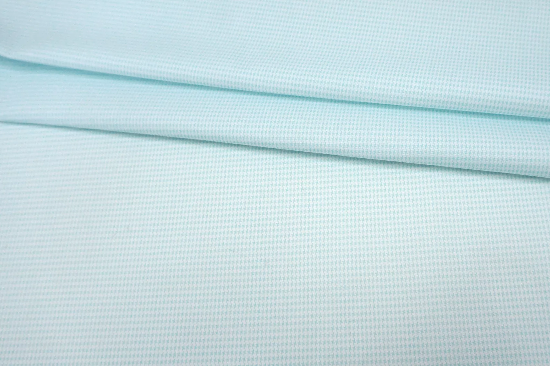 Итальянский хлопок плательно-рубашечной плотности с принтом-голубой пепитой на белом фоне. Материал очень гладкий, мягкий, неплохо держит форму и драпируется. Сминается умеренно. Совсем слегка виднеется силуэт на просвет. Отличный вариант на плотные рубашки, платья и другие варианты летней одежды.