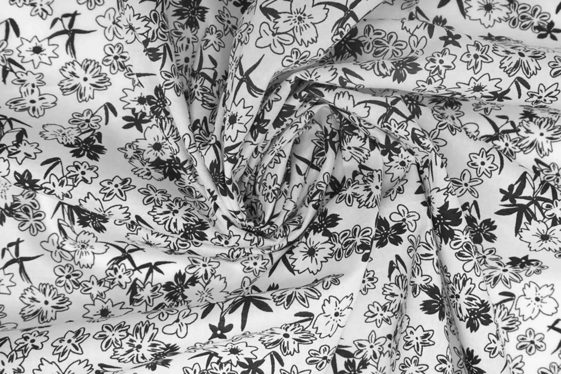 Хлопок рубашечно-плательный Цветы Черно-белый FRM H9/4 A70 29062546