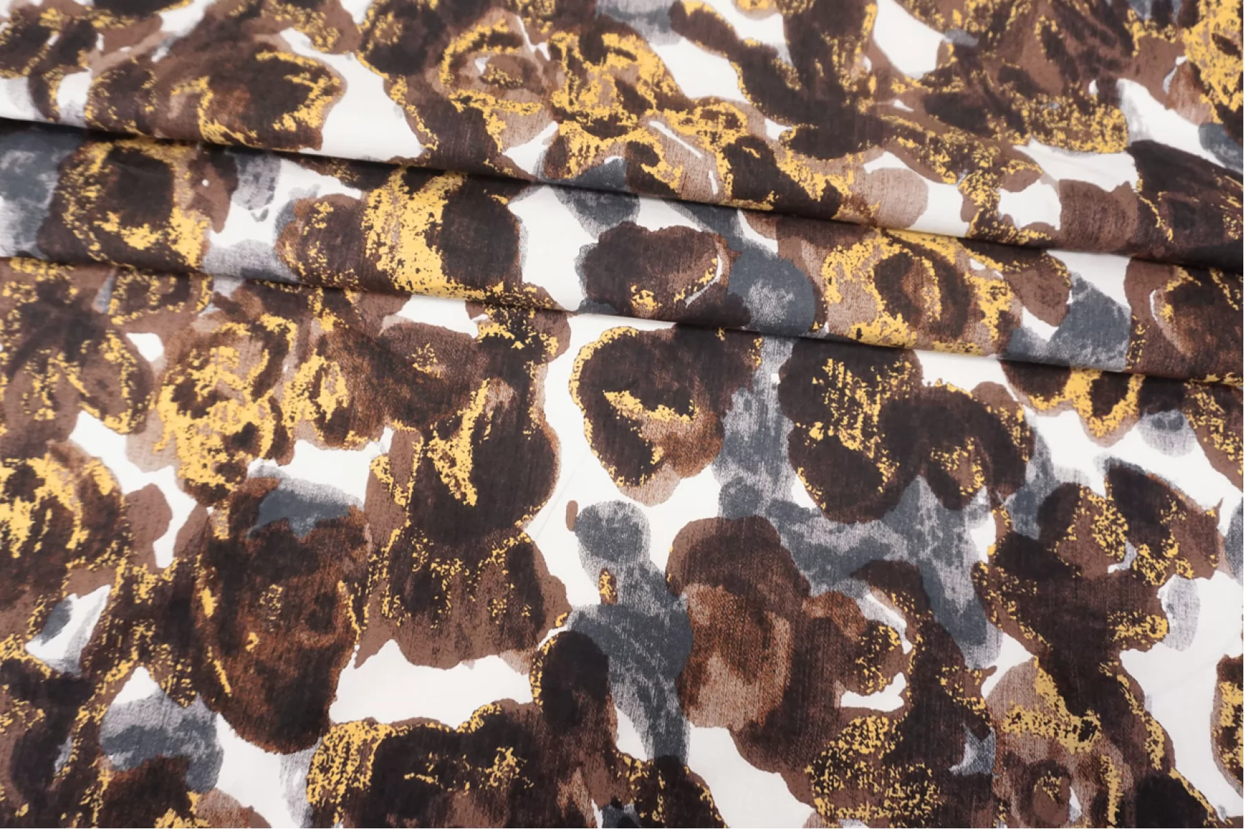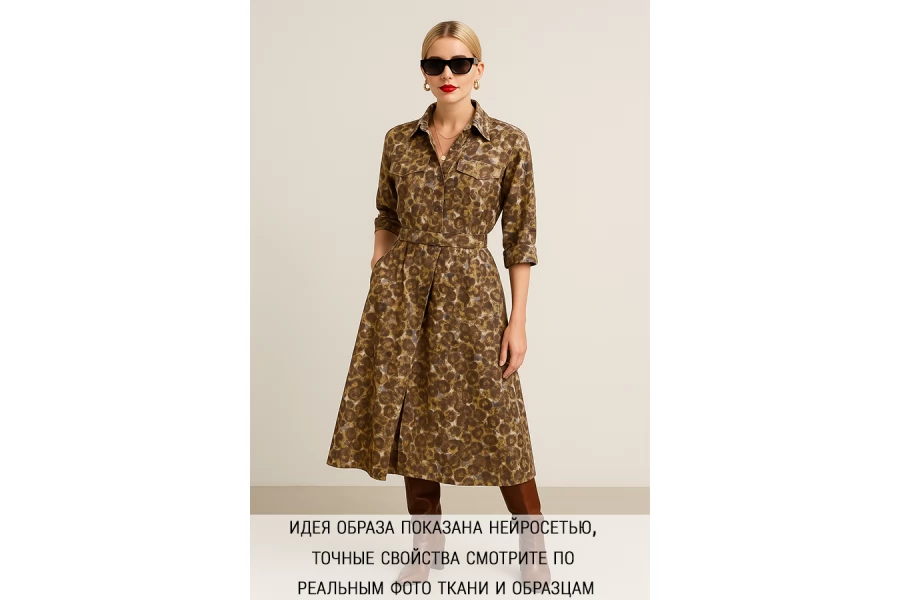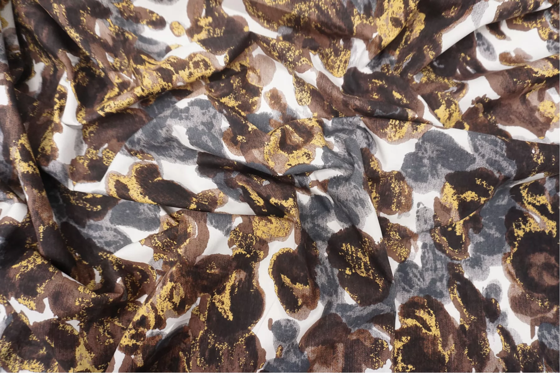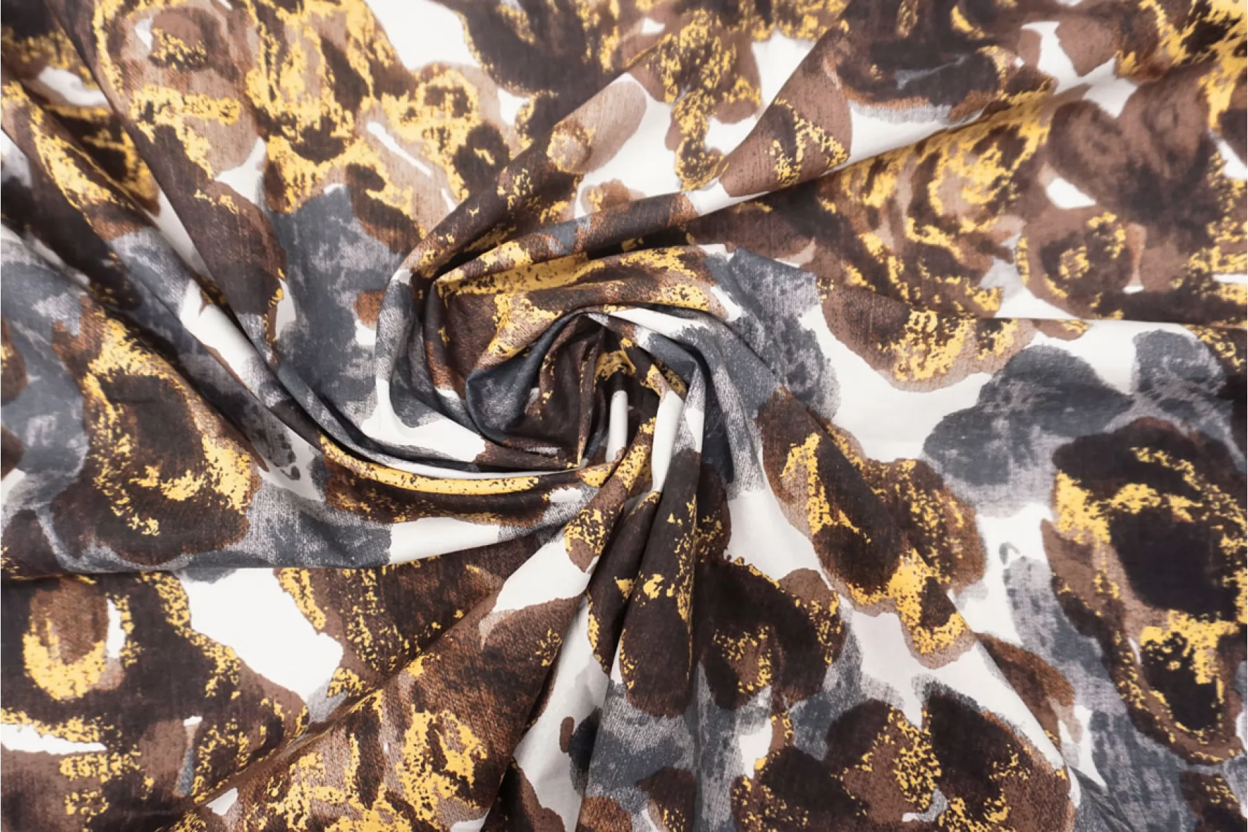 Прекрасный итальянский хлопок рубашечно-плательной плостности от бренда MAX MARA в абстрактный принт в виде пятен приглушенных цветов: желтый, серый, коричневый. Тонкий, пластичный, гладкий, легкий, практически не просвечивает, не тянется, но слегка пружинит. Неплохо держит форму. Немного сминается, но благодаря принту не особо заметно. Подойдет для пошива платья, рубашки, юбки, сарафана. Учитывайте усадку.