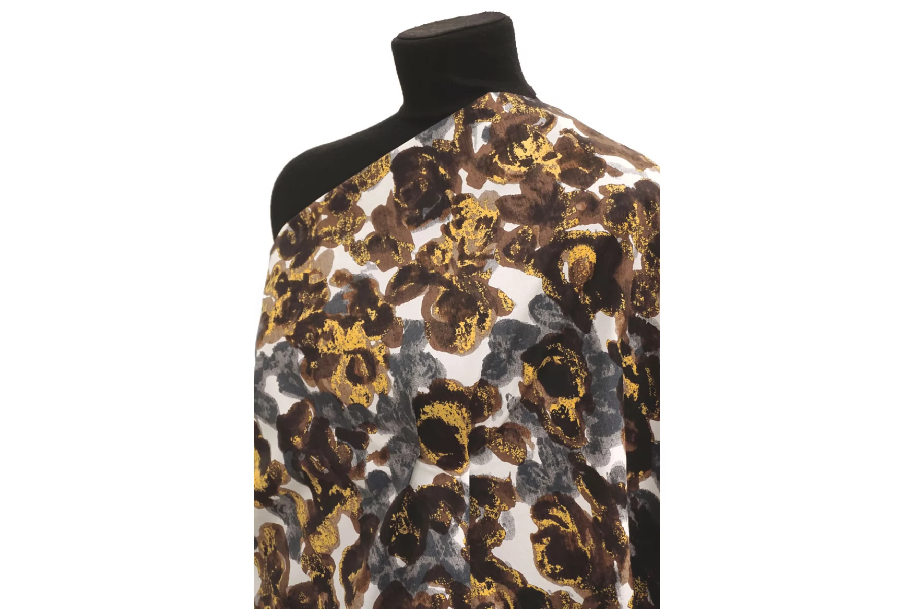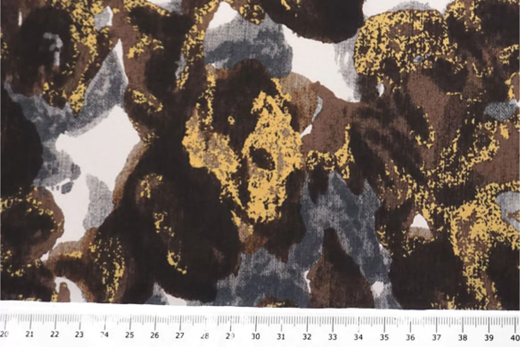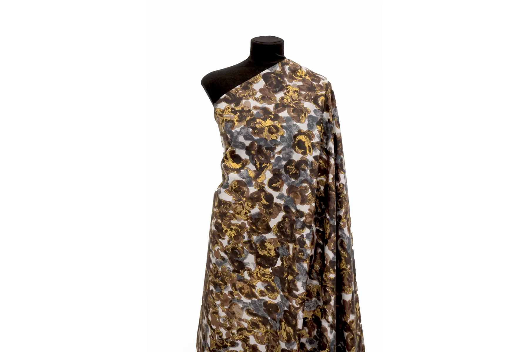 Прекрасный итальянский хлопок рубашечно-плательной плостности от бренда MAX MARA в абстрактный принт в виде пятен приглушенных цветов: желтый, серый, коричневый. Тонкий, пластичный, гладкий, легкий, практически не просвечивает, не тянется, но слегка пружинит. Неплохо держит форму. Немного сминается, но благодаря принту не особо заметно. Подойдет для пошива платья, рубашки, юбки, сарафана. Учитывайте усадку.