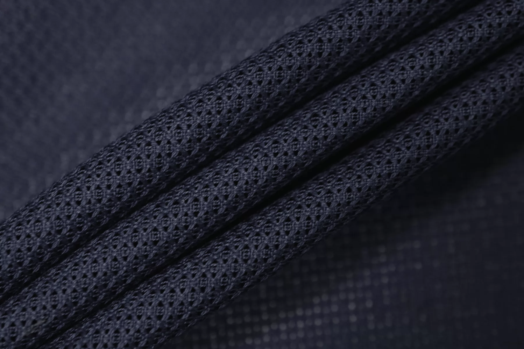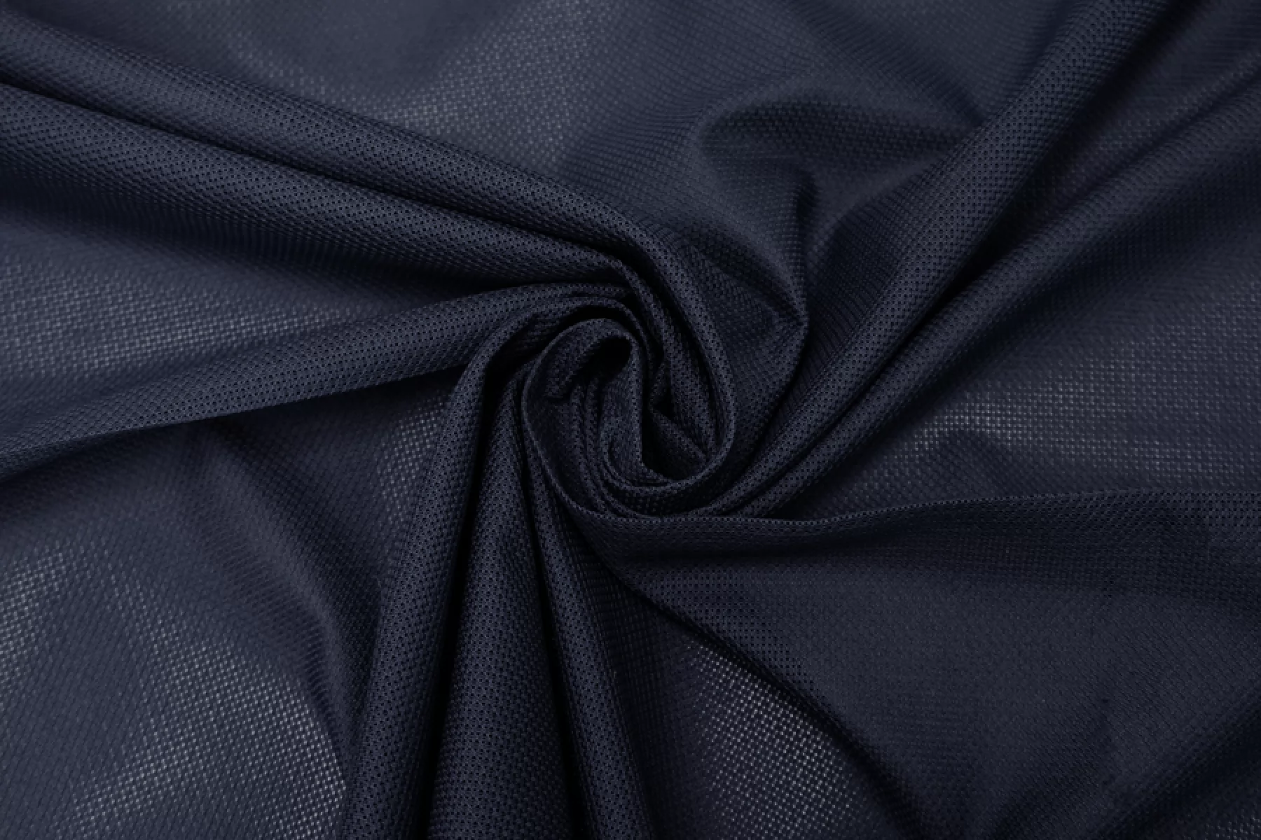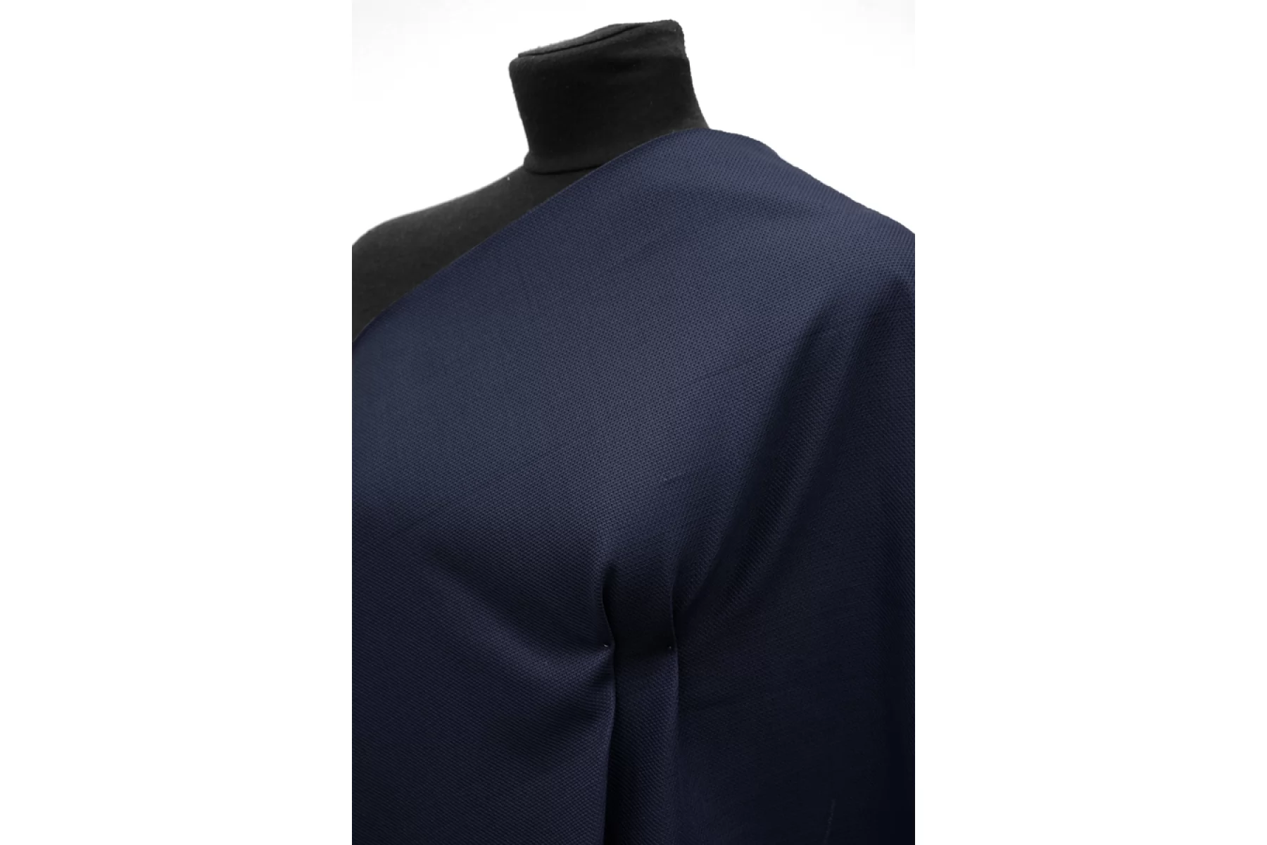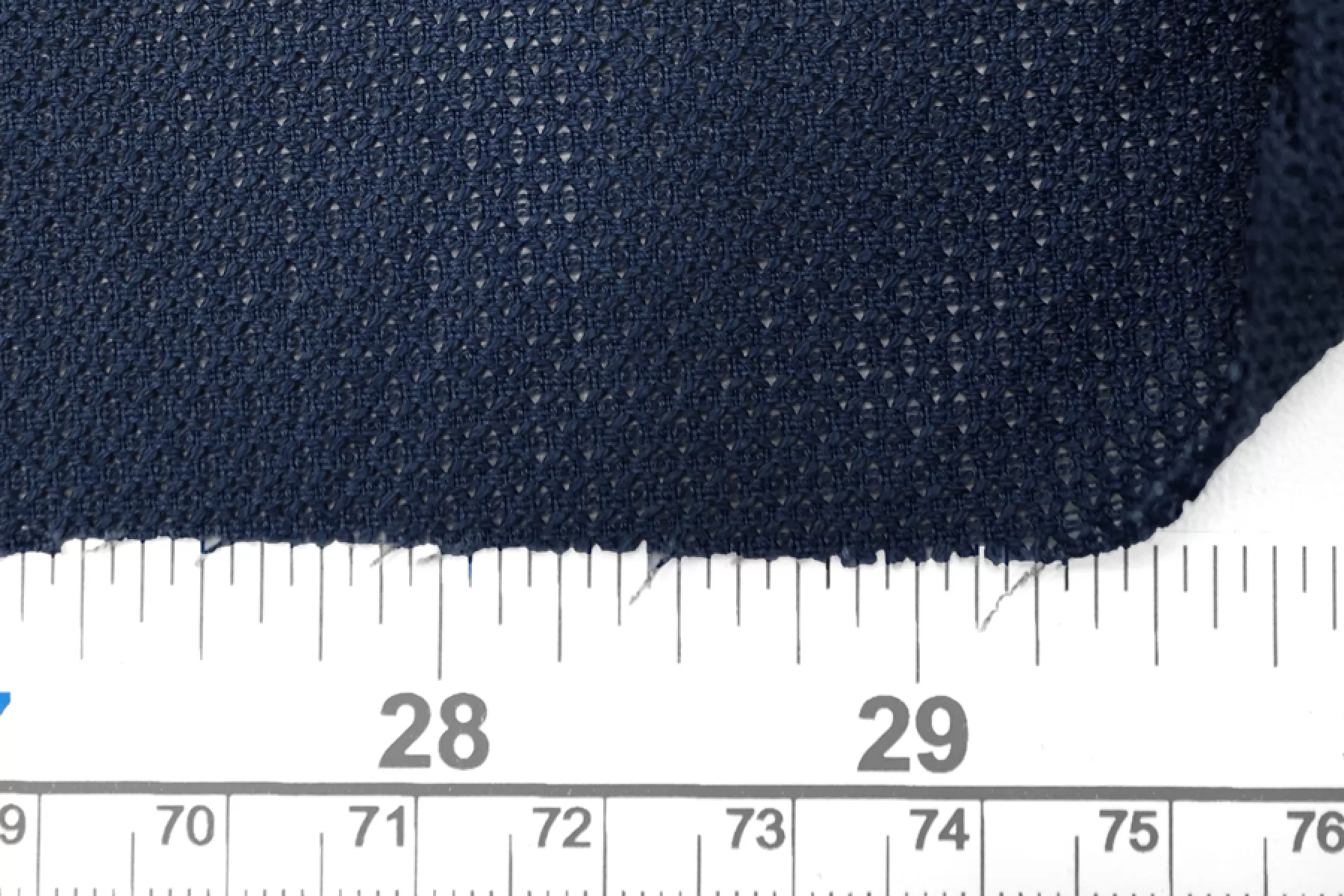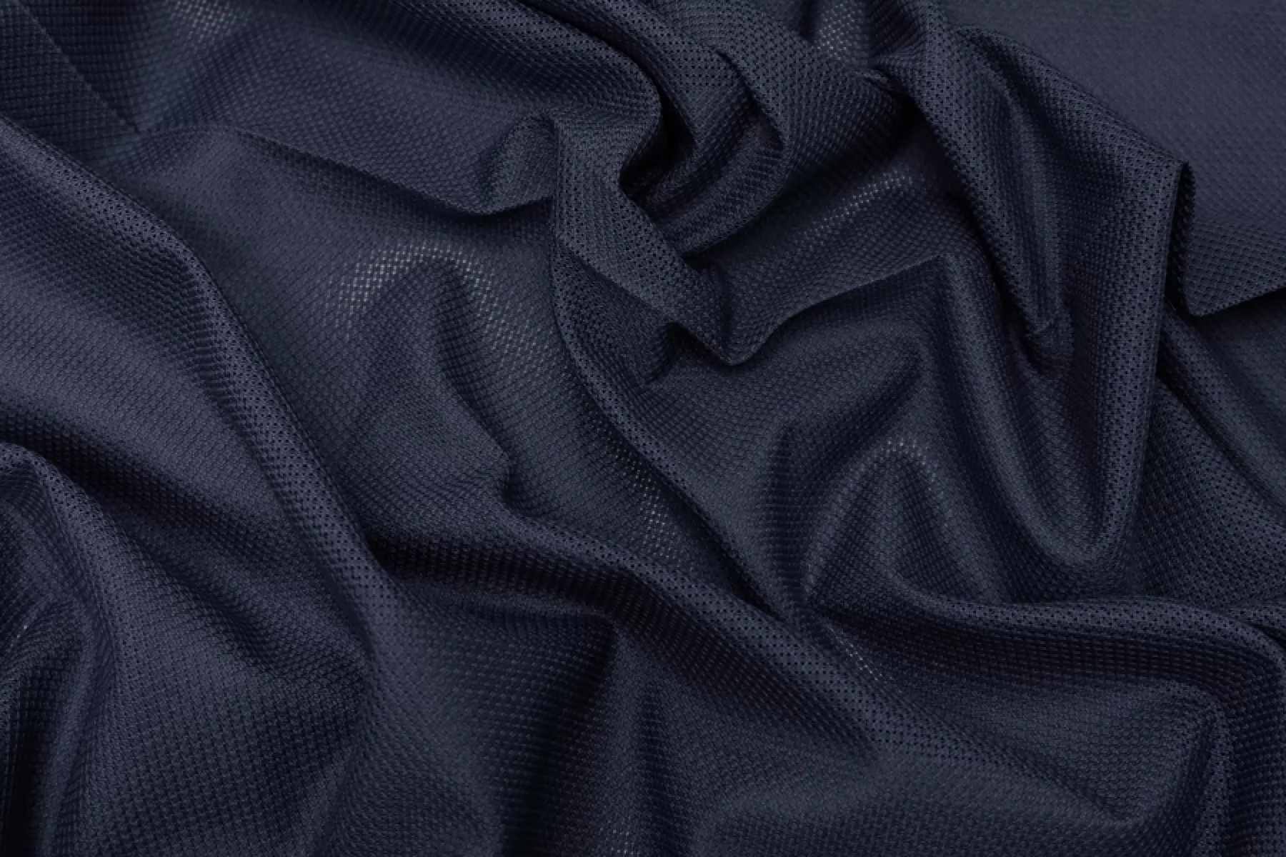 Интересный итальянский хлопок-сетка от Gucci в темно-синем цвете. Рубашечно-плательной плотности, довольно мелкие ячейки. Тактильно слегка суховат, фактурность ощущается. Пластичный, держит форму. Просвечивает, плетение немного тянется. Прекрасный вариант на рубашки, юбки, платья. Материал дает усадку.