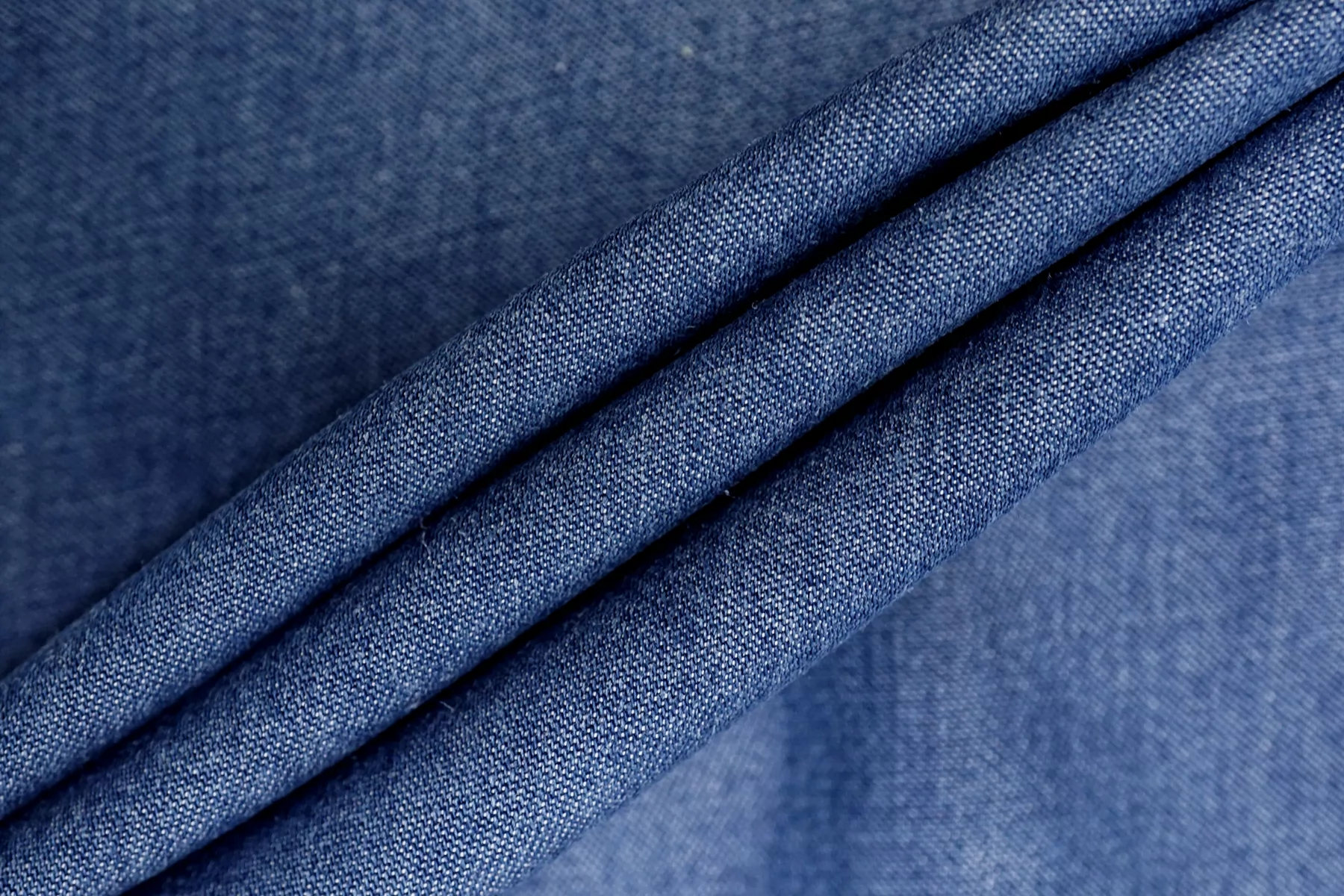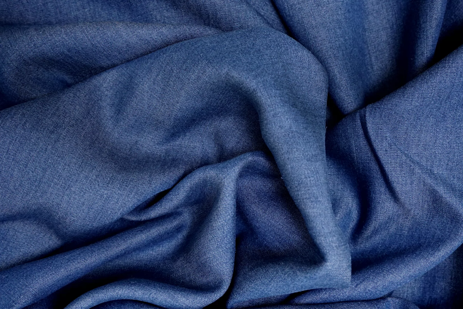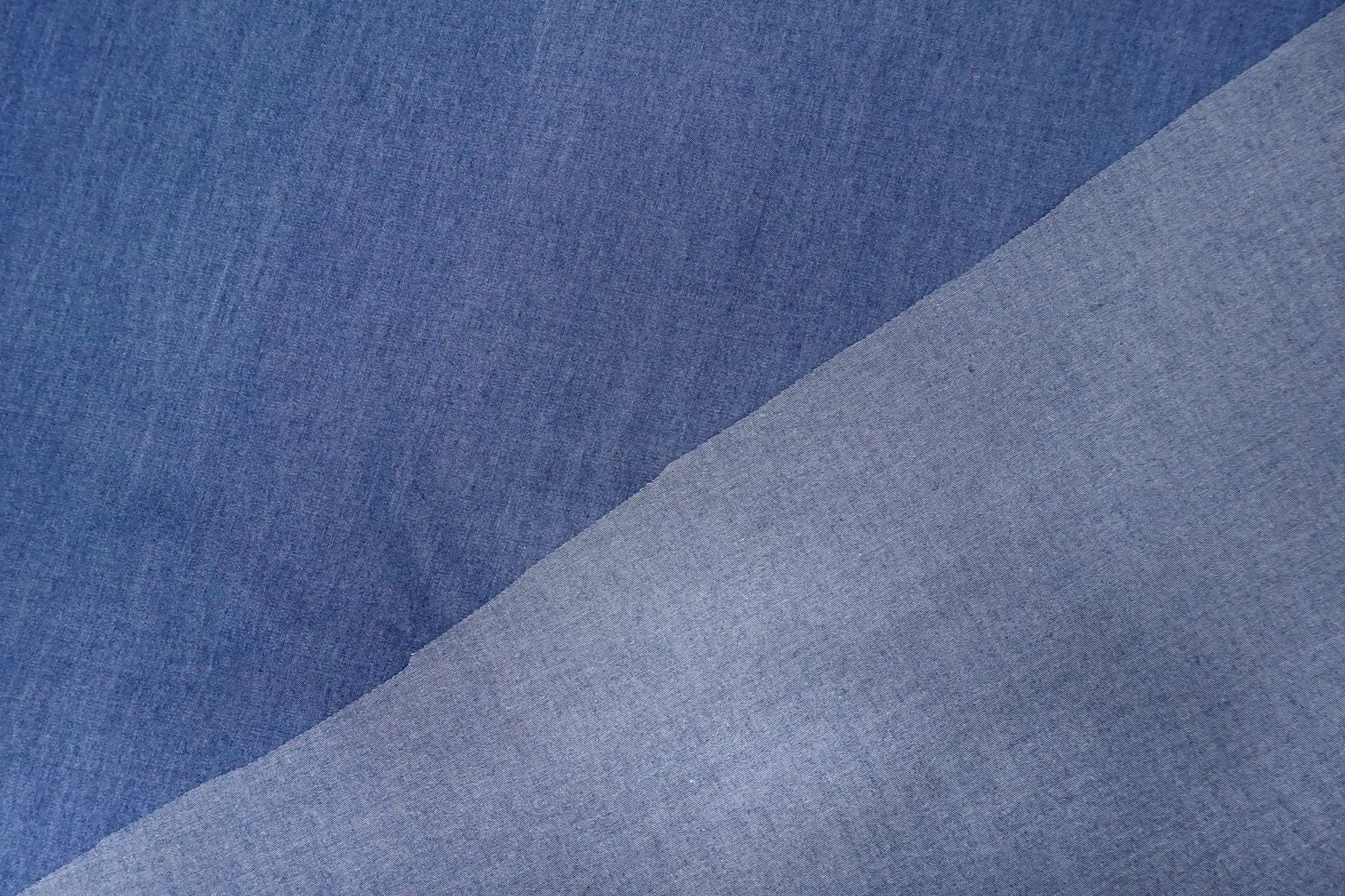 Интересный рубашечно-плательный хлопок-шамбре. Нити тёмно-синего и белого цвета, диагональное плетение. Гладкая и приятна наощупь. С мягким лоском. Не тянется. Тонкий, но плотный. Минимально просвечивает силуэт в один слой. Умеренно держит форму, пластичный. Сминается. Отличный летний вариант на рубашки, платья, юбки, свободные брюки. Учитывайте возможную усадку.