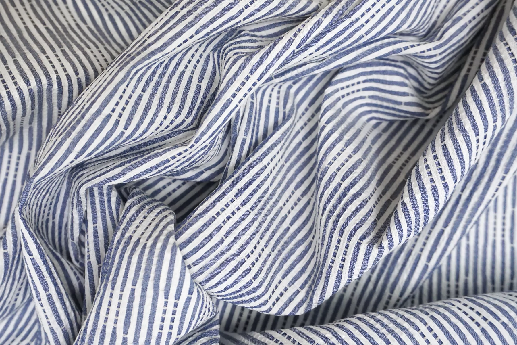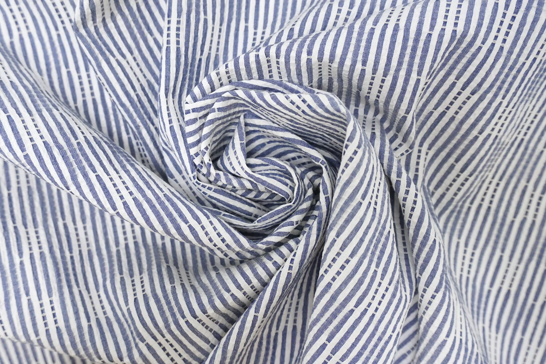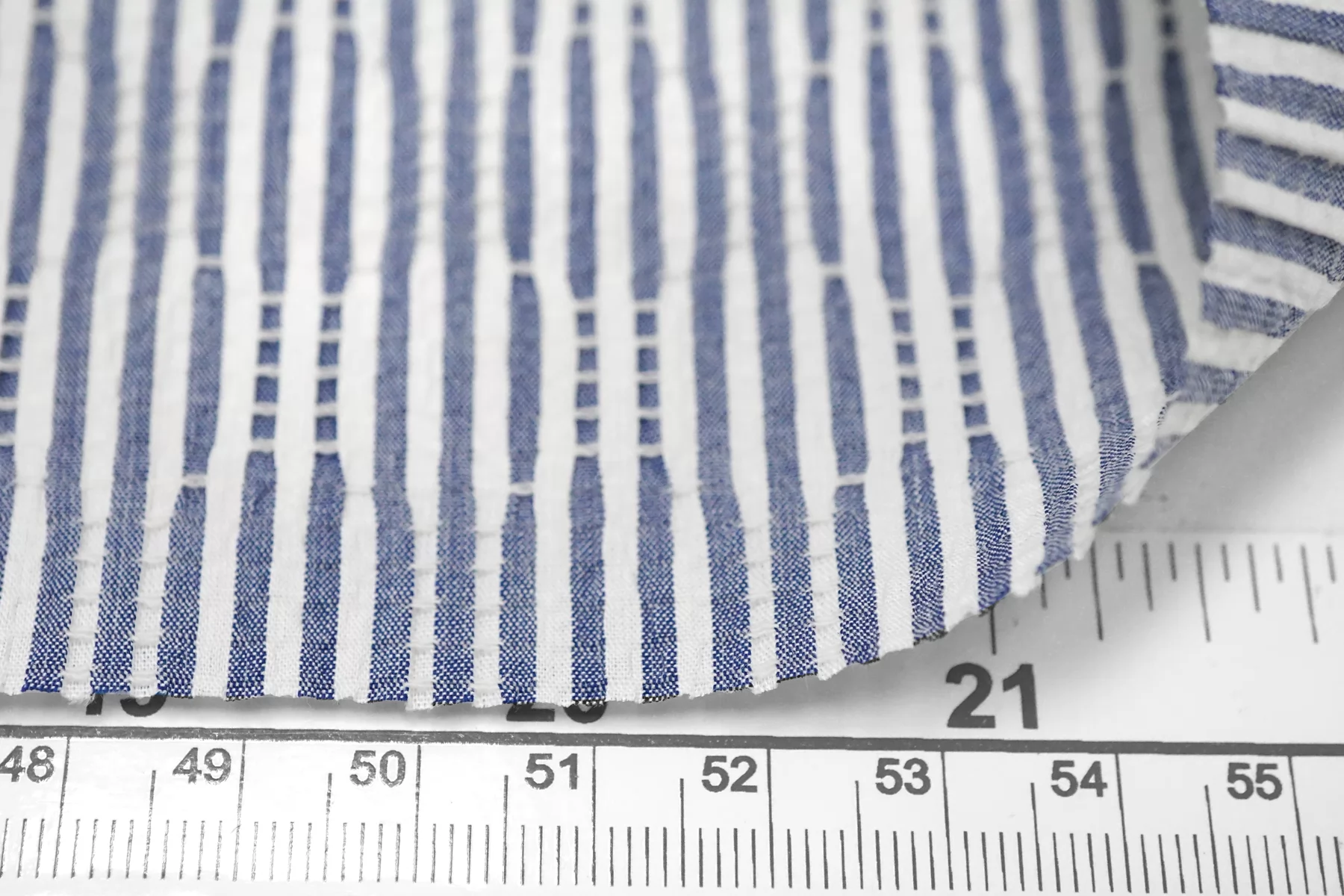 Хлопок рубашечно-плательный сирсакер в полоску Бело-синий CVC H7 B10 19112530
