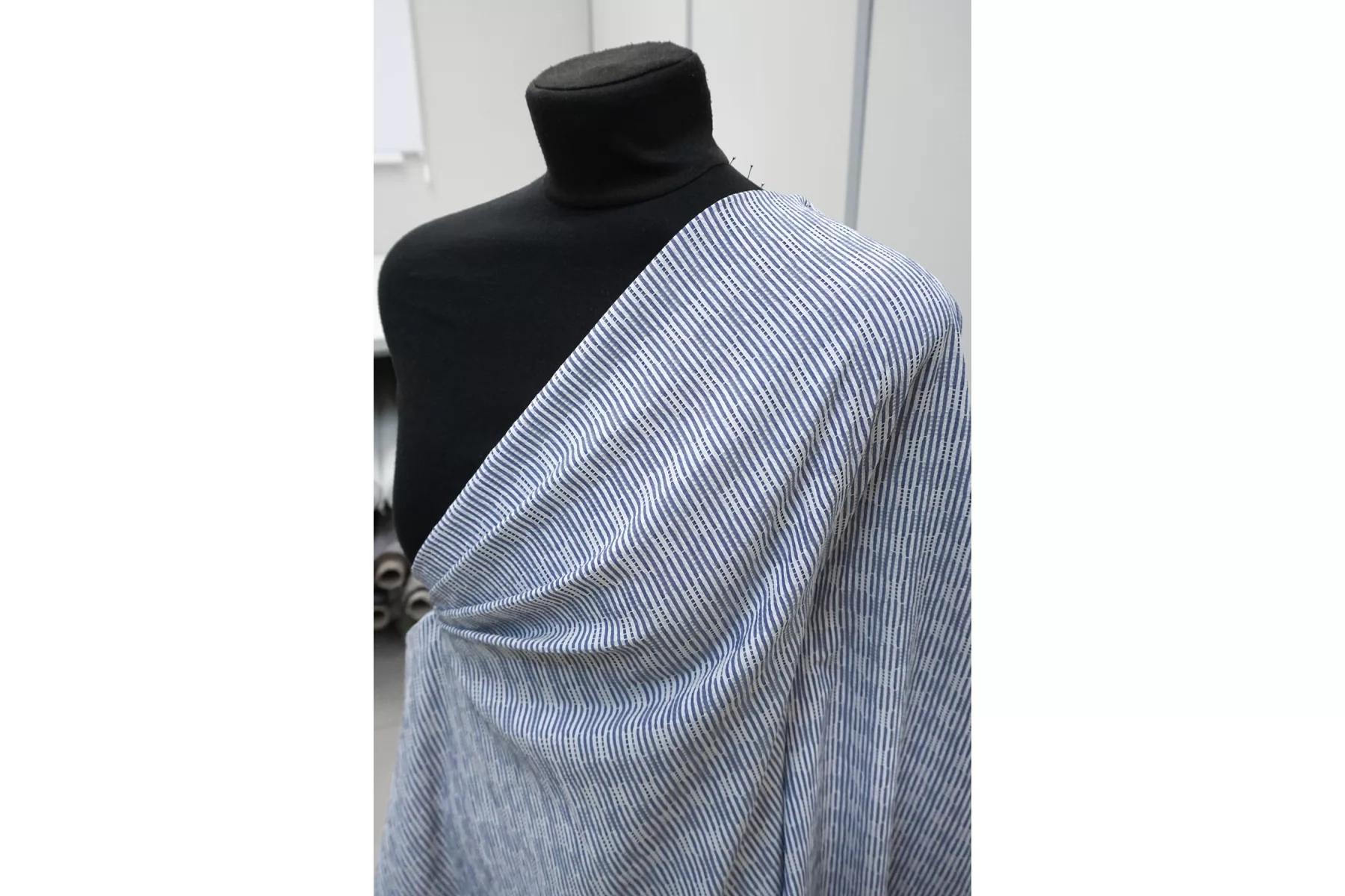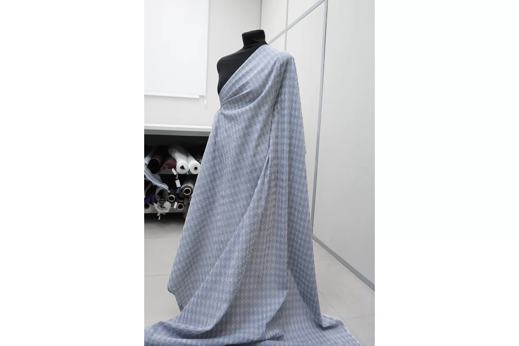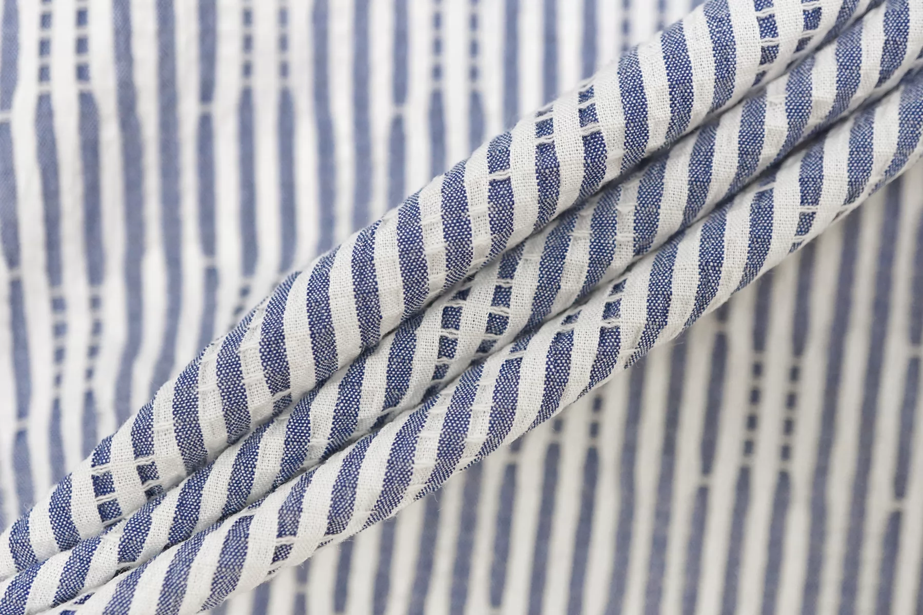 Хлопок рубашечно-плательный сирсакер в полоску Бело-синий CVC H7 B10 19112530