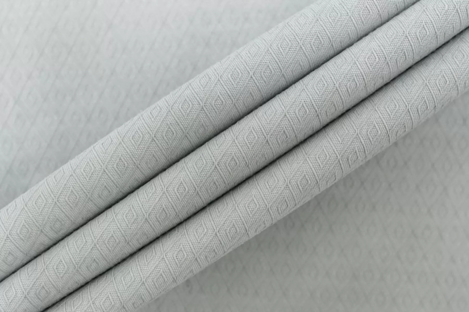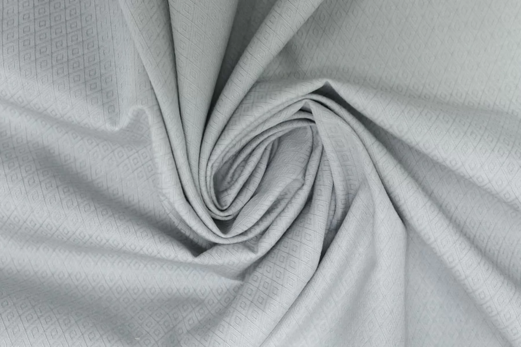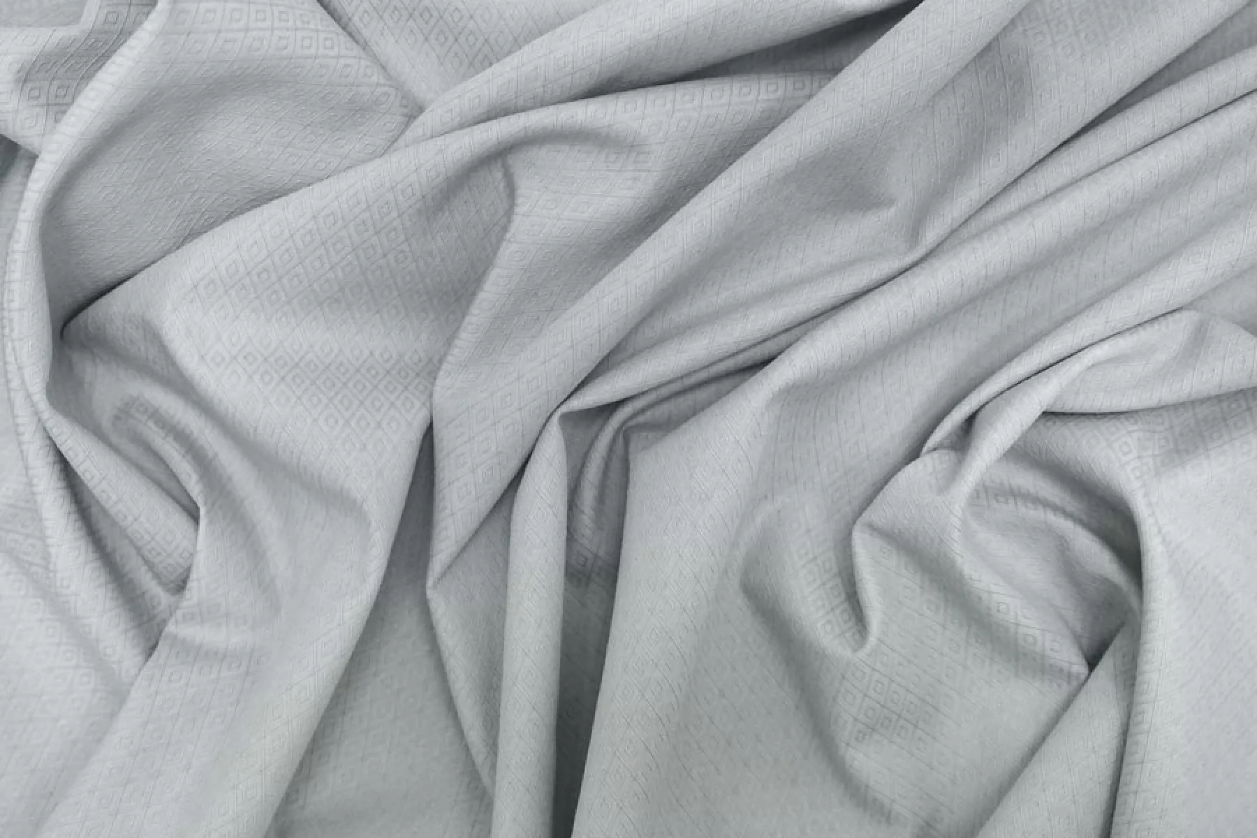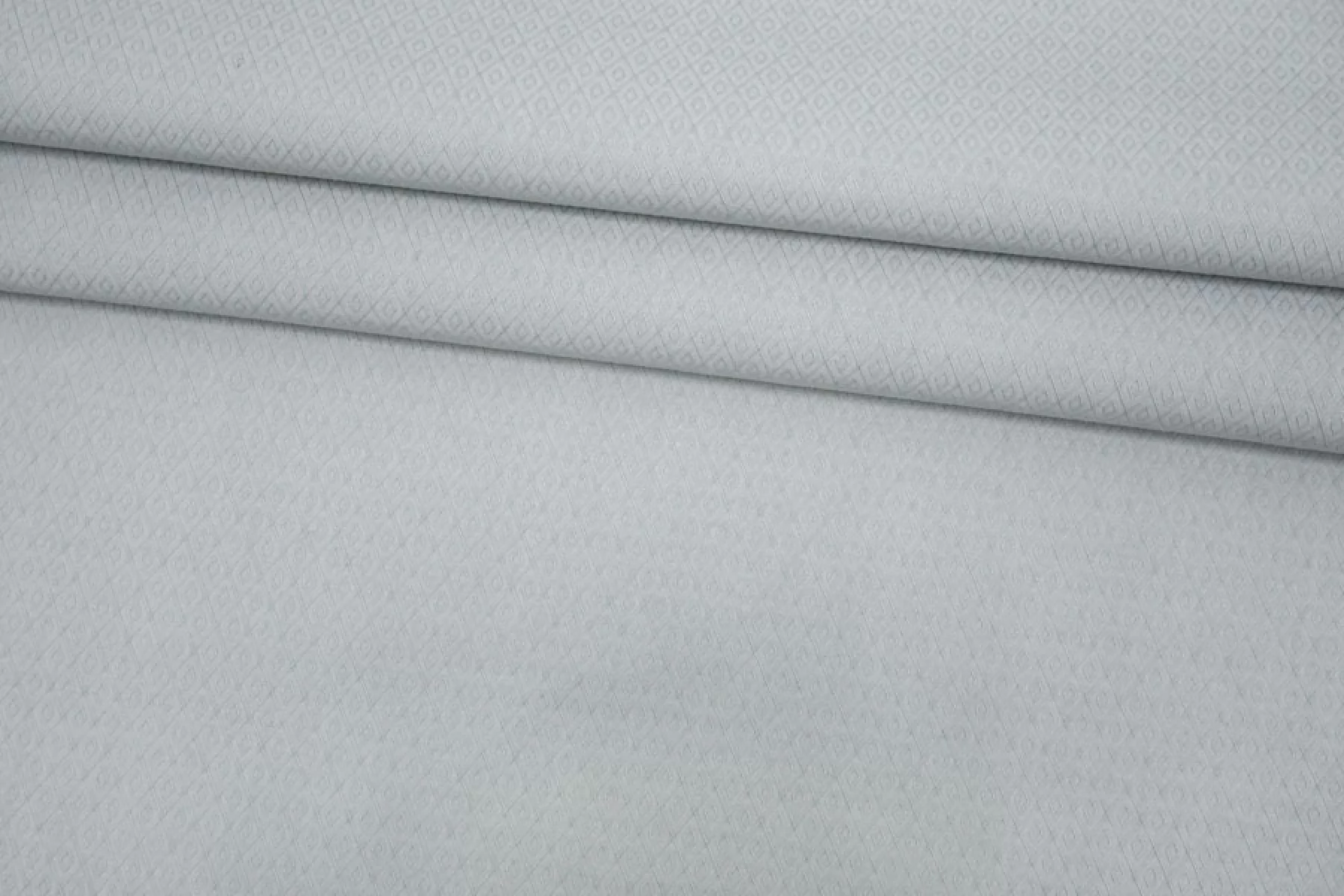 Итальянский рубашечно-плательный хлопок жаккардового плетения светлом серо-мятном оттенке. Мягкий и приятный наощупь, чувствуется фактурность. Тонкий, пластичный, легкий, немного просвечивает, не тянется. Подойдет для пошива платья, рубашки, юбки, сарафана. Учитывайте возможную усадку.