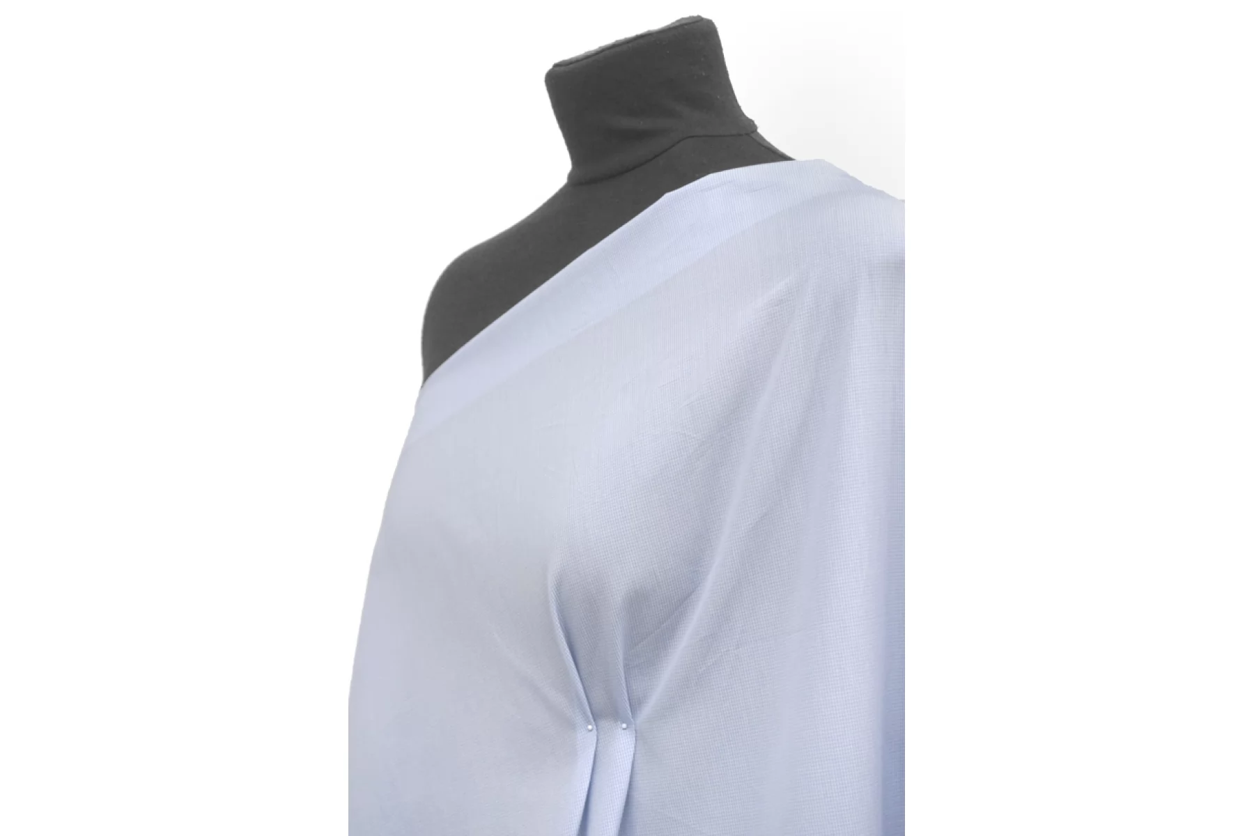 Прекрасный мерсеризированный рубашечный хлопок в клетку, от фабрики Cotonificio Albini, полотняного переплетения в очень мелкую клетку голубого и белого оттенков. Тактильно мягкий и очень приятный. Обладает легким лоском. Пластичный и красиво смотрится в складке и драпировках. Хорошо драпируется и неплохо держит форму. Не просвечивает, но если смотреть на просвет, слегка заметен силуэт темного. Не тянется. Сминается. Подойдет на рубашки, юбки, платья и не только.