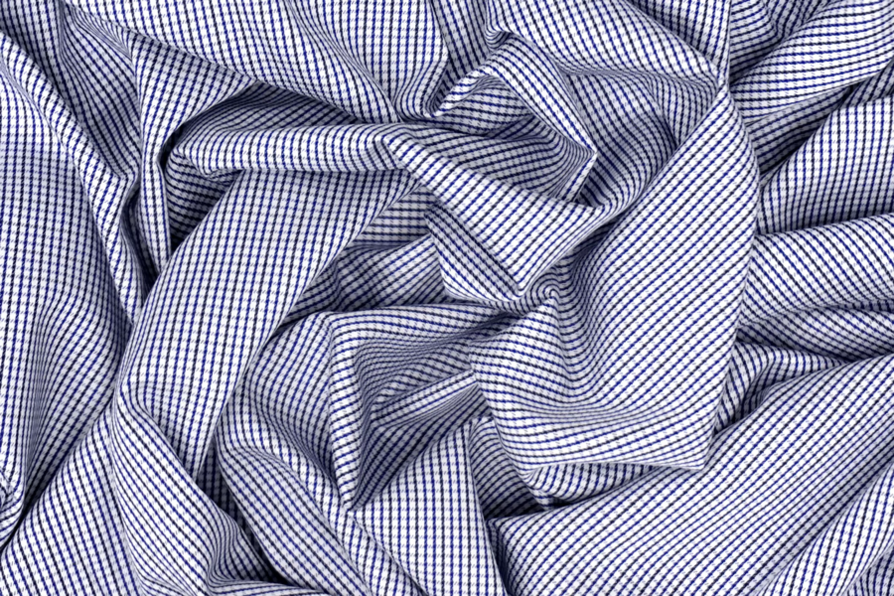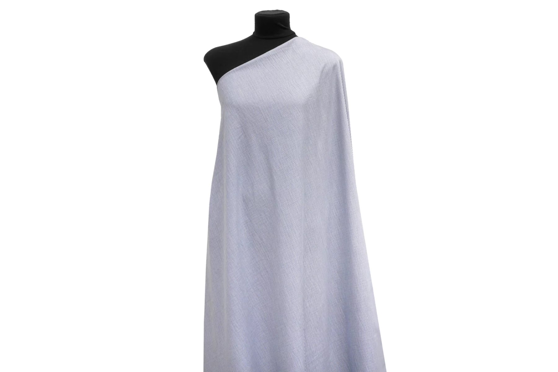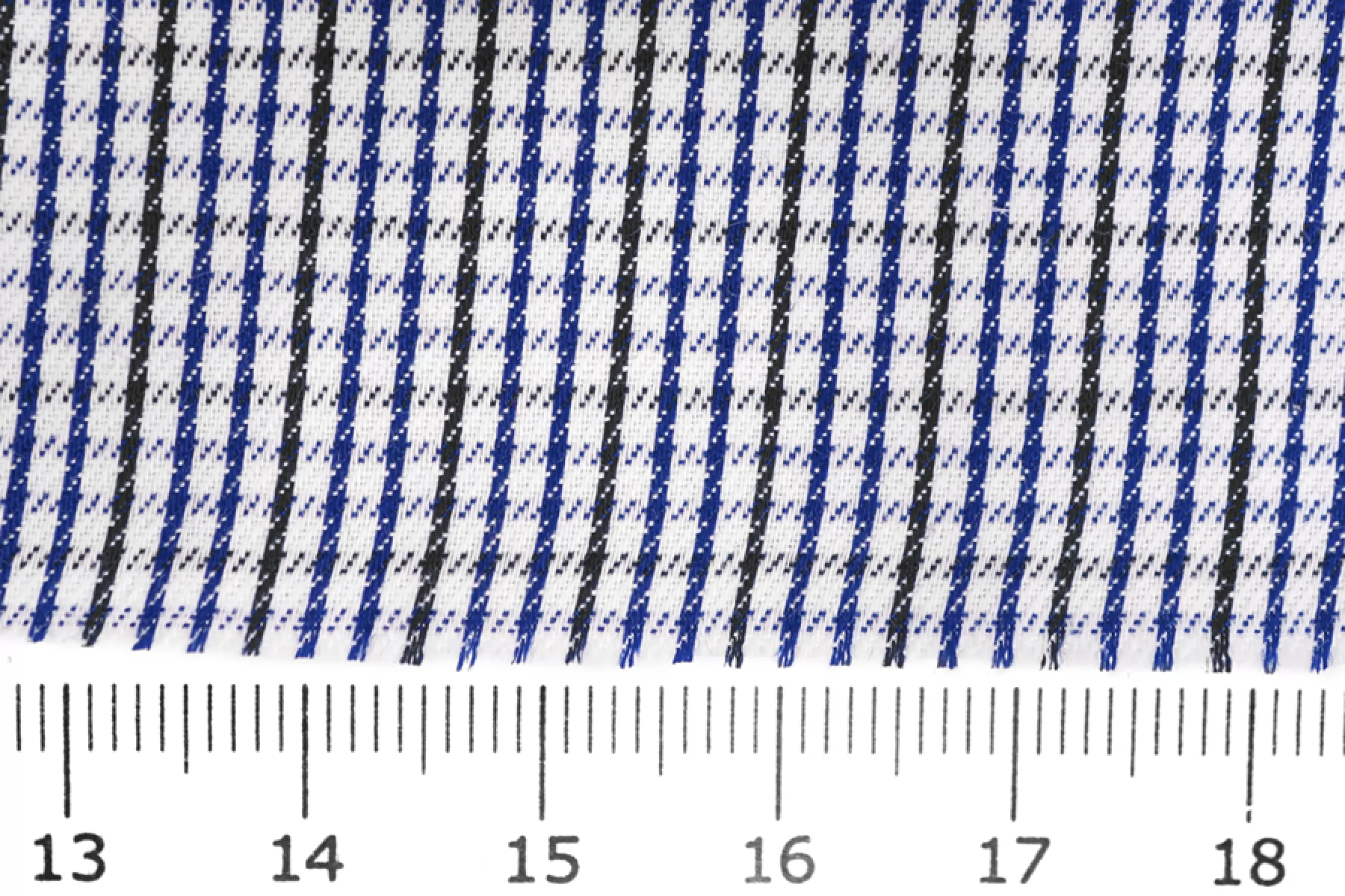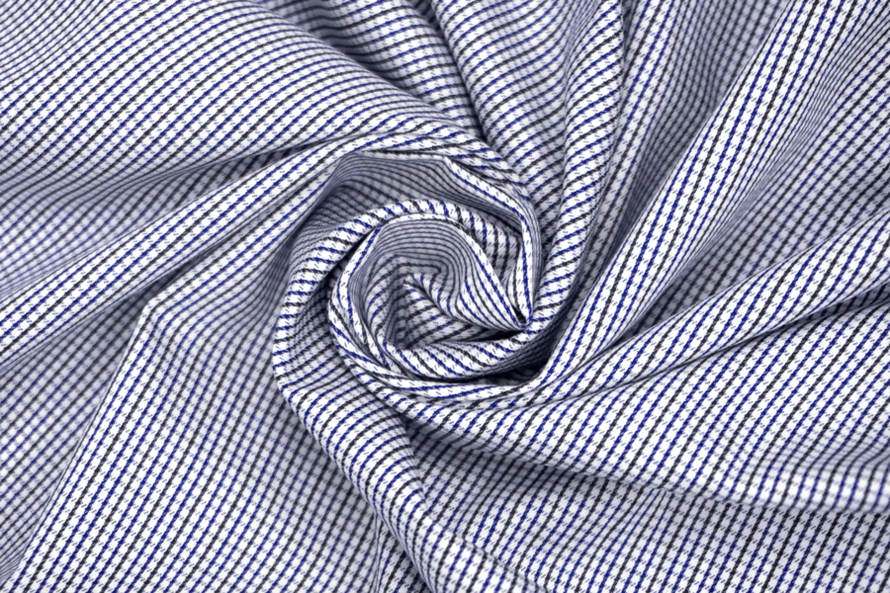 Рубашечный хлопок в клетку, от фабрики Cotonificio Albini, диагонального плетения, белого оттенка с вплетением нитей синего и черного оттенков, что создает рисунок мелкой клетки. Тактильно мягкий и приятный, гладкий. Хорошо драпируется и немного держит форму. Красиво смотрится в складках. Не просвечивает, но если смотреть прямо на просвет, слегка заметен силуэт. Не тянется, но хорошо пружинит за счет плетения. Несильно сминается. Классно подойдет на рубашки, юбки, платья и не только. При необходимости используйте подкладочный материал.