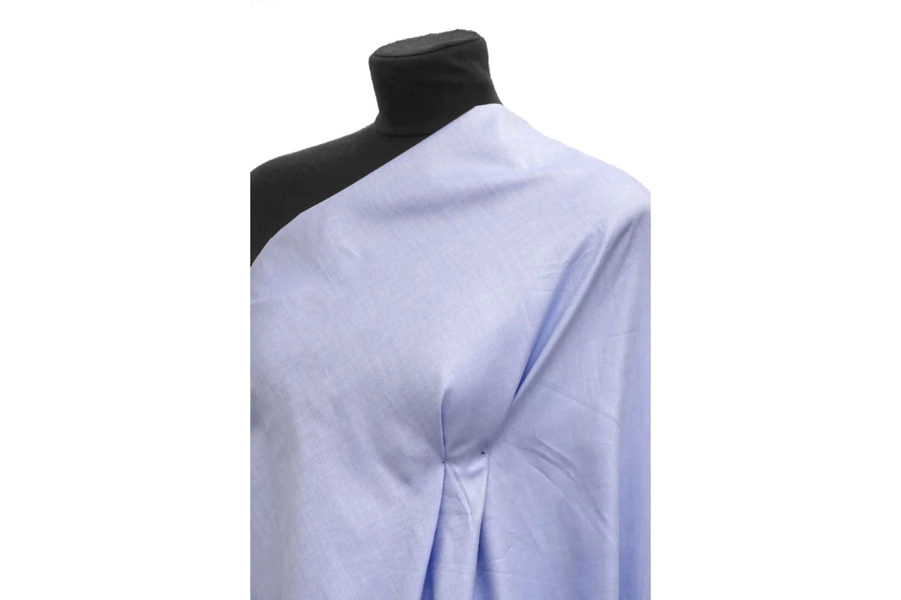 Итальянский рубашечный хлопок голубого цвета. Материал тактильно очень приятный и мягкий. С красивым лоском. Хорошо драпируется и красиво смотрится в складке. Форму держит неплохо. Не тянется. Немного просвечивает. Отличный вариант для пошива платья, рубашки, сарафана и юбки. Для однослойных изделий при необходимости используйте подкладочный материал.