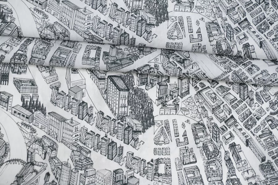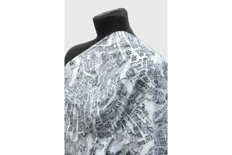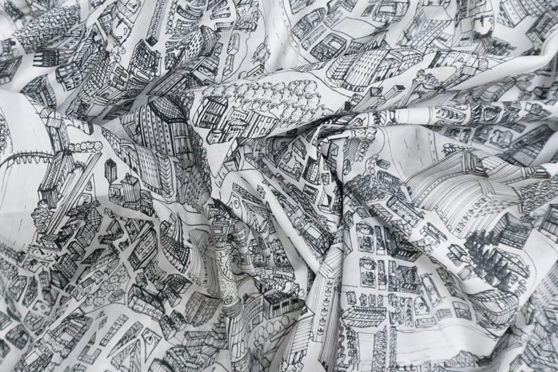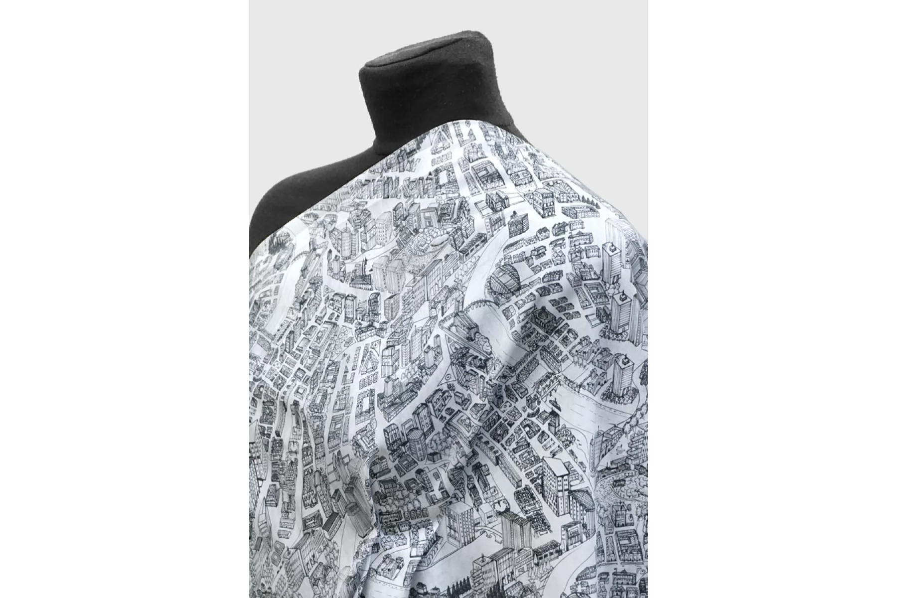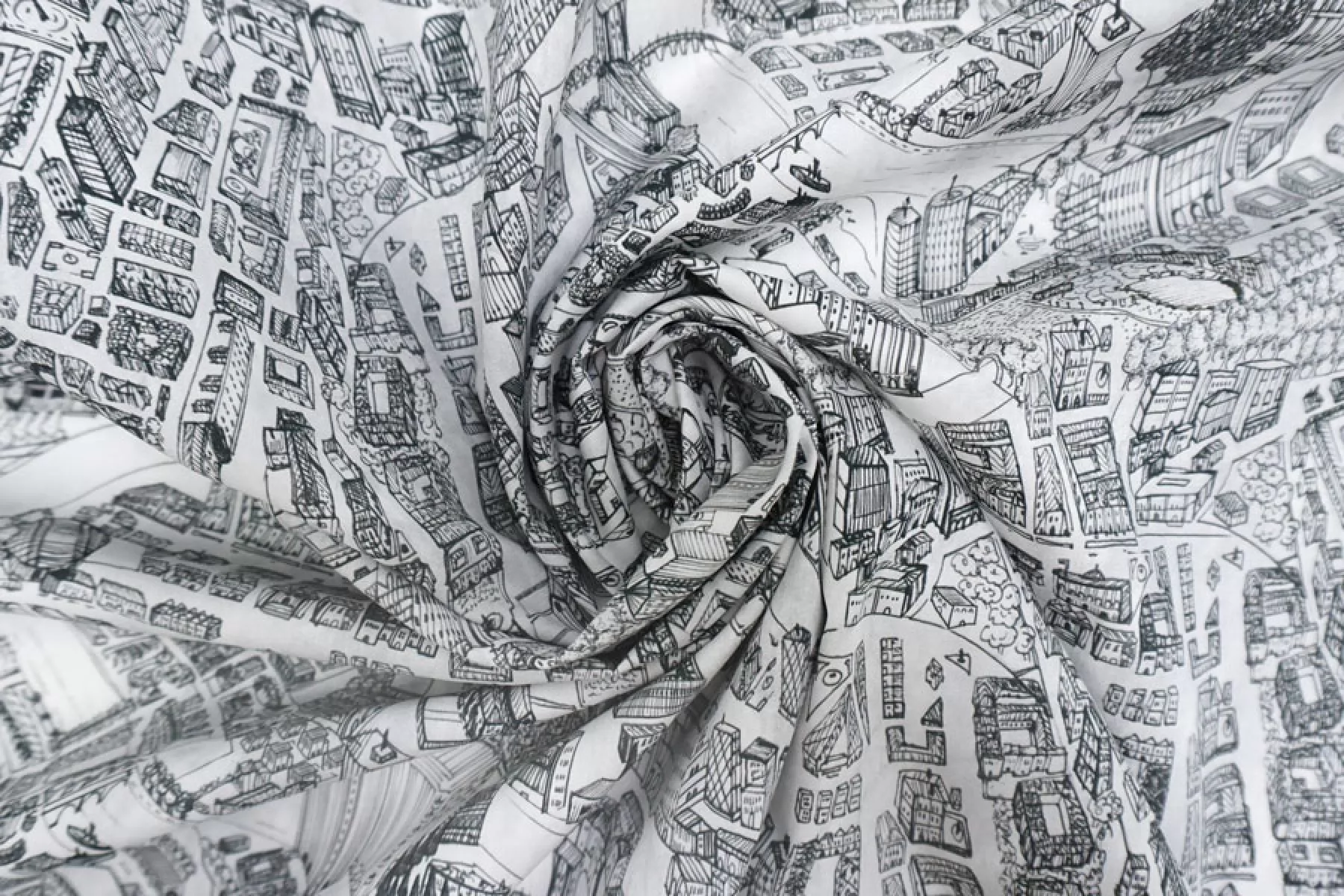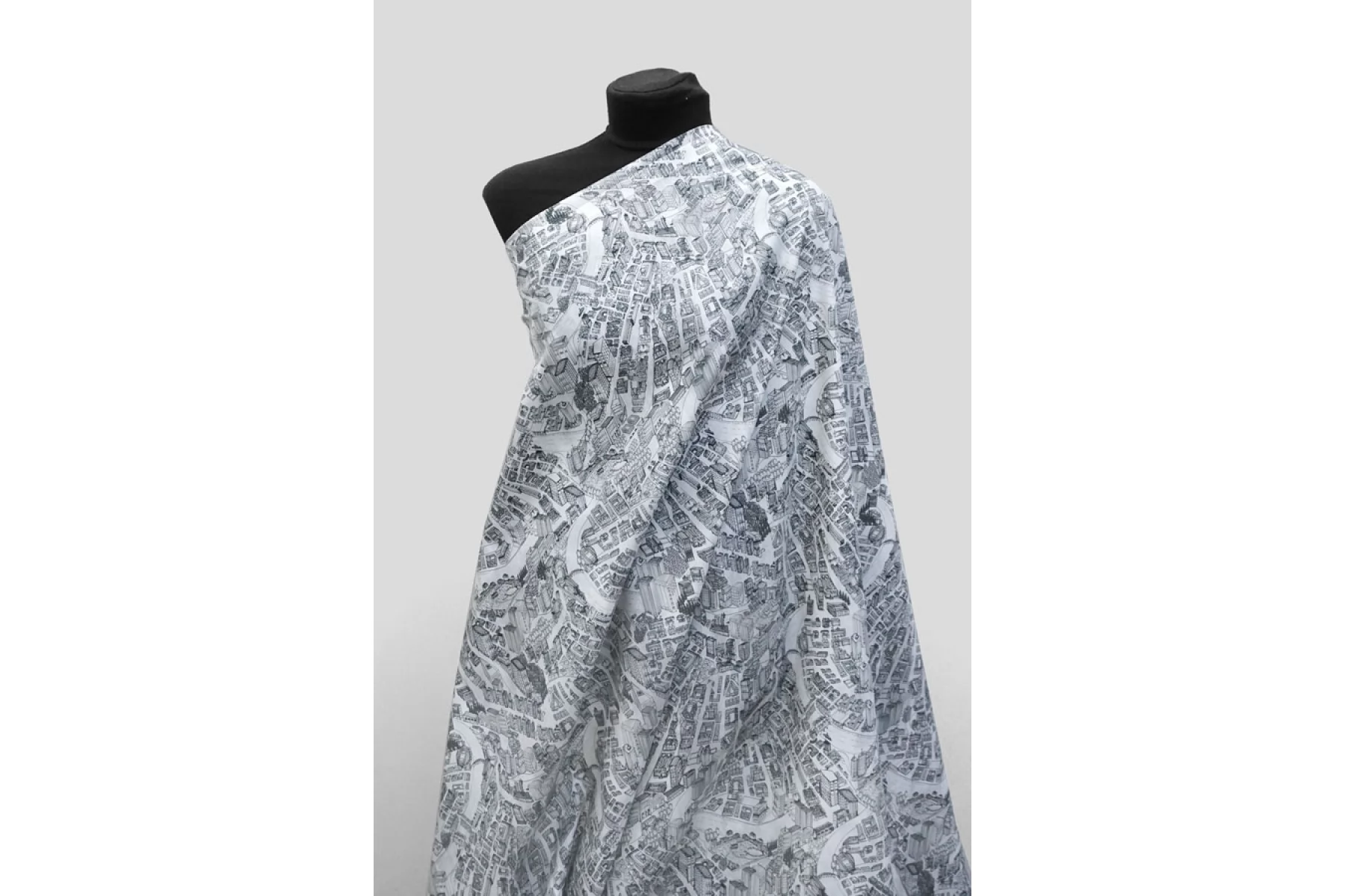 ВНИМАНИЕ!! Есть дефект принта, как серые грязные пятна см. фото Великолепный рубашечный хлопок от бренда Max Mara с черно-белым принтом напоминающим карту города. Материал мягкий, легкий, приятный наощупь. Немного мнется. Слегка растягивается. Хорошо держит форму. Прекрасный вариант на рубашки, юбки, платья. Материал дает усадку.