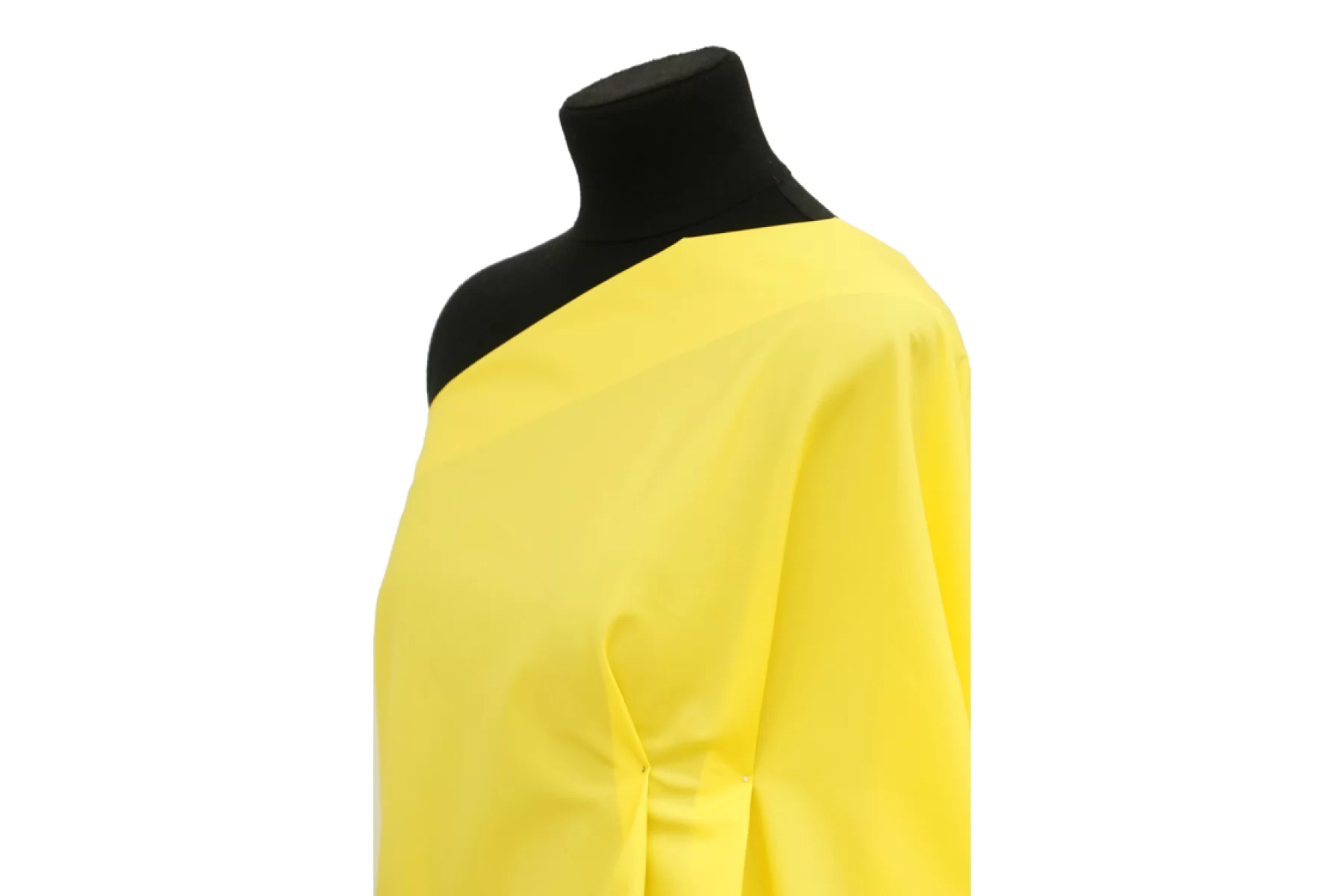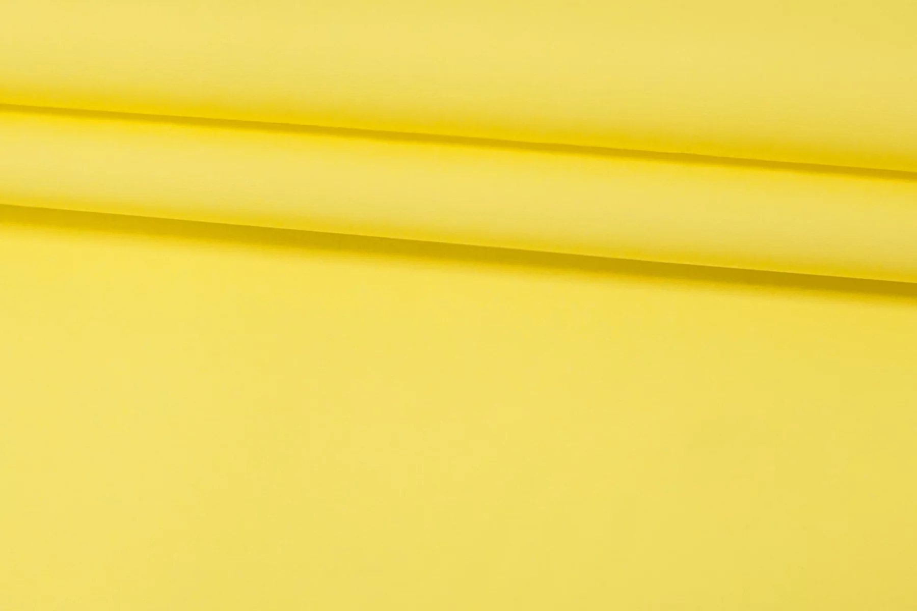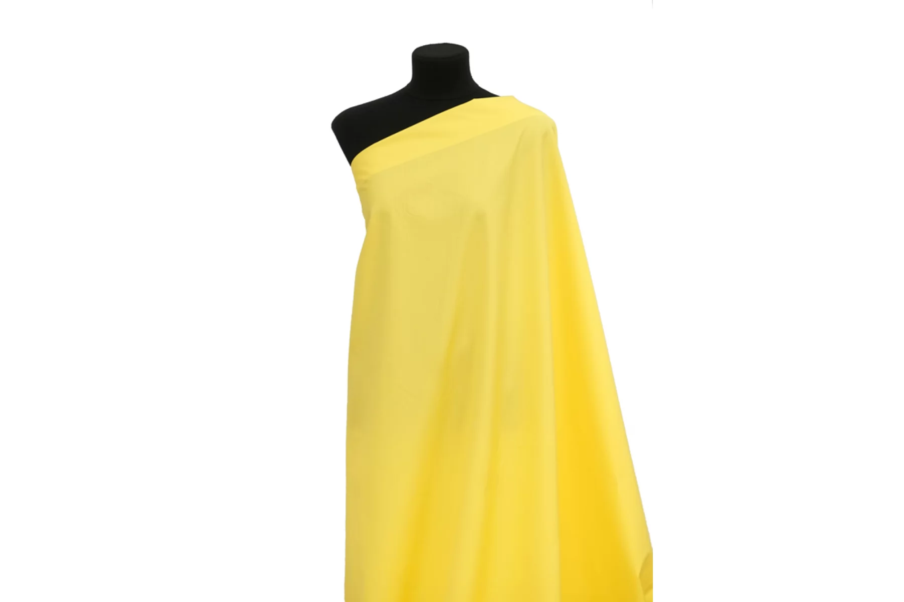 Рубашечный мерсеризированный хлопок ярко-желтого цвета. Материал тактильно приятный, гладкий и похрустывающий. Обладает красивым нежным лоском. Достаточно плотный по плетению, не просвечивает. Отлично драпируется и красиво смотрится в складке. Хорошо держит форму. Не тянется. Отличный вариант для пошива платья, рубашки, сарафана и юбки.