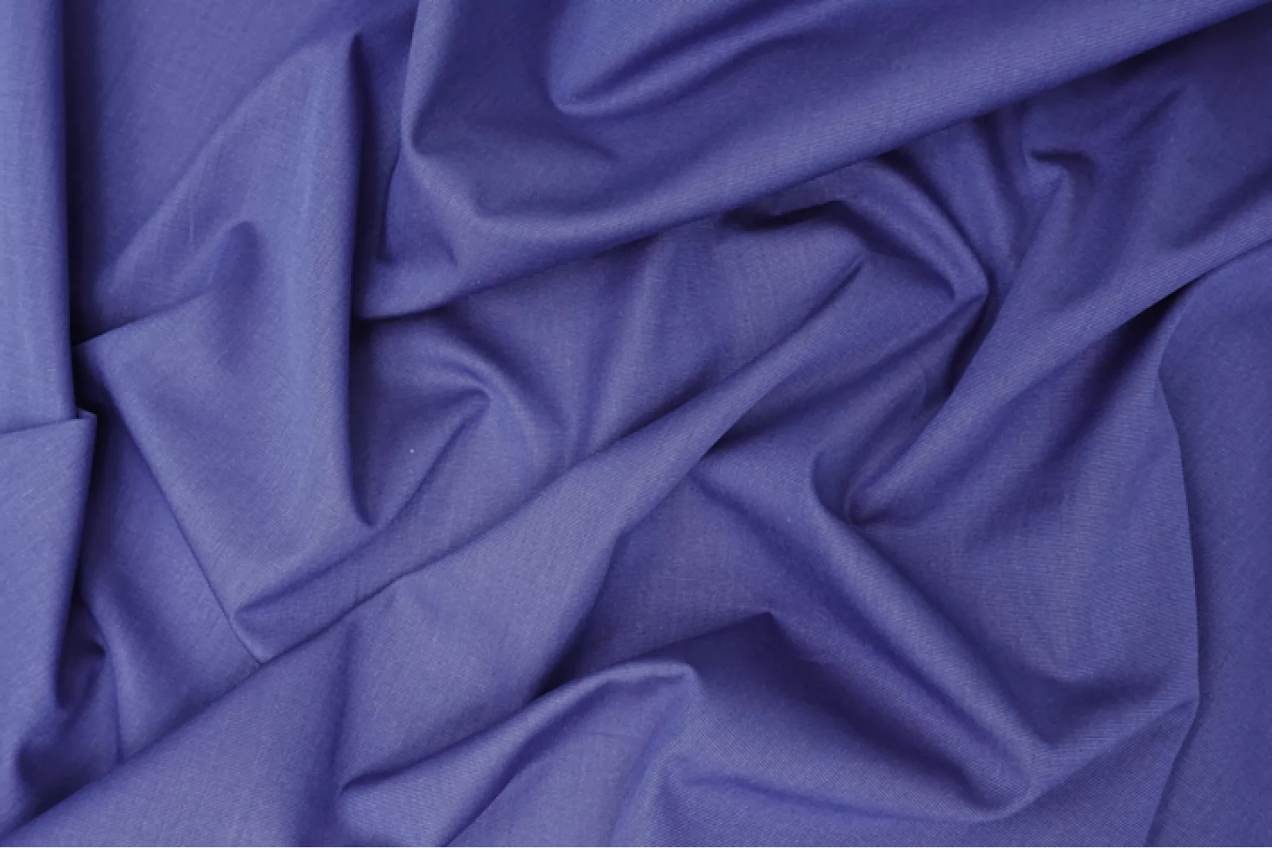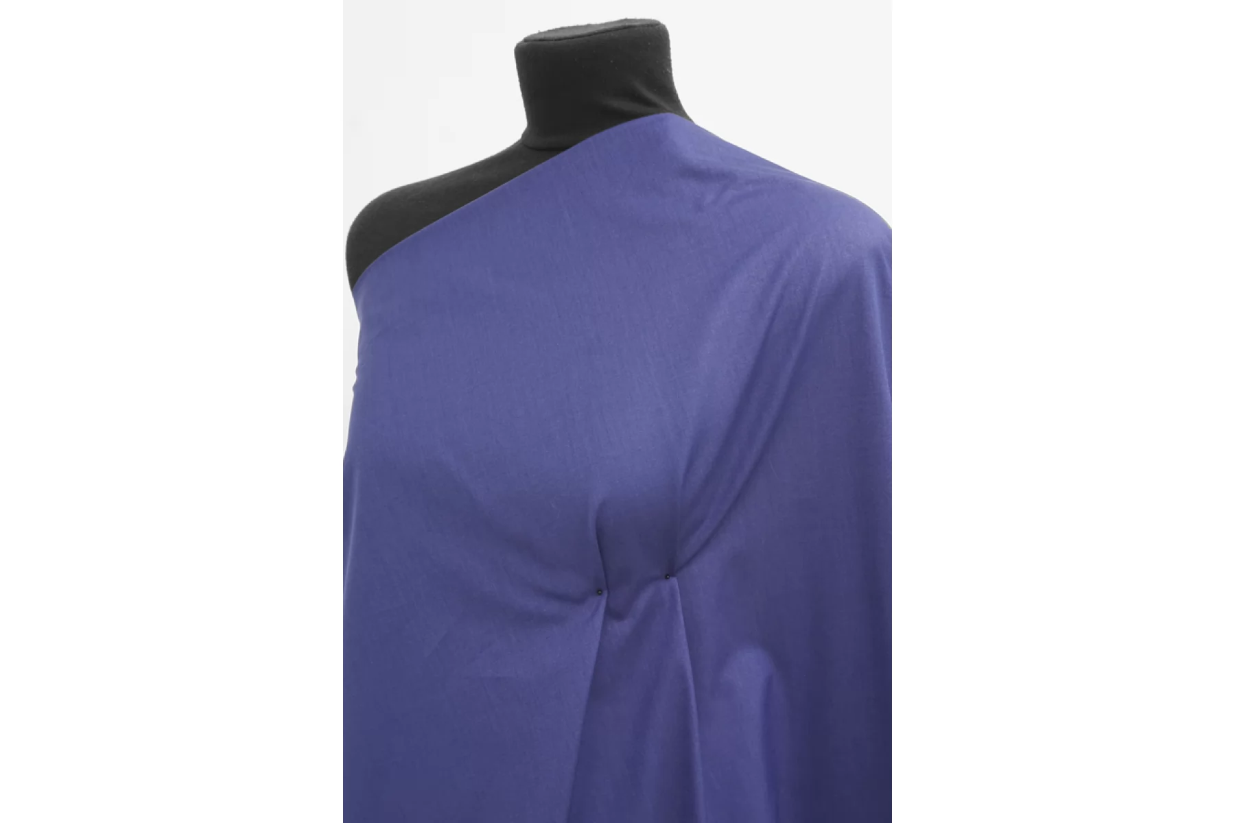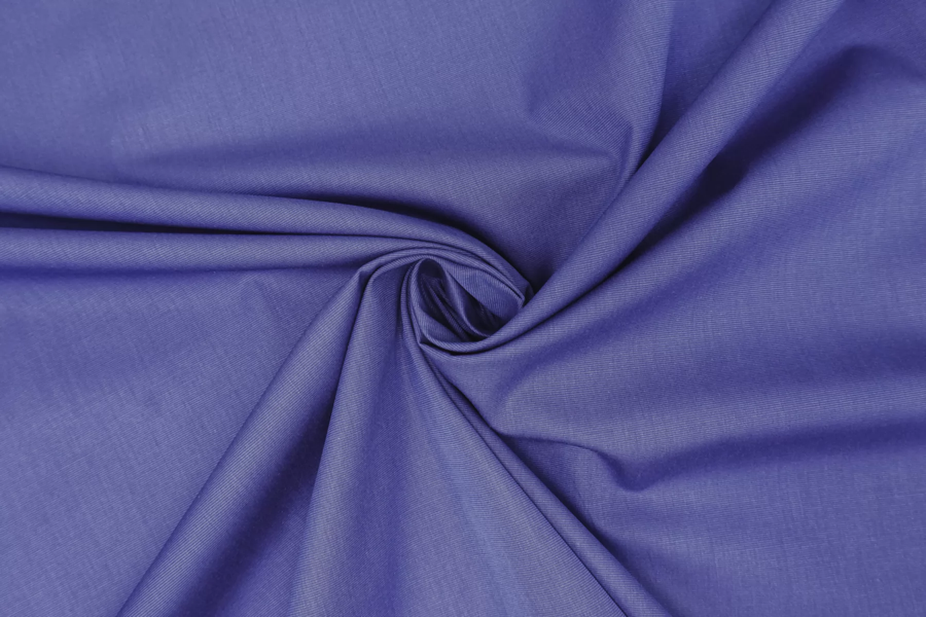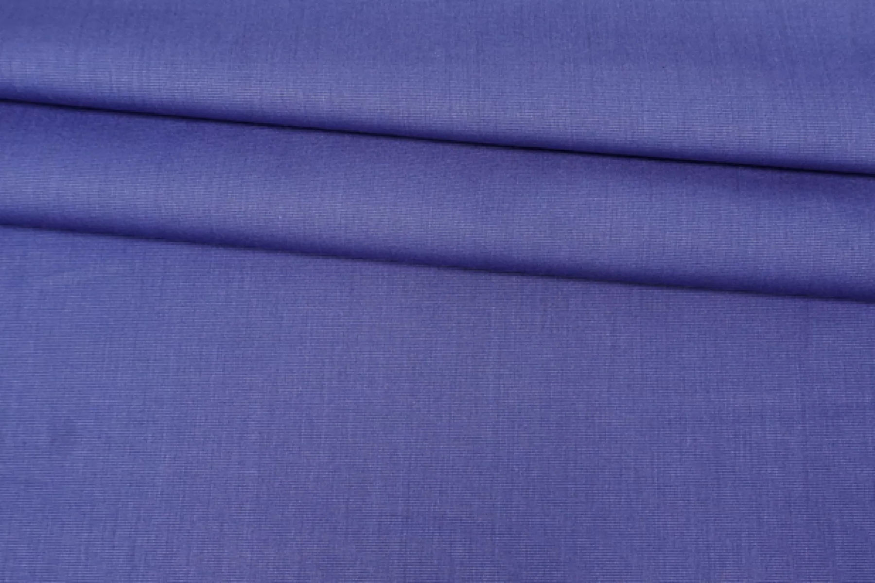 Рубашечный хлопок очень мелкого репсового плетения нитей темно-синего и сине-василькового оттенка, что создает горизонтальное чередование цвета. Также само полотно неравномерное по цвету и вдоль длины. Смотрится красиво. Тактильно приятный, мягкий. Достаточно плотненький, но при этом тонкий. Обладает нежным лоском. Не просвечивает. Отлично драпируется и красиво смотрится в складках. Немного держит форму. Не тянется. Мнется. Отлично подойдет для пошива платья, рубашки, сарафана или юбки.