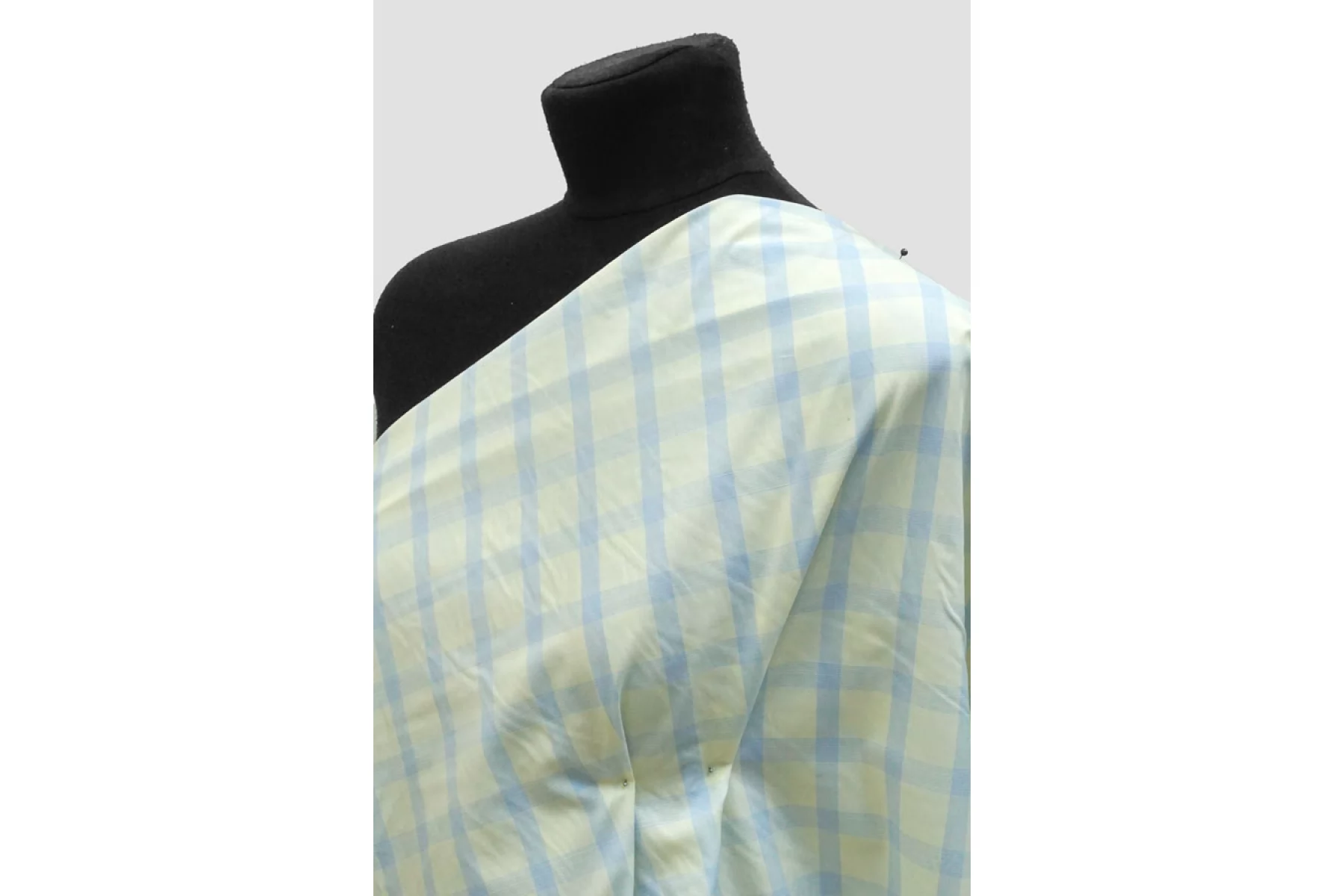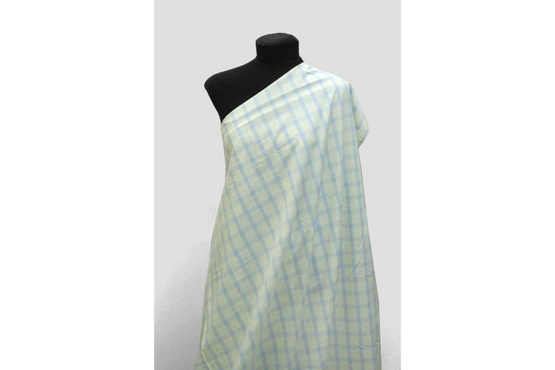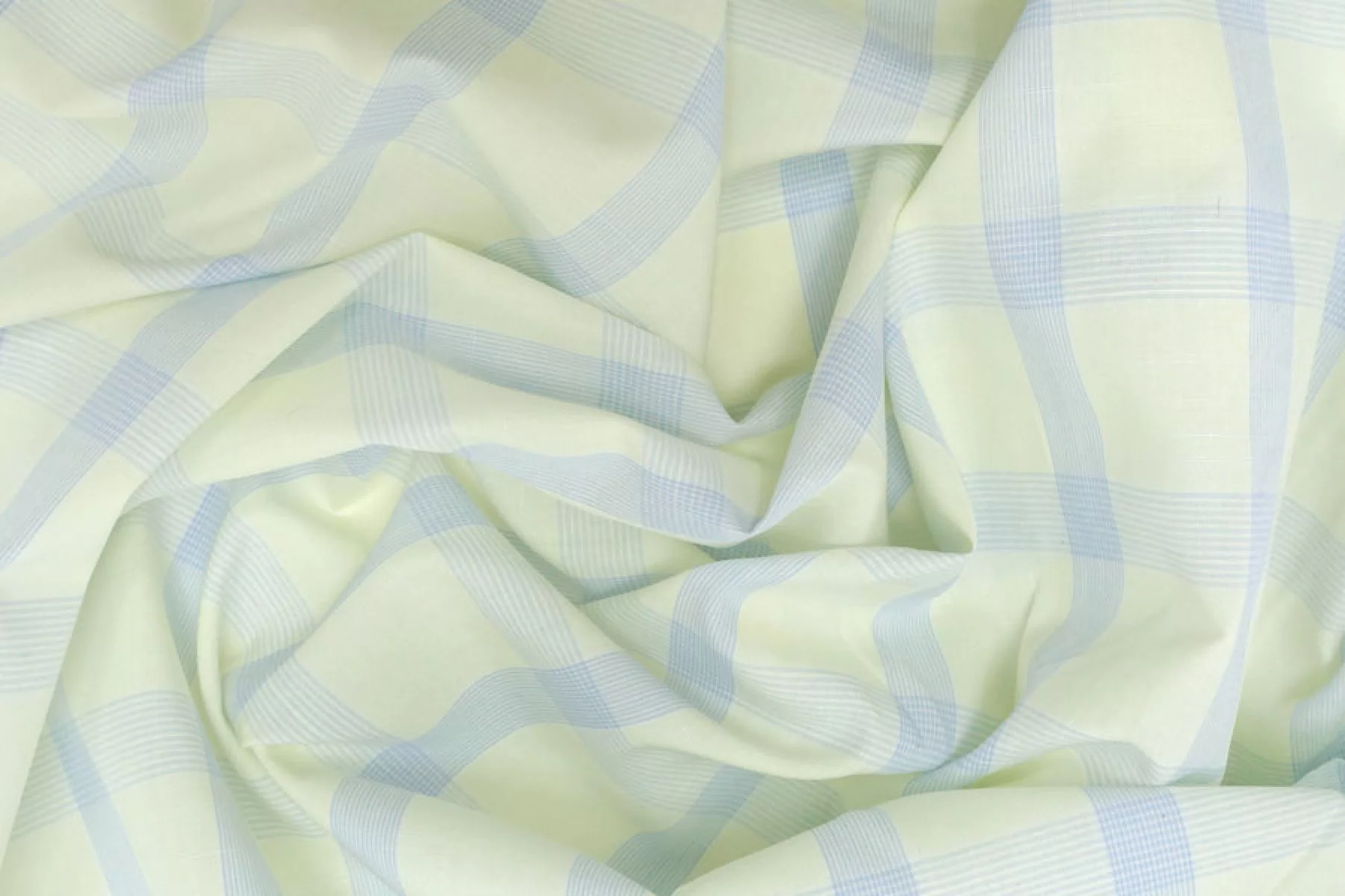 Тонкий рубашечный хлопок в среднего размера клетку бледно-желтого и светло-голубого цвета. Материал тактильно очень приятный, мягкий, гладкий и легкий. Просвечивает. Мнется. Хорошо держит форму и драпируется. Не тянется. Отлично подойдет на легкие летние рубашки, платья, сарафаны и юбки. При необходимости используйте подкладочный материал.
