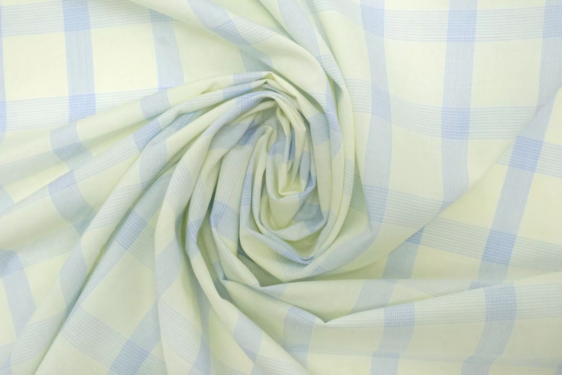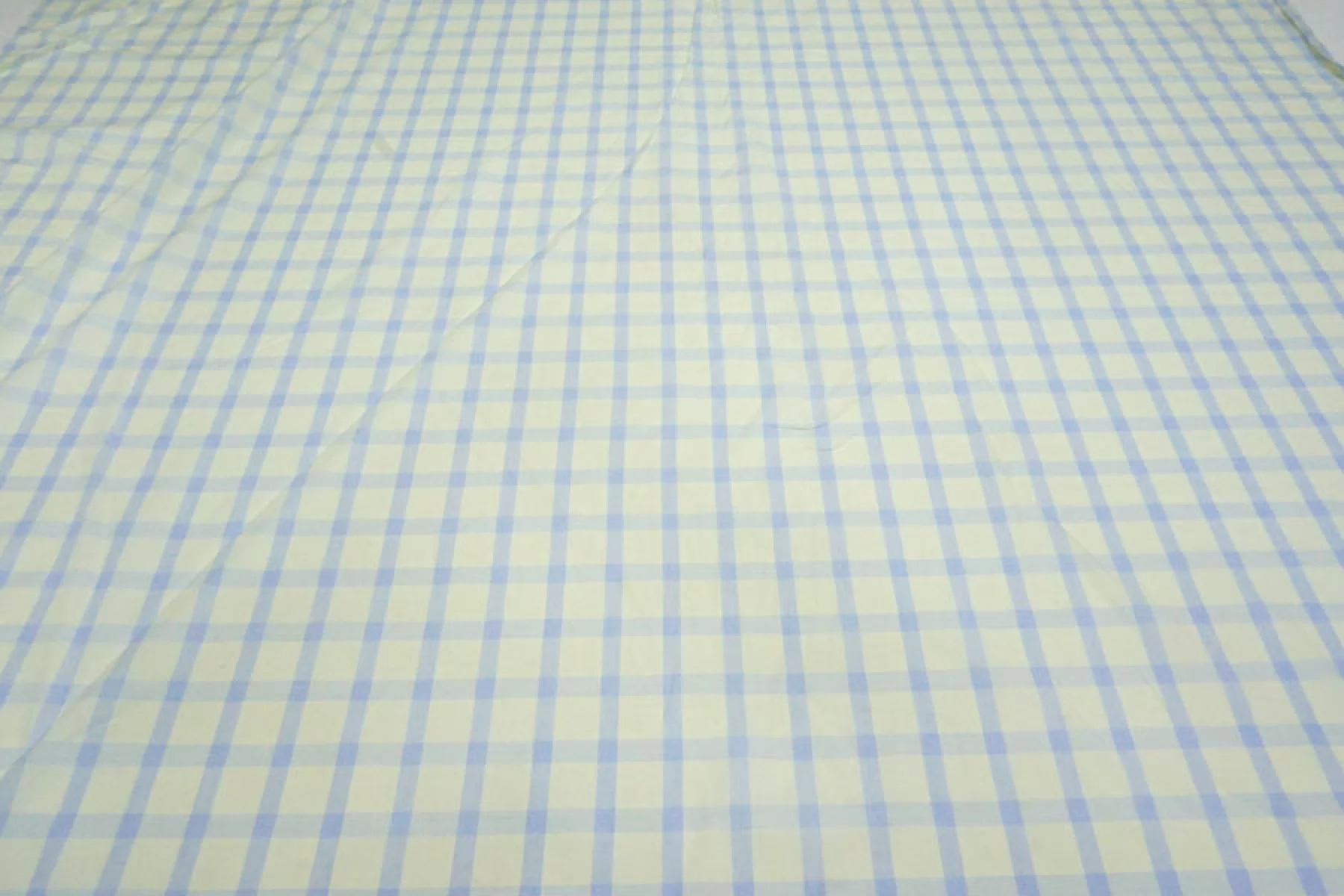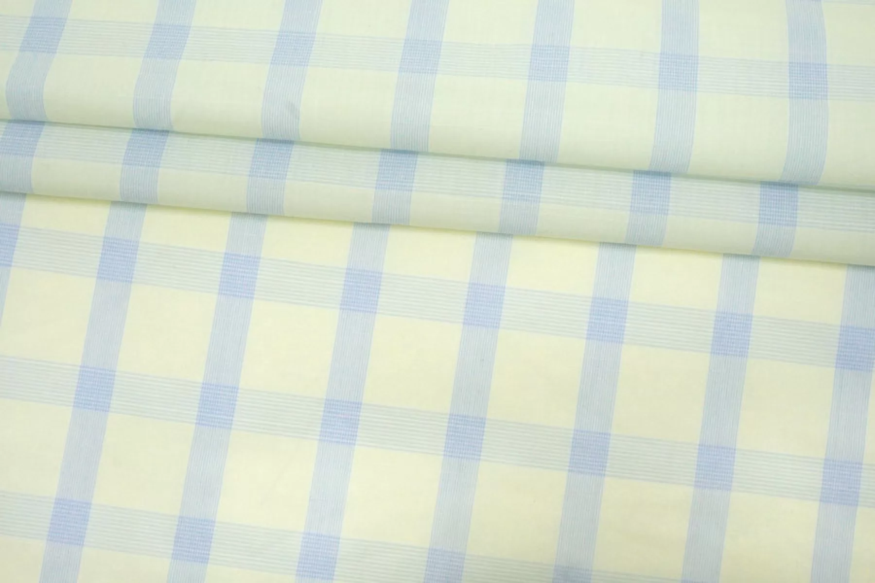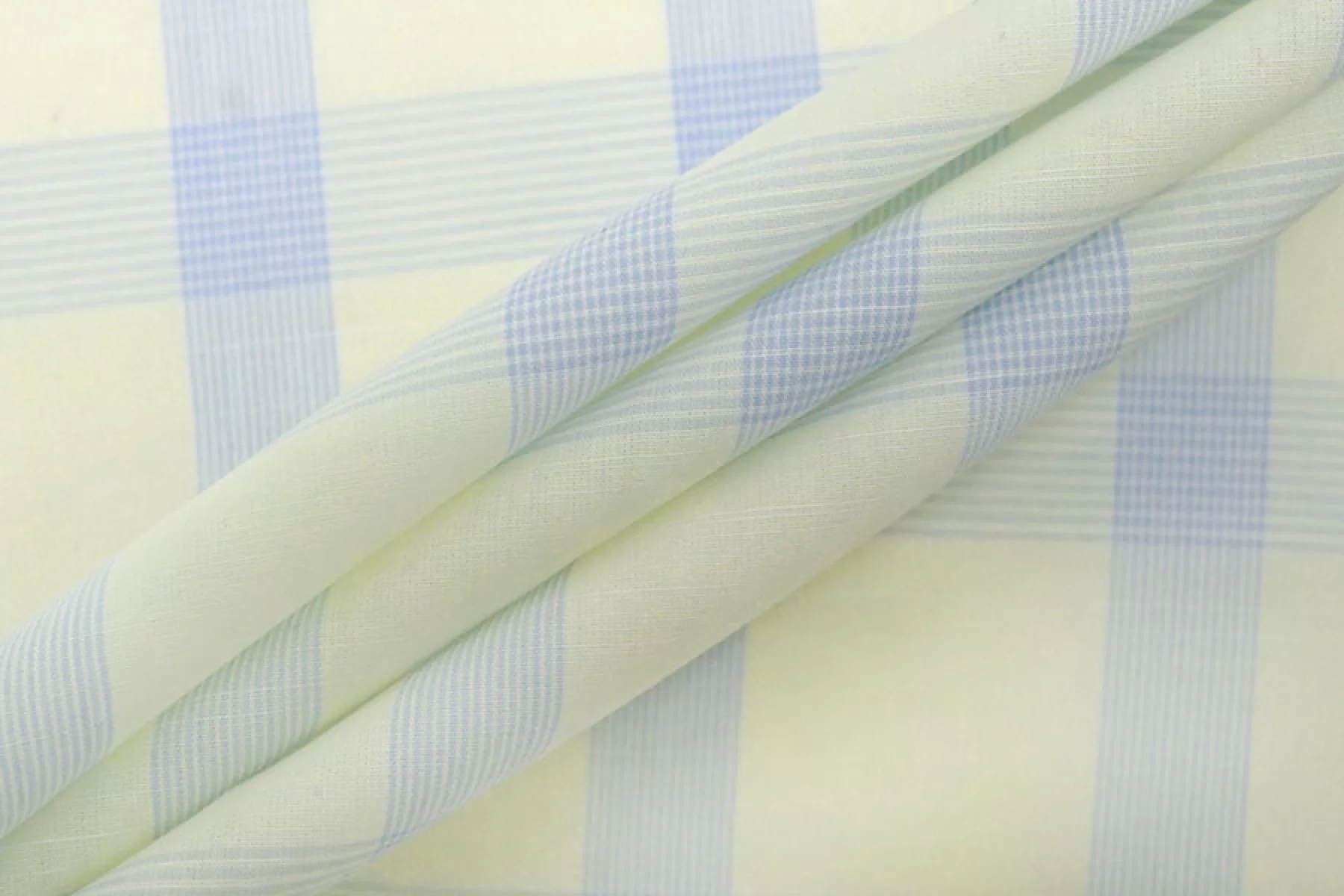 Тонкий рубашечный хлопок в среднего размера клетку бледно-желтого и светло-голубого цвета. Материал тактильно очень приятный, мягкий, гладкий и легкий. Просвечивает. Мнется. Хорошо держит форму и драпируется. Не тянется. Отлично подойдет на легкие летние рубашки, платья, сарафаны и юбки. При необходимости используйте подкладочный материал.