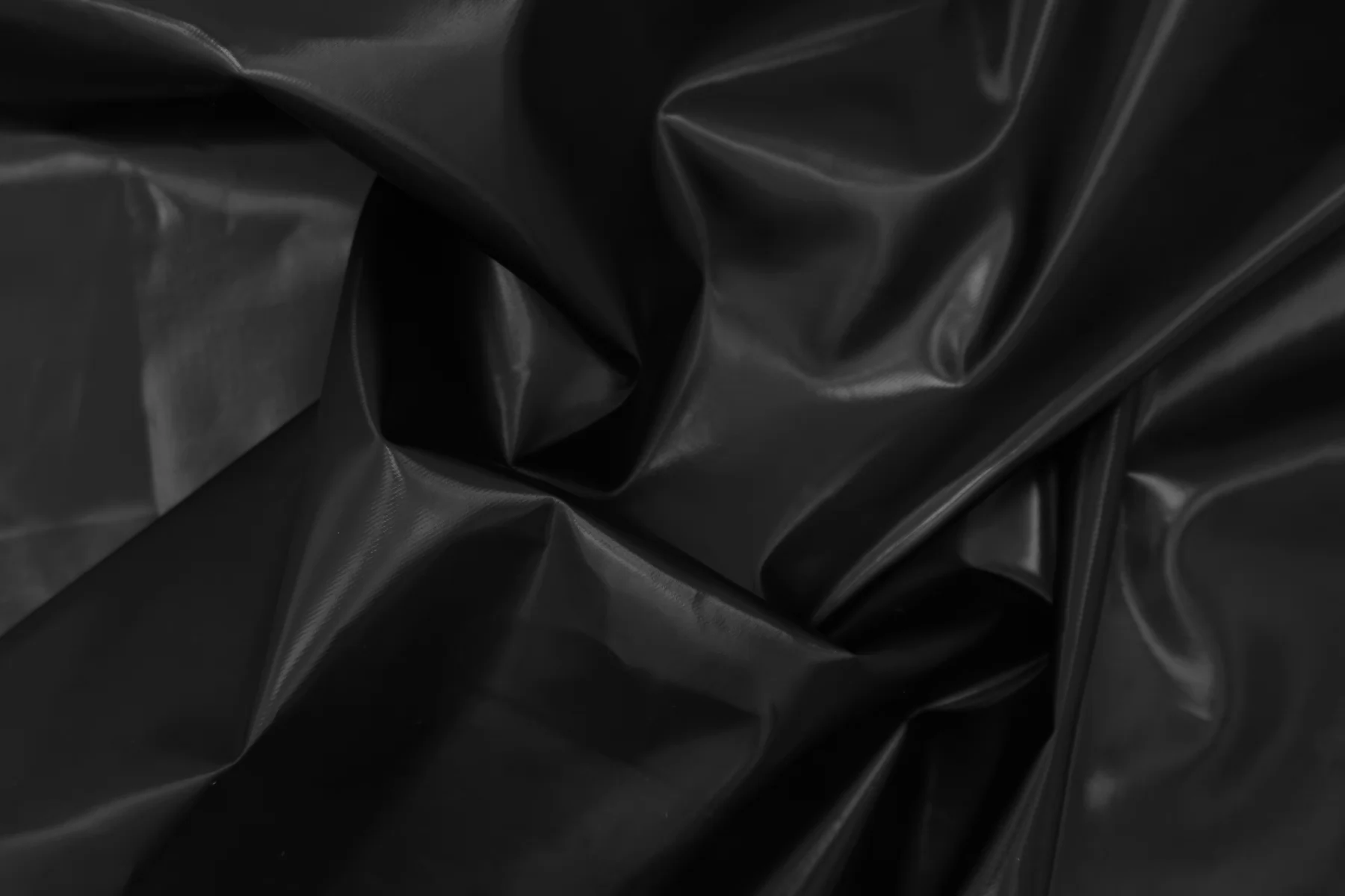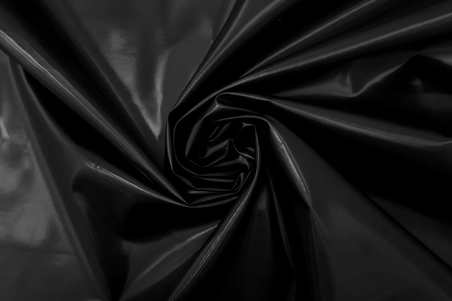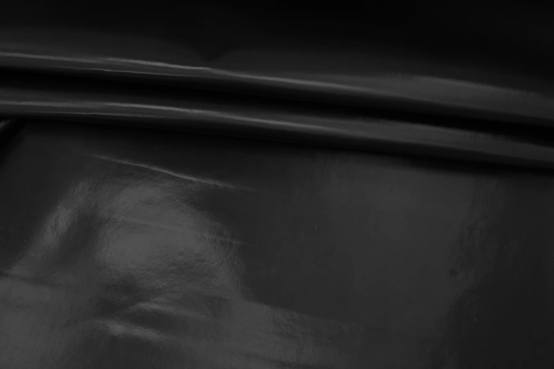 Интересный хлопок чёрного цвета с чёрным полиуретановым покрытием, визуально близким к лаке. Покрытие не промокает, не продувается. Не тянется, хорошо держит форму. Не мнется, не просвечивает. Шьем тренч, жакет, куртку, плащ.