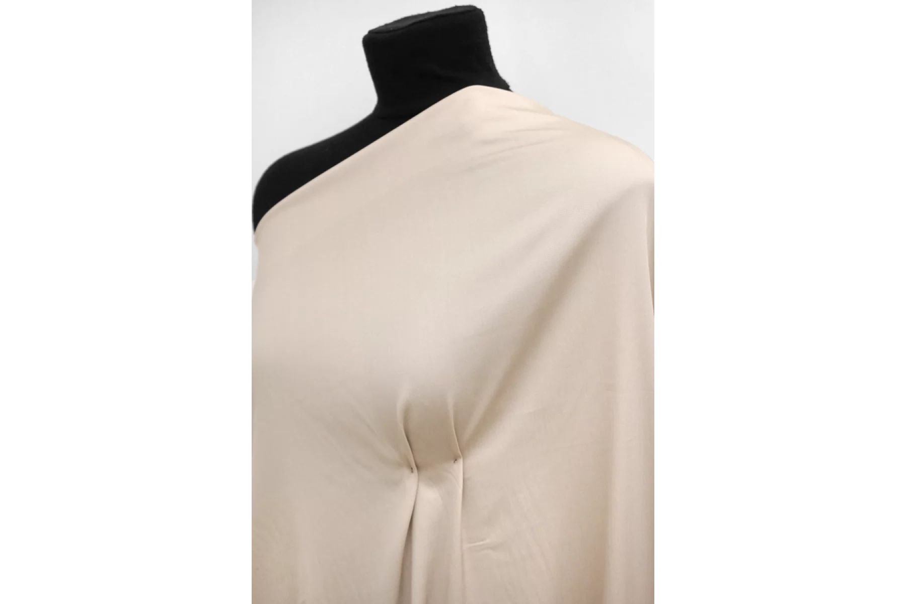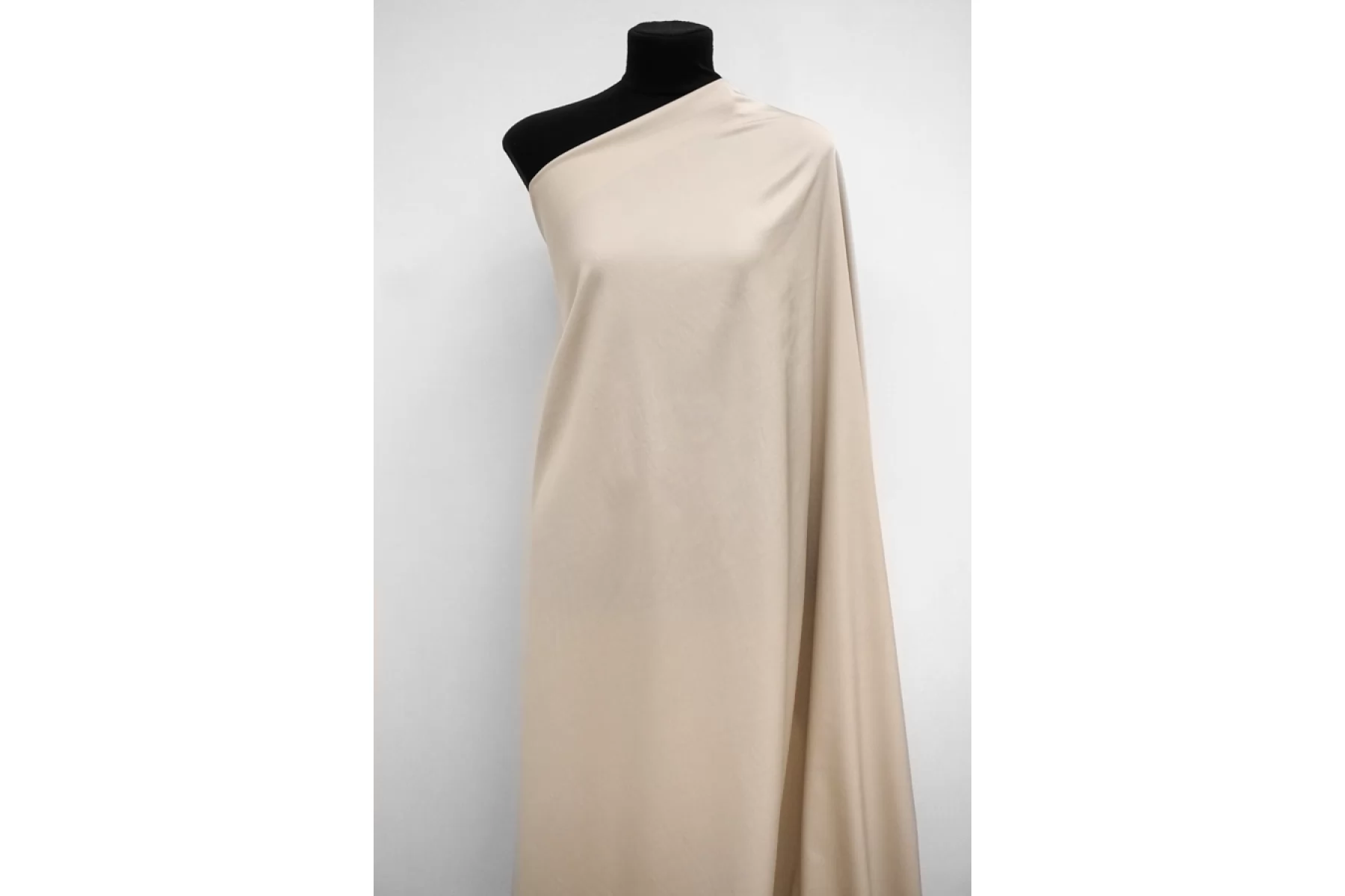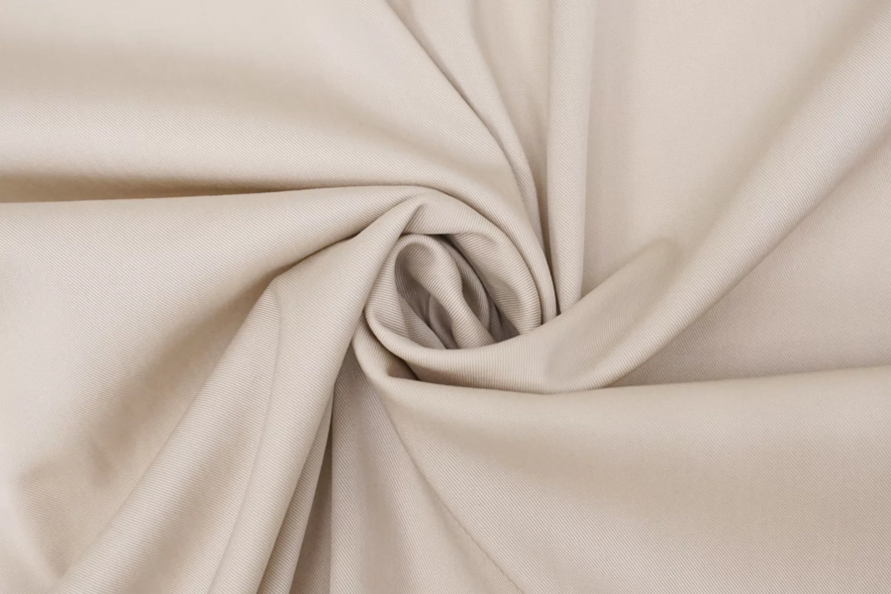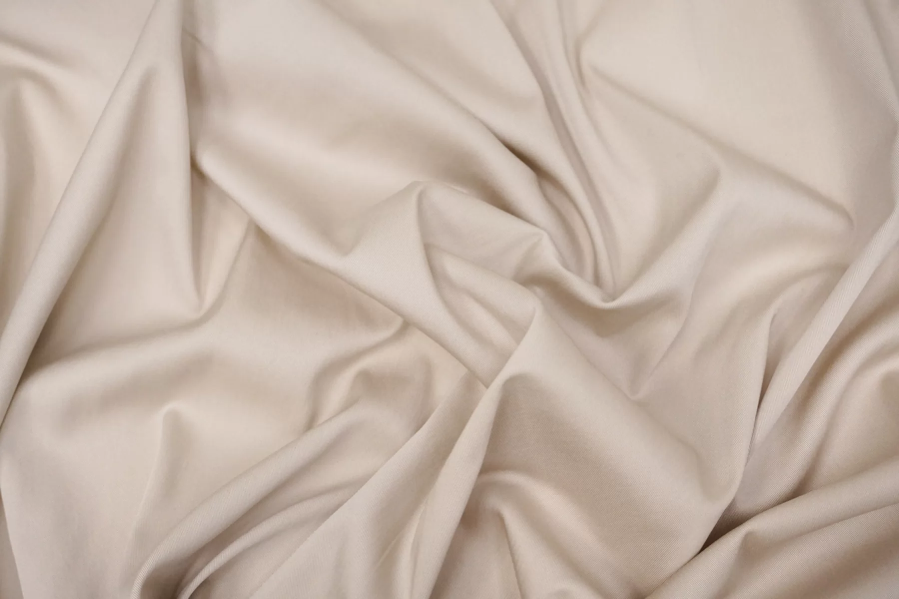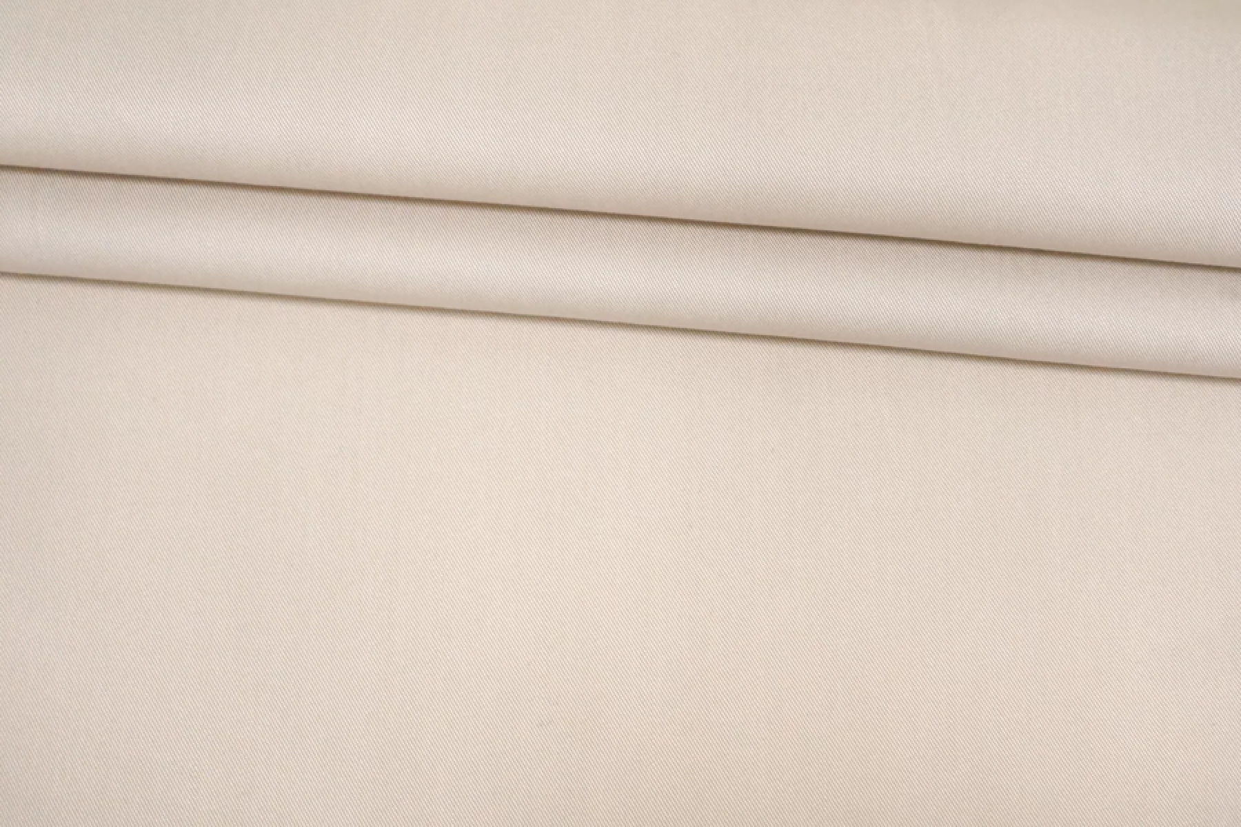 Костюмно-плательный хлопок с вискозой диагонального плетения приятного серо-кремового оттенка. Приятный, тонкий, гладкий. Обладает красивым лоском. Немного упруго тянется. Пластичный. Не просвечивает ( но совсем слегка может быть заметен силуэт) . Хорошо драпируется и держит форму. Сминается. Отличный вариант для пошива костюма, платья, жакета, юбки или брюк. Учитывайте усадку.