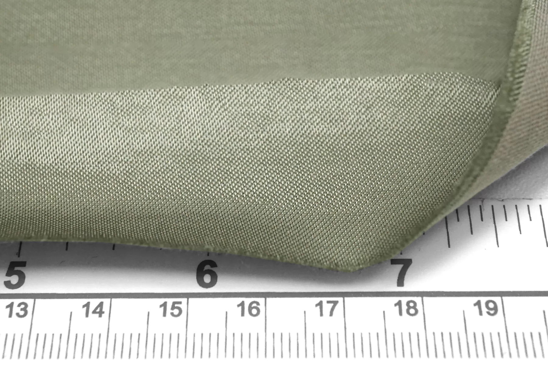 Хлопок с вискозой, костюмно-плательной плотности, красивый светлый оттенок шалфея. Поверхность с выраженным лоском. Мнется, не тянется, не просвечивает. Умеренно держит форму, пластичный. Вариант на платья, костюмы, жакеты, юбки. Обязательно учитывайте возможную усадку 5-10%