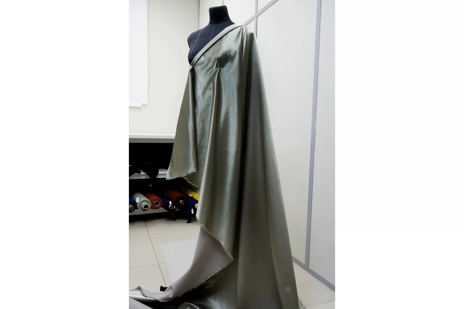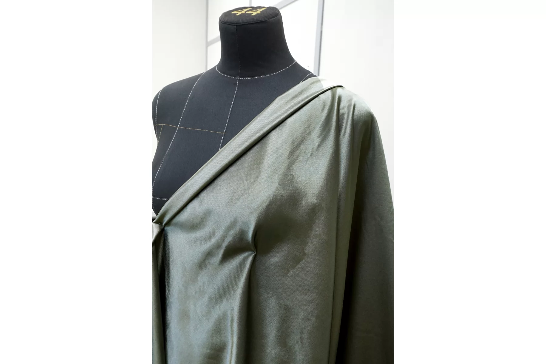 Атлас хлопковый с вискозой костюмно-плательный Зелёный хаки TRC H10/9 E70 12122515