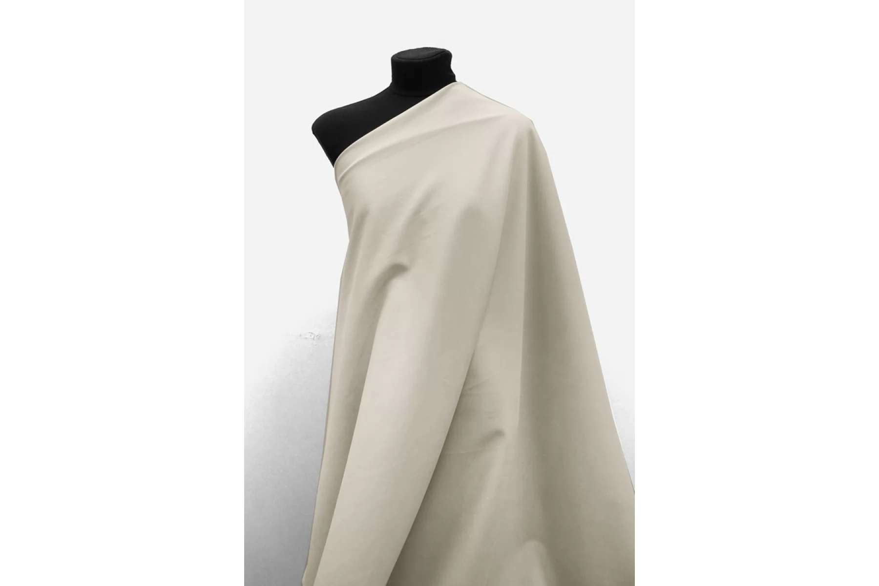 Прекрасный костюмный хлопок с вискозой от бренда Max Mara, в стильном светло-бежевом оттенке. Тактильно слегка шероховатый но приятный. Хорошо тянется, не просвечивает. Мнется слабо. Пластичный, но при этом держит форму, с упругой пластикой. Подойдет для пошива летних костюмов с брюками или шортами, юбок, формодержащих платьев.