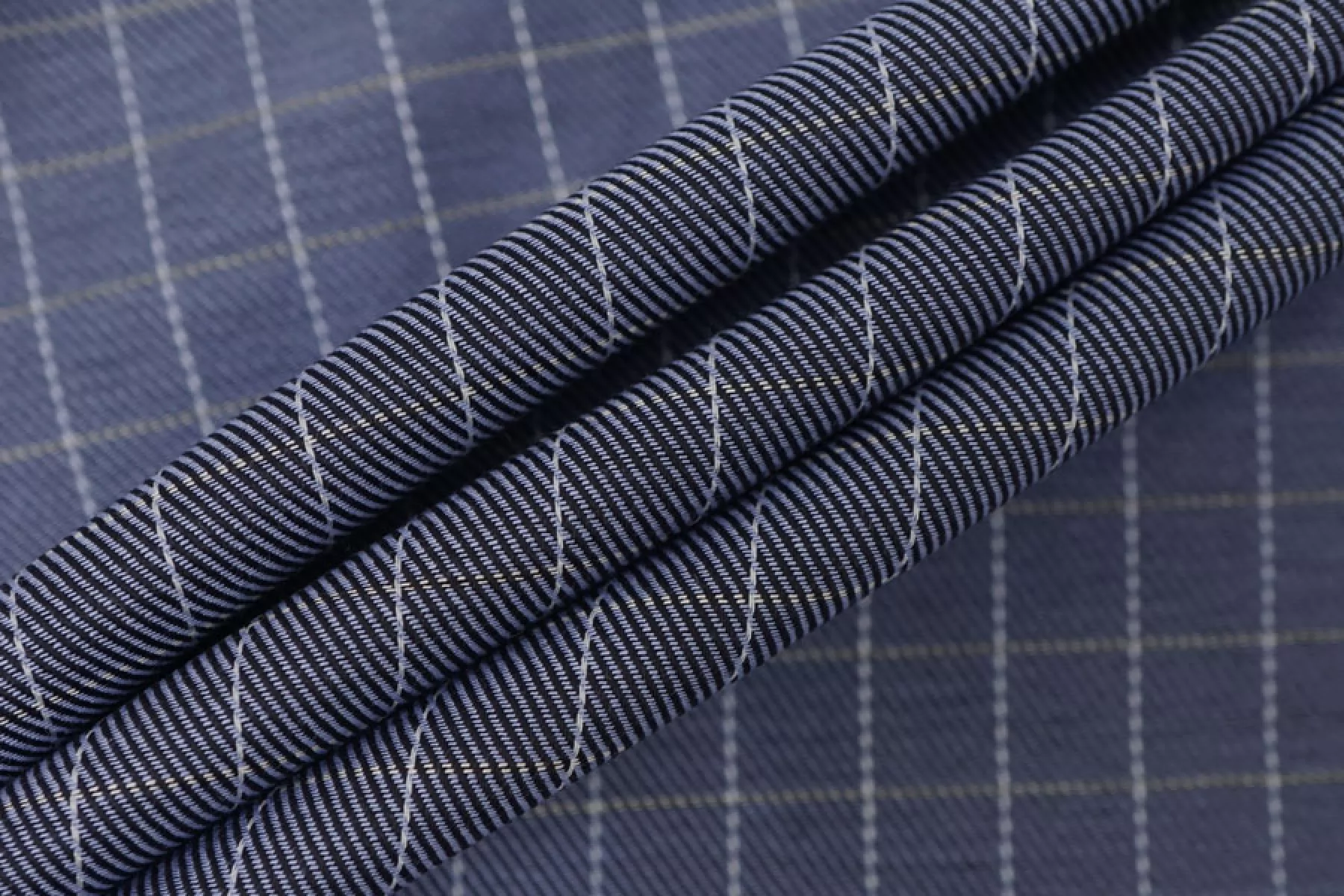 Хлопок с вискозой рубашечно-плательный в клетку Темно-синий BNC H6 B70 11022505