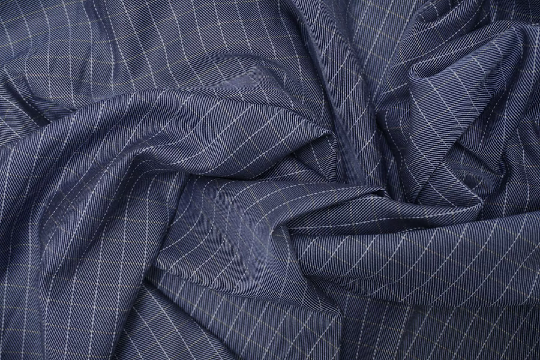 Прекрасный итальянский хлопок с вискозой, в клетку из нитей темно-синего, белого, голубого и светло-бежевого цвета. Плетение диагональное. Материал гладкий, мягкий, приятный тактильно. Мнется. Совсем немного просвечивает силуэт если смотреть насквозь в один слой. Не тянется. Пластичный, совсем немного держит форму. Прекрасный вариант на рубашки, юбки, платья и не только. Материал дает усадку.