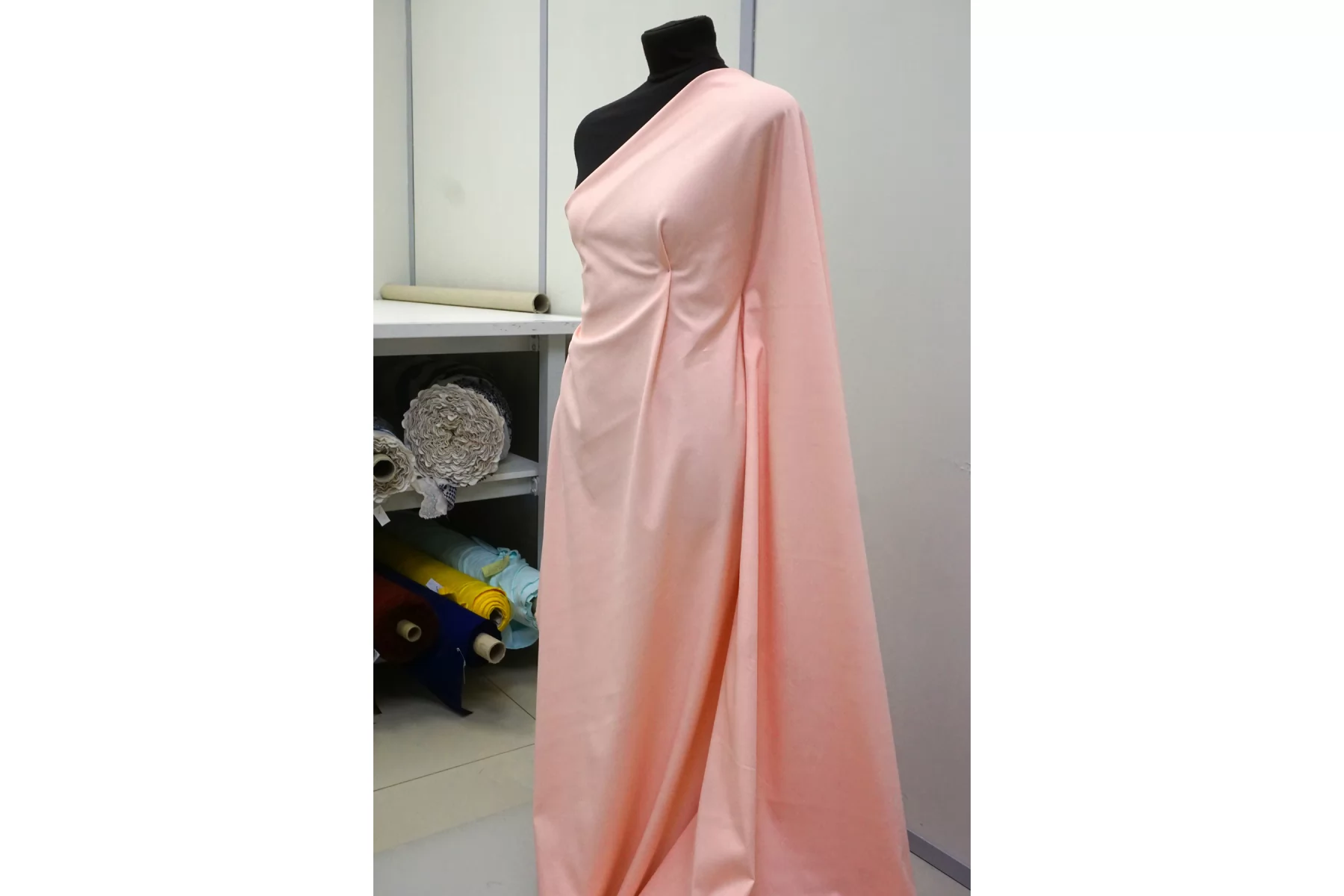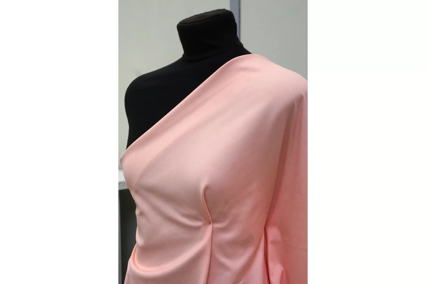 Классный костюмно-плательный хлопок с добавкой вискозы, сатиновый, в нежном, не ярком розовом цвете. Поверхность бархатистая, с peach - эффектом. Тактильно приятный, мягкий, пластичный, гладкий. Обладает лёгким лоском. Достаточно плотненький, при этом тонкий. Не просвечивает. Сминается. Тянется. Умеренно держит форму, пластичный. Вариант на костюмы, платья, юбки, брюки.