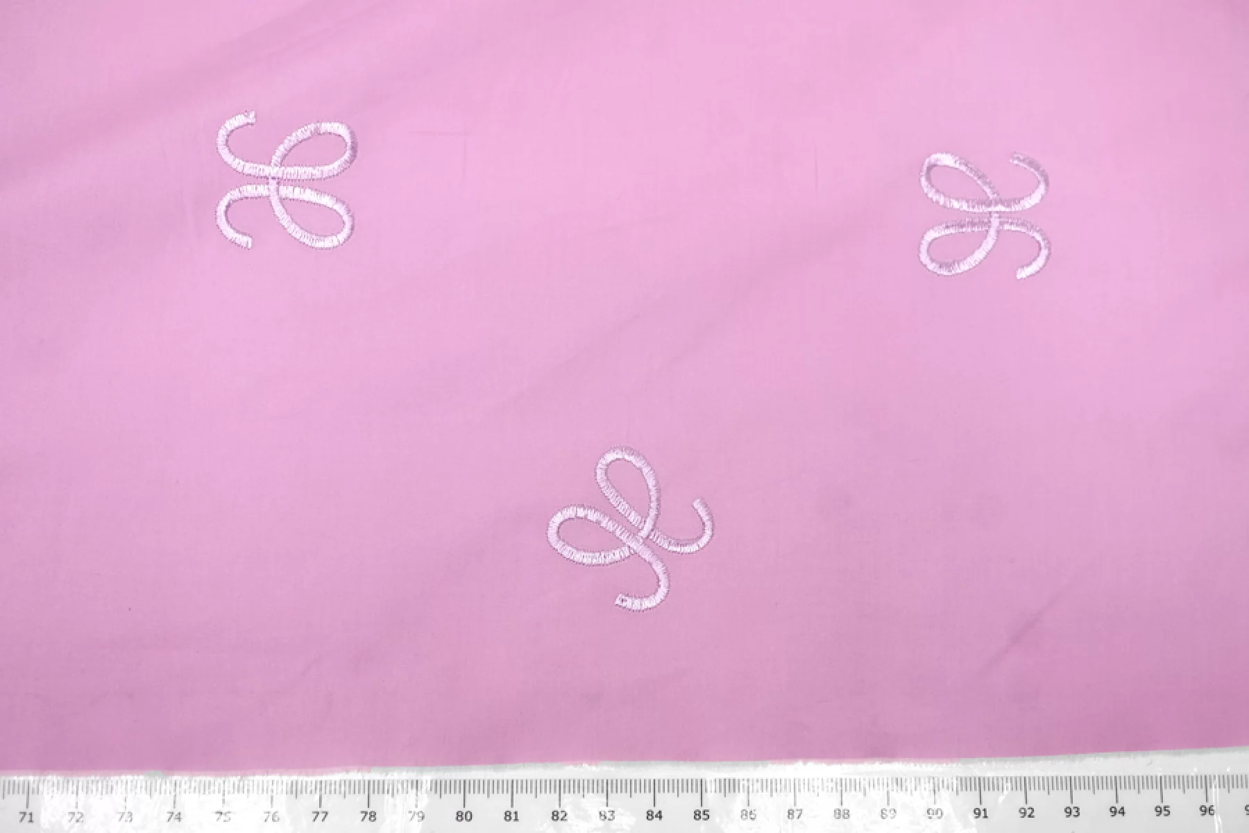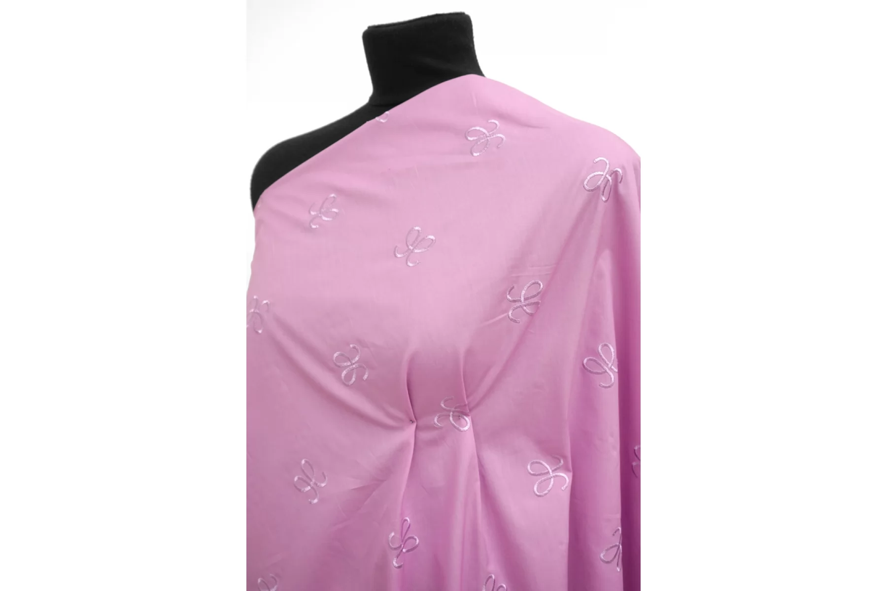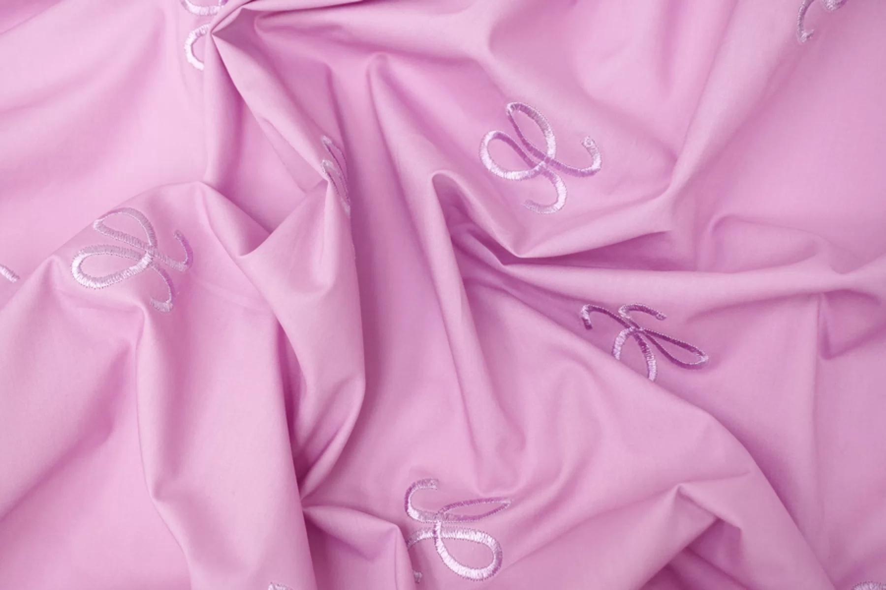 Очень красивый лиловый рубашечный хлопок с вышивкой из синтетической нити. Материал мягкий, приятный, плотный по плетению, слегка светит. Не тянется. Мнется, как хлопок. Довольно пластичный. Неплохо держит форму. Красивый вариант для пошива летнего сарафана, юбки, блузки, рубашки и платья. При необходимости используйте подкладочный материал.