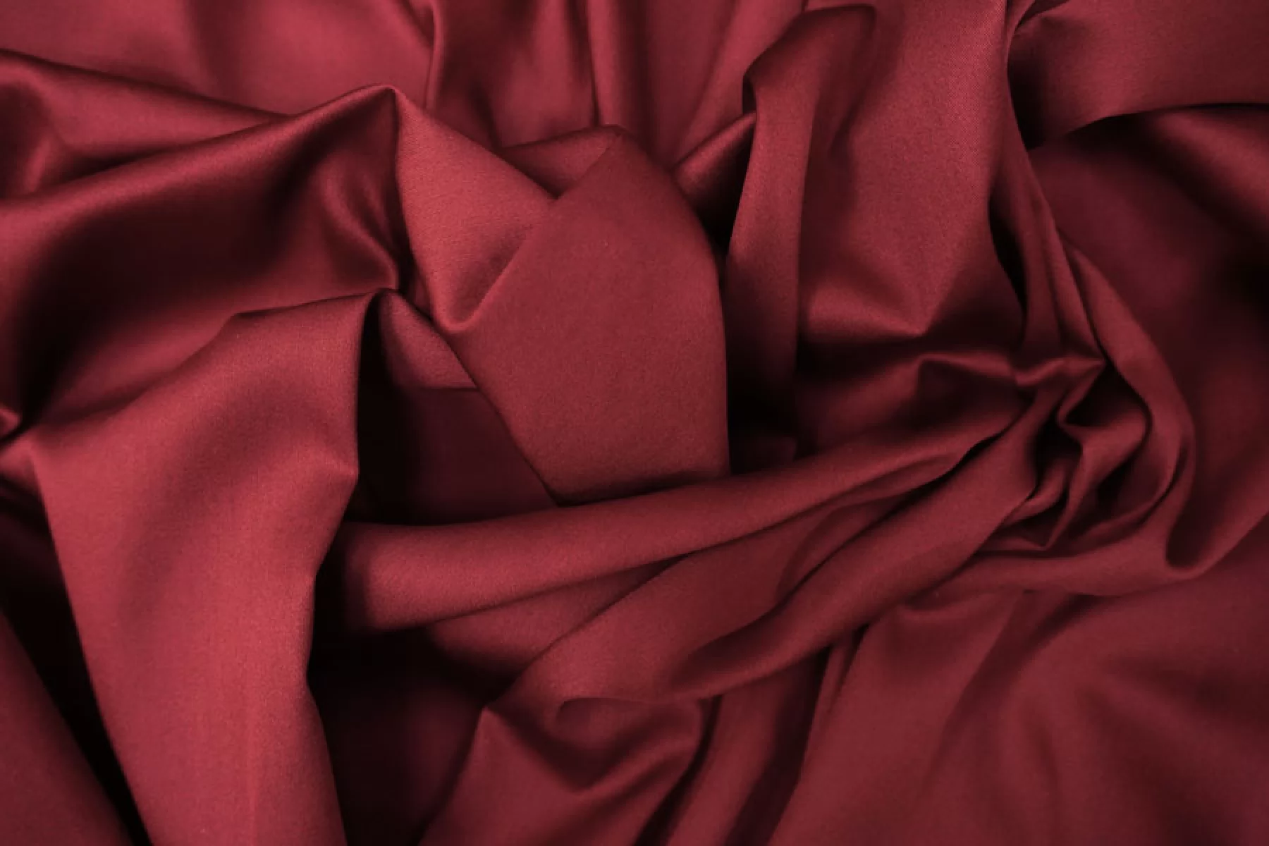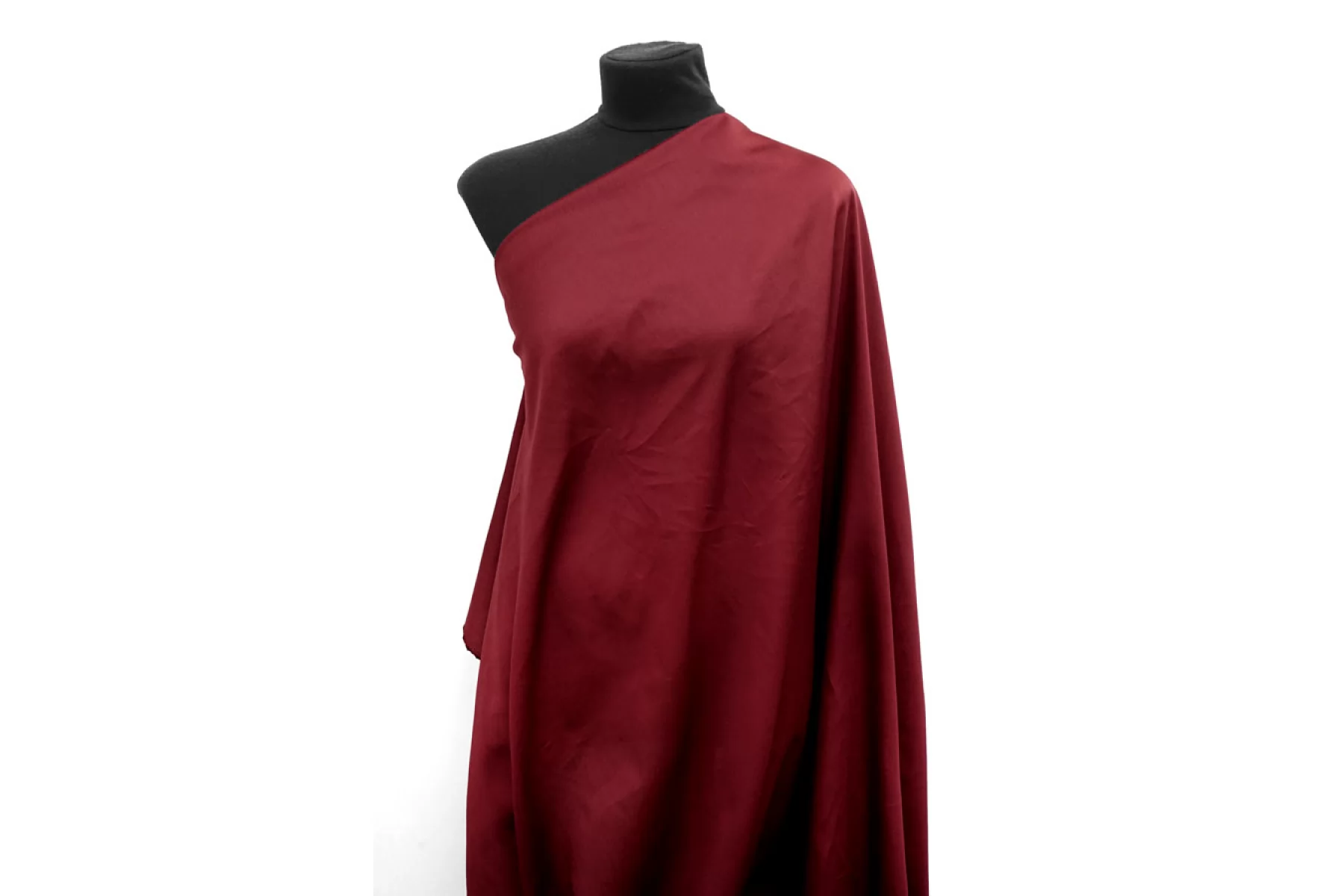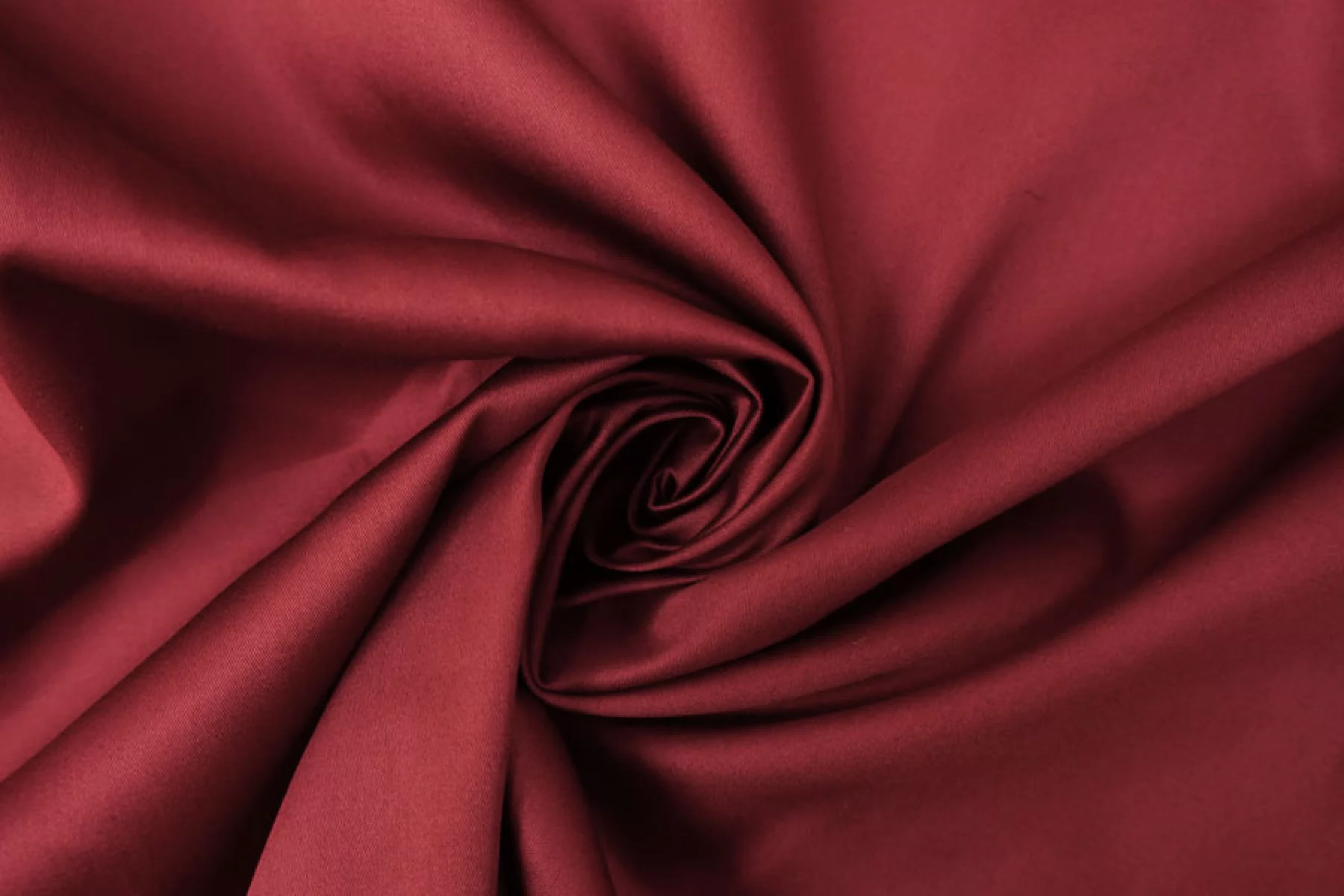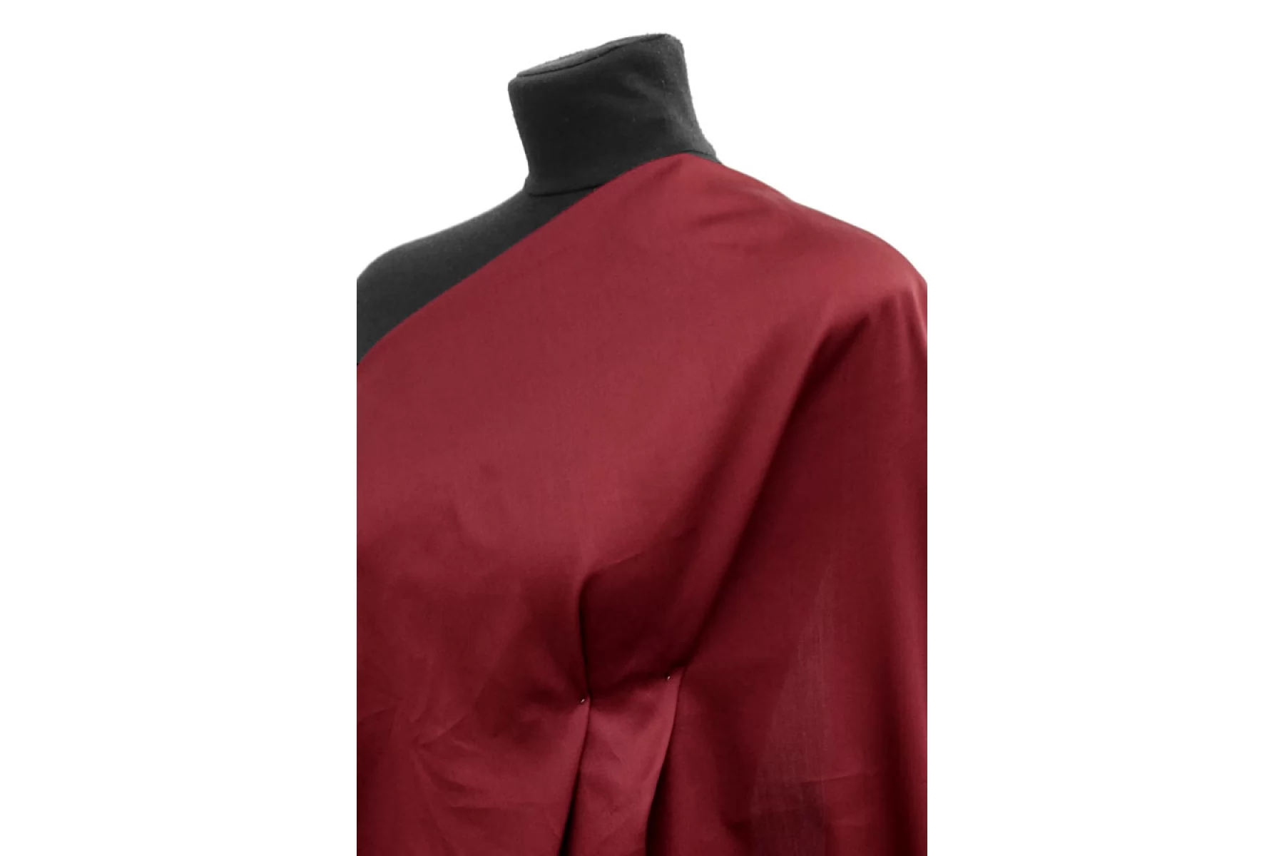 Тонкий рубашечный хлопок от бренда ETRO сатинового плетения, в насыщенном но не ярком вишнево-бордовом цвете. Тактильно приятный, гладкий, мягкий, пластичный. Обладает легким лоском. Совсем немного просвечивает. Сминается. Не тянется. Хорошо драпируется, пластичный. Вариант на платья, юбки, сарафаны, топы.