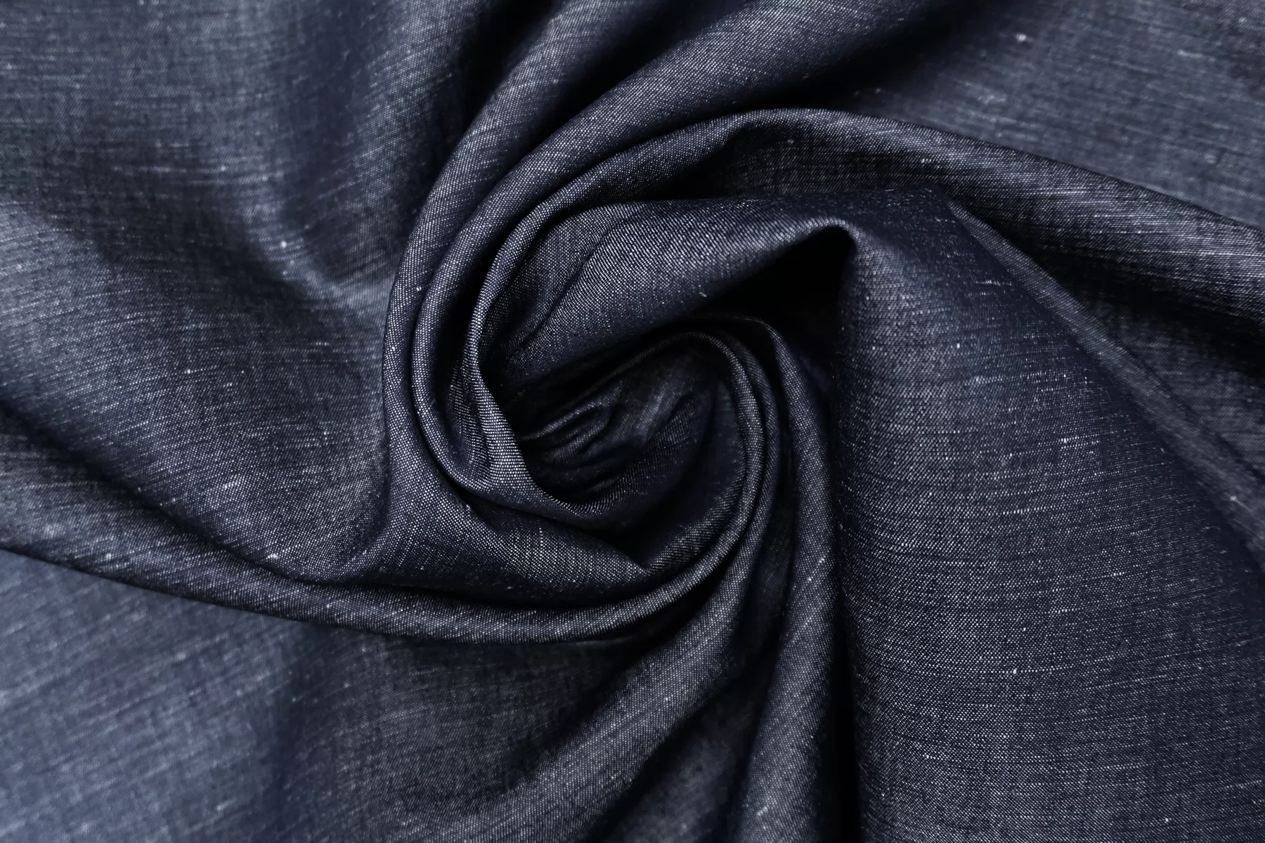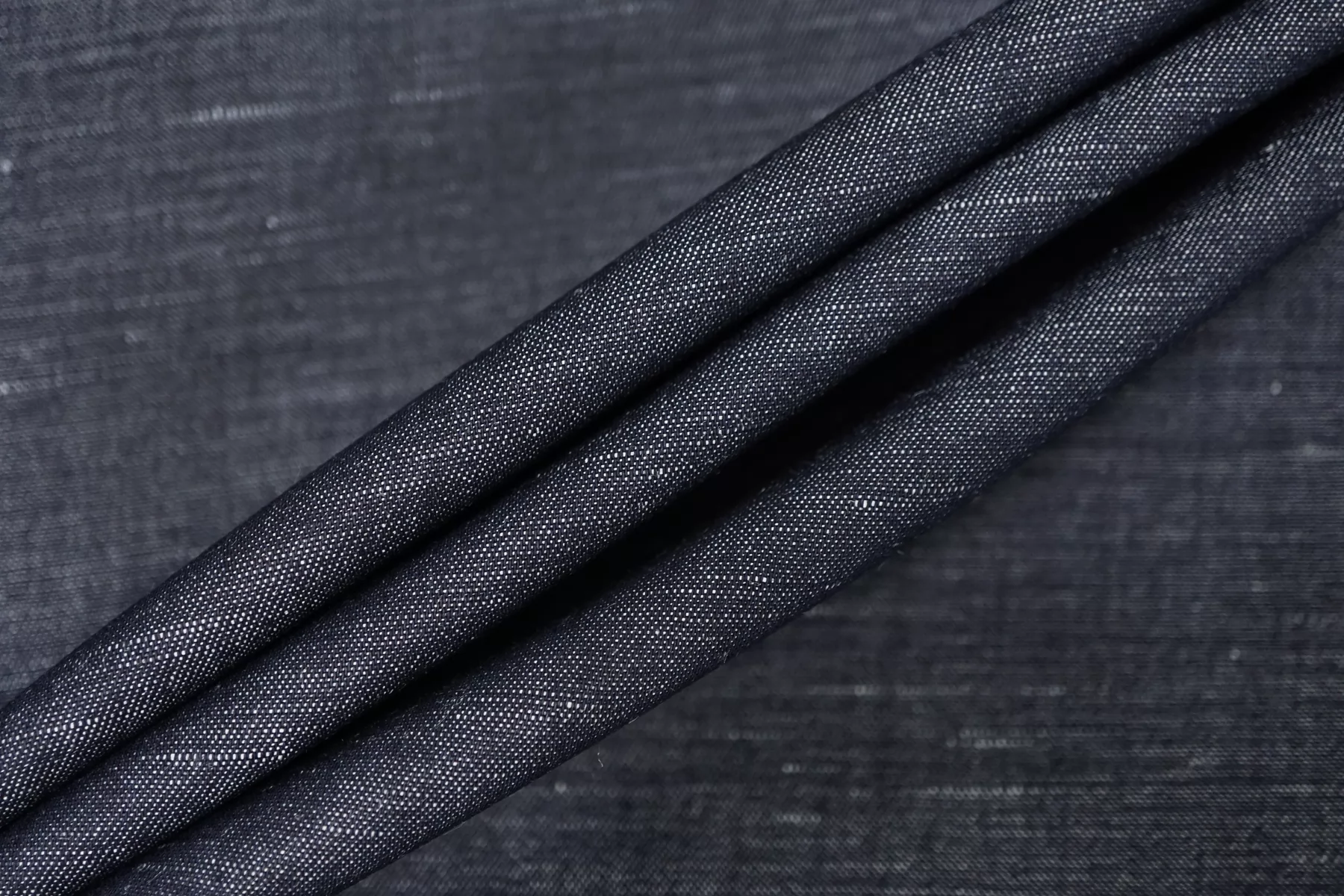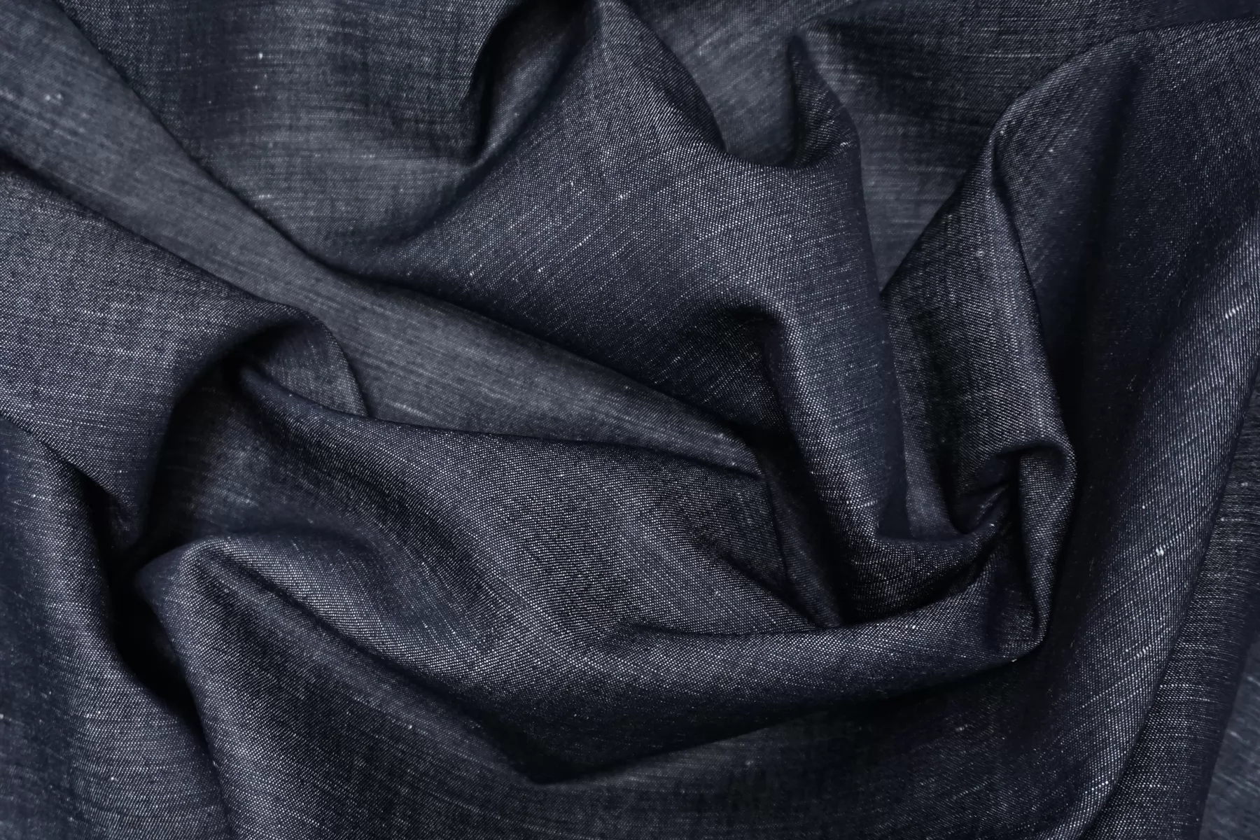 Прекрасный хлопок с добавлением льна рубашечно-плательной плотности, нити темно-синего и белого цвета. Материал гладкий, тонкий, чувствуется сухость льна. Мнется. Минимально просвечивает силуэт, не тянется. Пластичный, но при этом держит форму. Прекрасный вариант на рубашки, юбки, платья. Материал дает усадку.