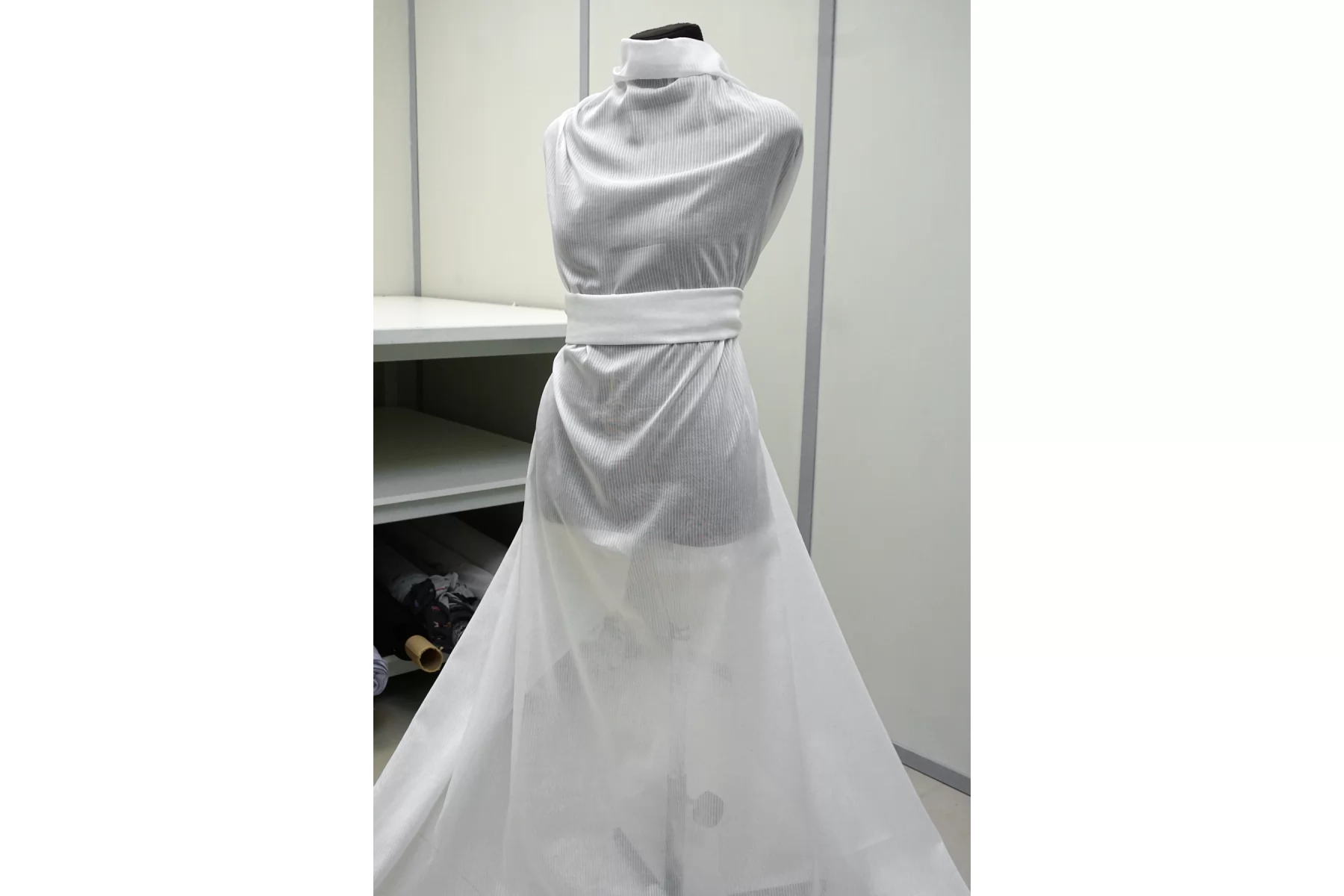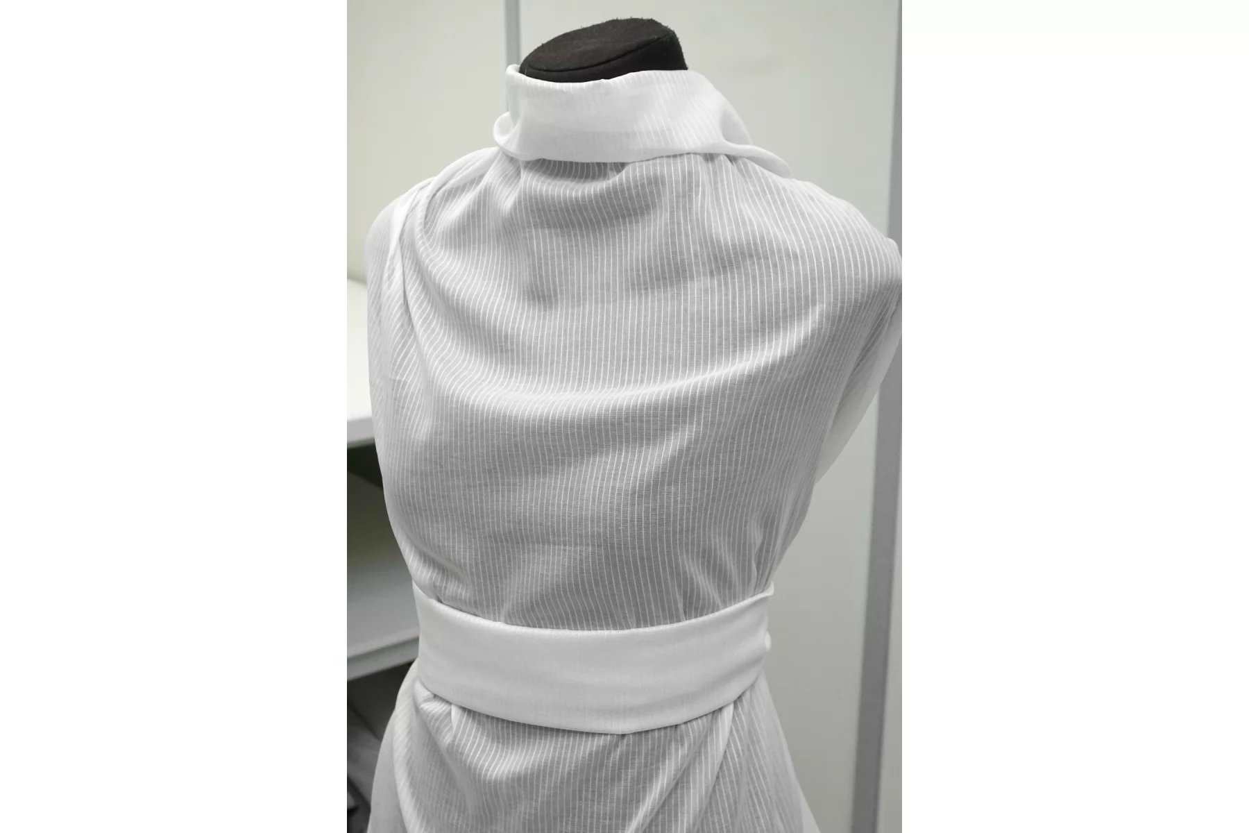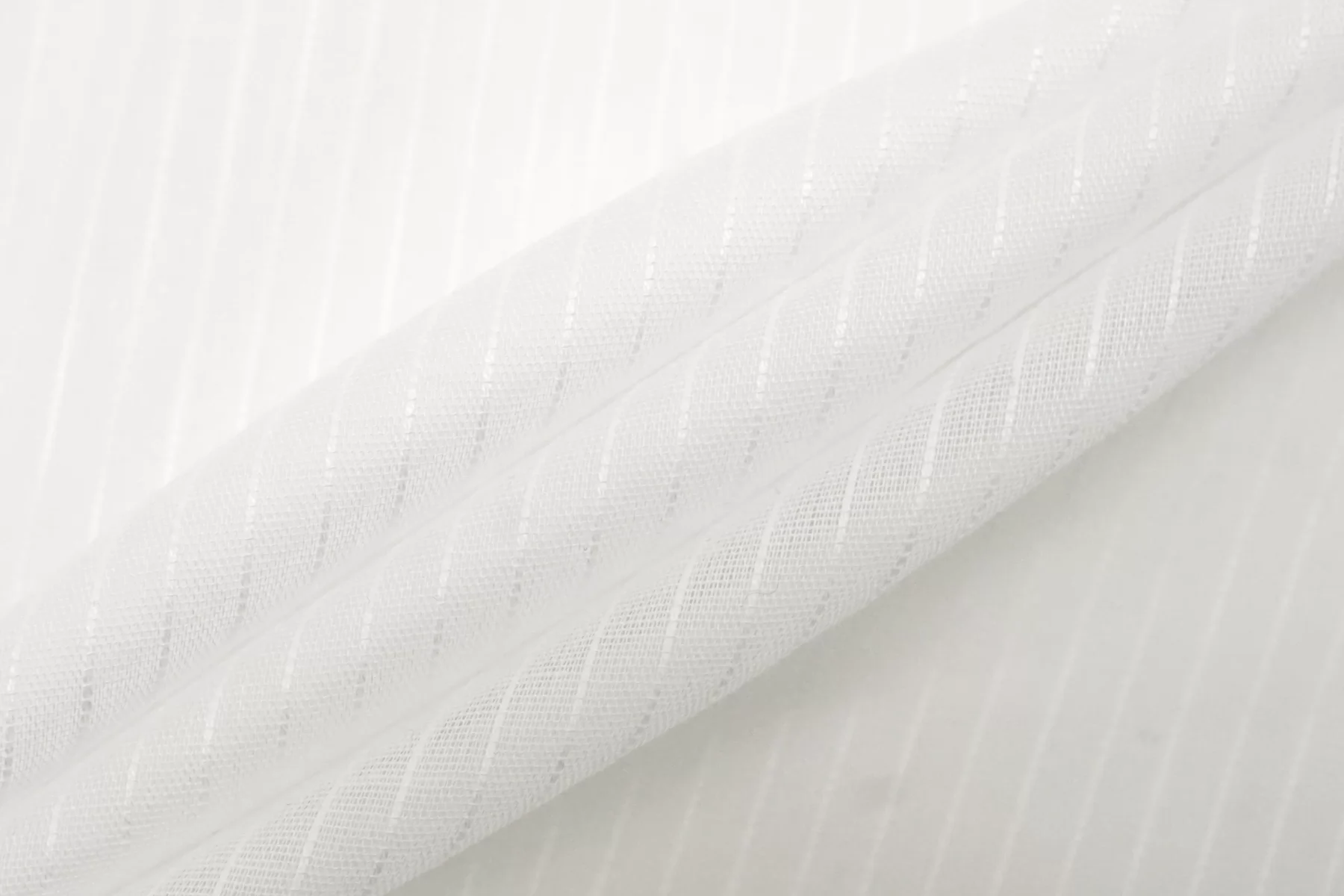 Итальянский хлопок с добавкой льна, рубашечно-плательной плотности, с узором-полоской (вдоль кромки), белого цвета. Вуалевый. Присутствуют классические льняные утолщения нити. Ткань тонкая, тактильно суховатая, просвечивает, мнется. Плетение не плотное. Отличный вариант для летнего изделия - платья, юбки, сарафана, рубашки.
