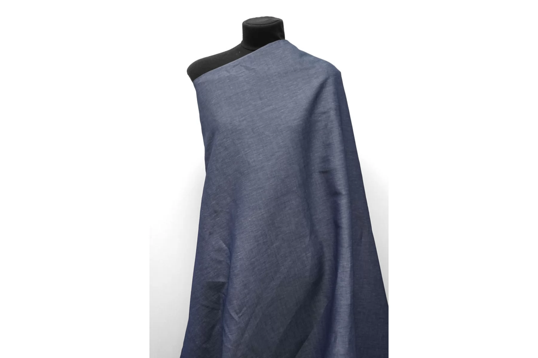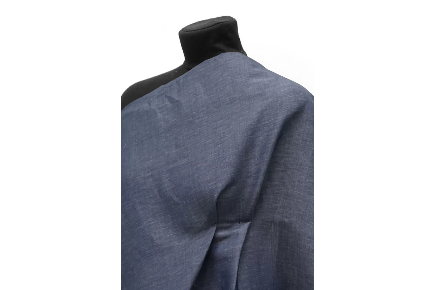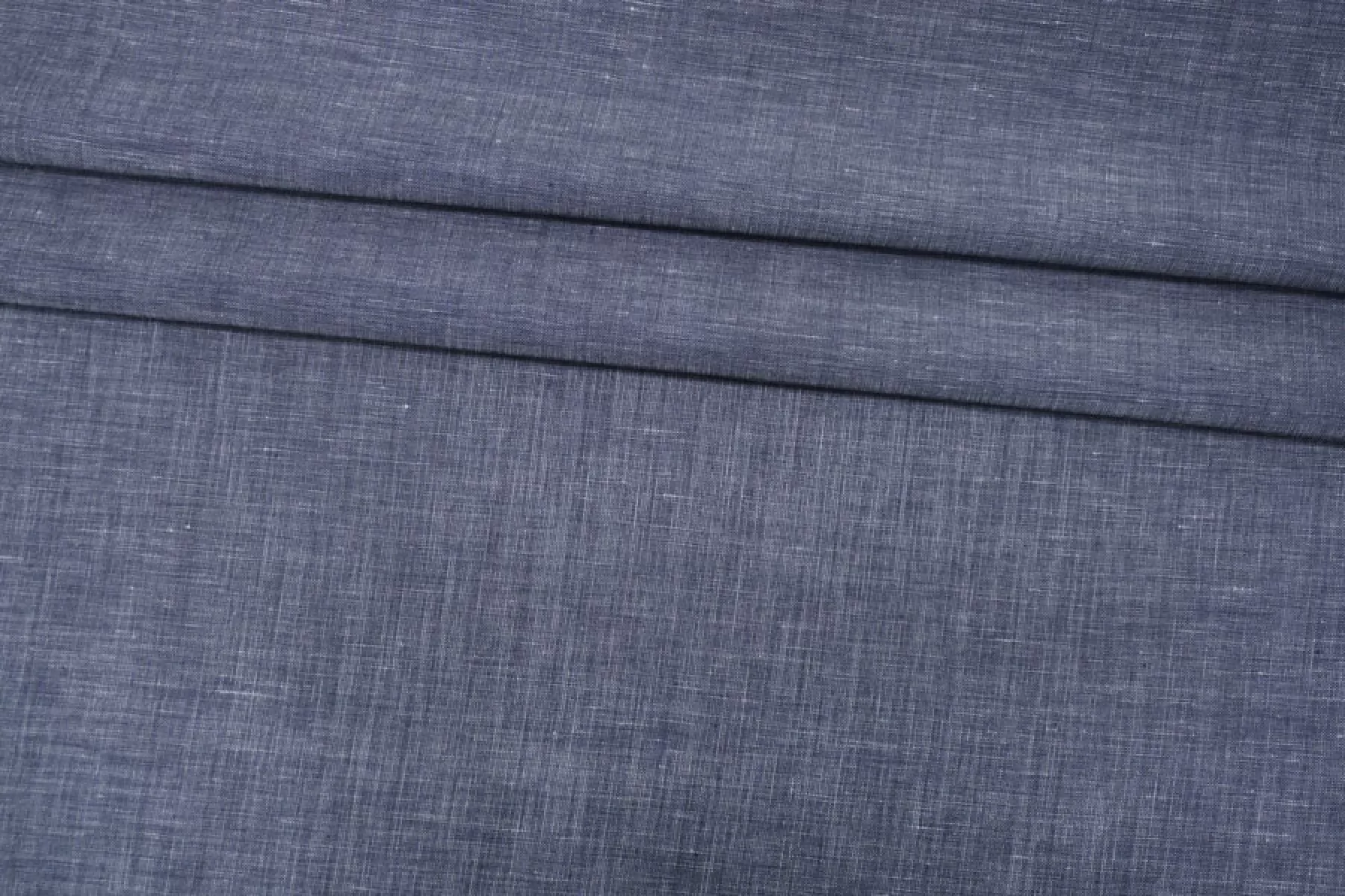 Прекрасный хлопок с добавлением льна от фабрики Albini рубашечной плотности, нити темно-синего и белого цвета. Материал гладкий, тонкий, чувствуется сухость льна. Мнется. Просвечивает силуэт, не тянется. Пластичный, но при этом держит форму. Прекрасный вариант на рубашки, юбки, платья. Материал дает усадку.