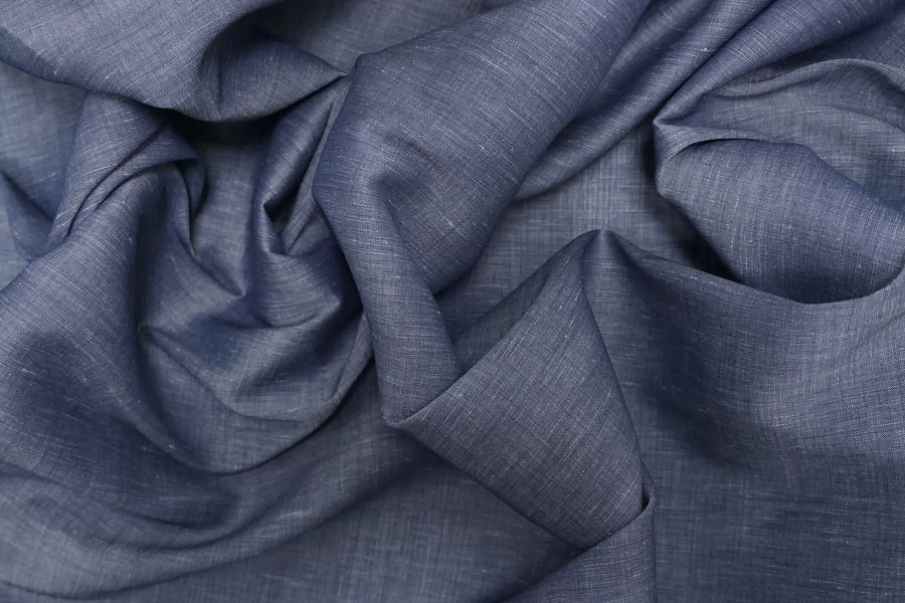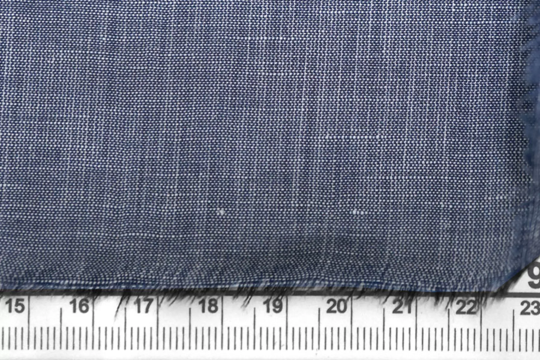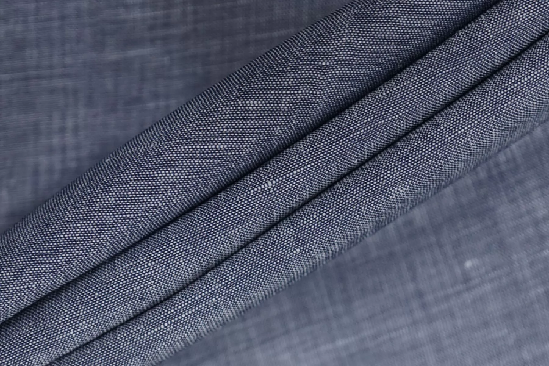 Прекрасный хлопок с добавлением льна от фабрики Albini рубашечной плотности, нити темно-синего и белого цвета. Материал гладкий, тонкий, чувствуется сухость льна. Мнется. Просвечивает силуэт, не тянется. Пластичный, но при этом держит форму. Прекрасный вариант на рубашки, юбки, платья. Материал дает усадку.